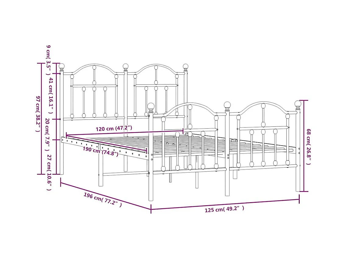 Metalen bedframe zonder matras en voeteneinde wit 120x190 cm