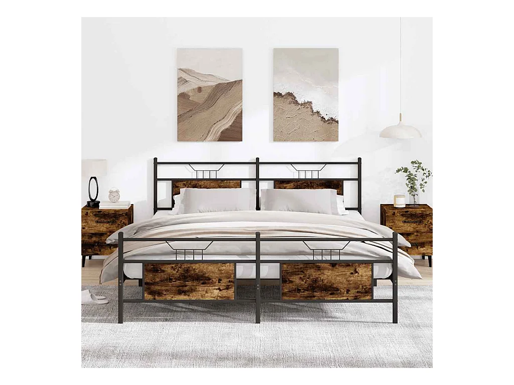 Metalen bedframe zonder matras gerookt eiken 160x200 cm