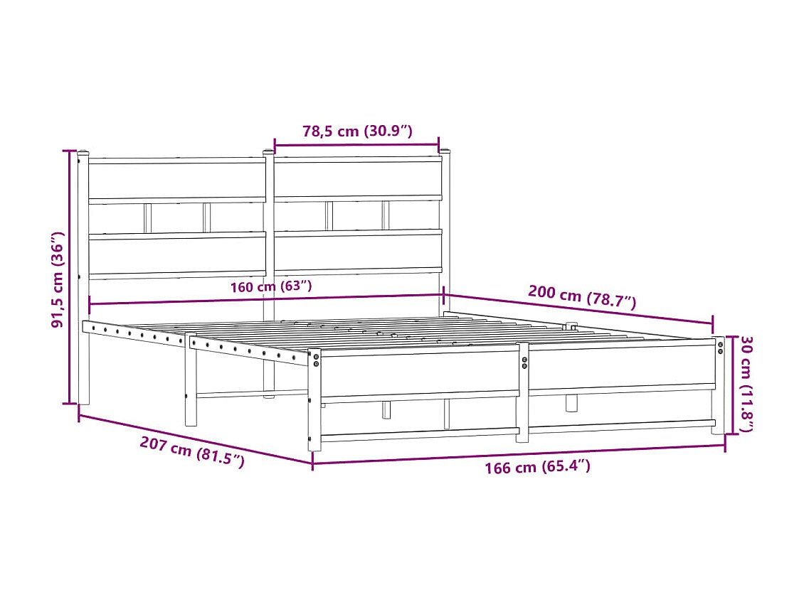Metalen bedframe zonder matras Sonoma eiken 160x200 cm