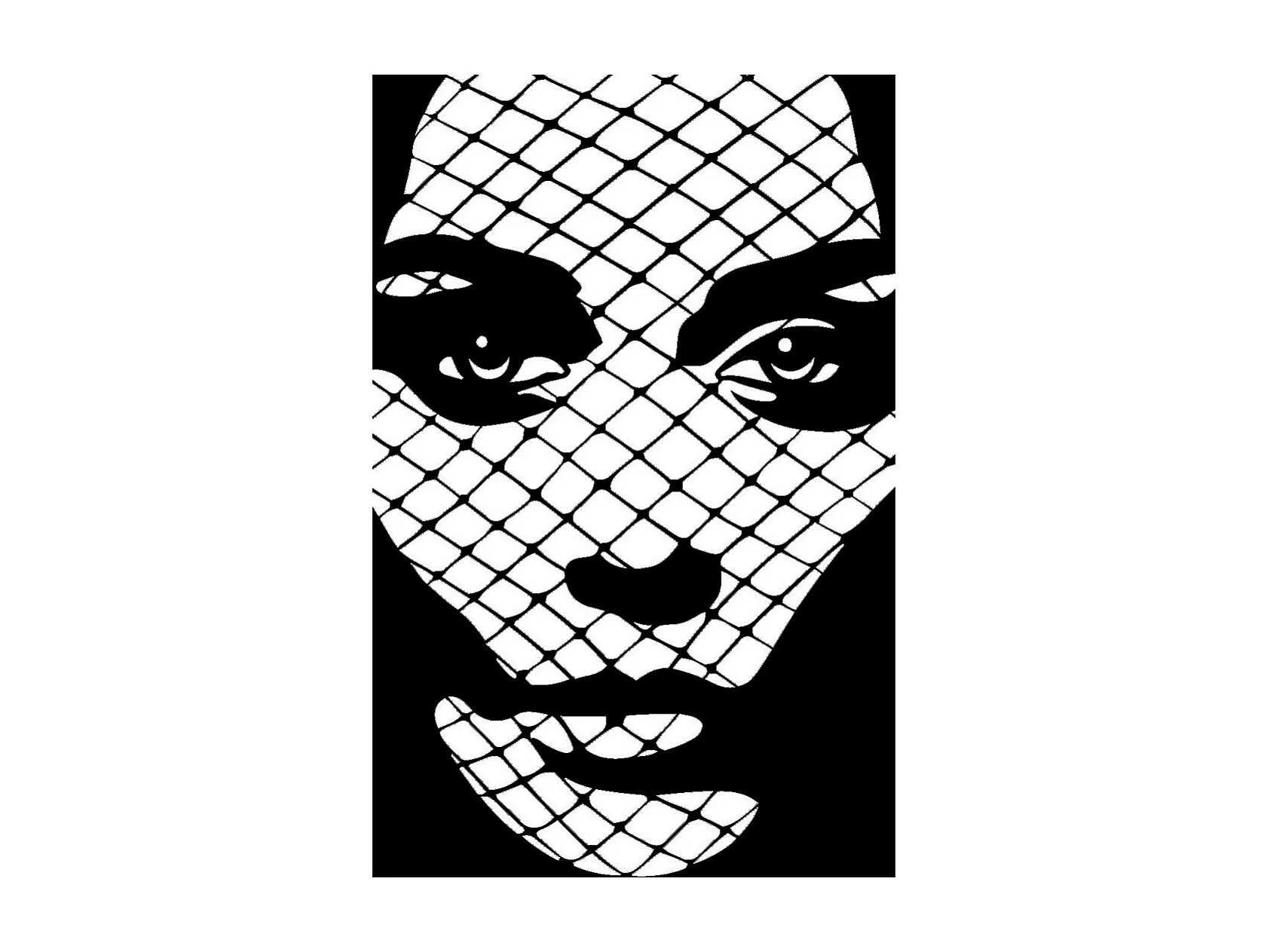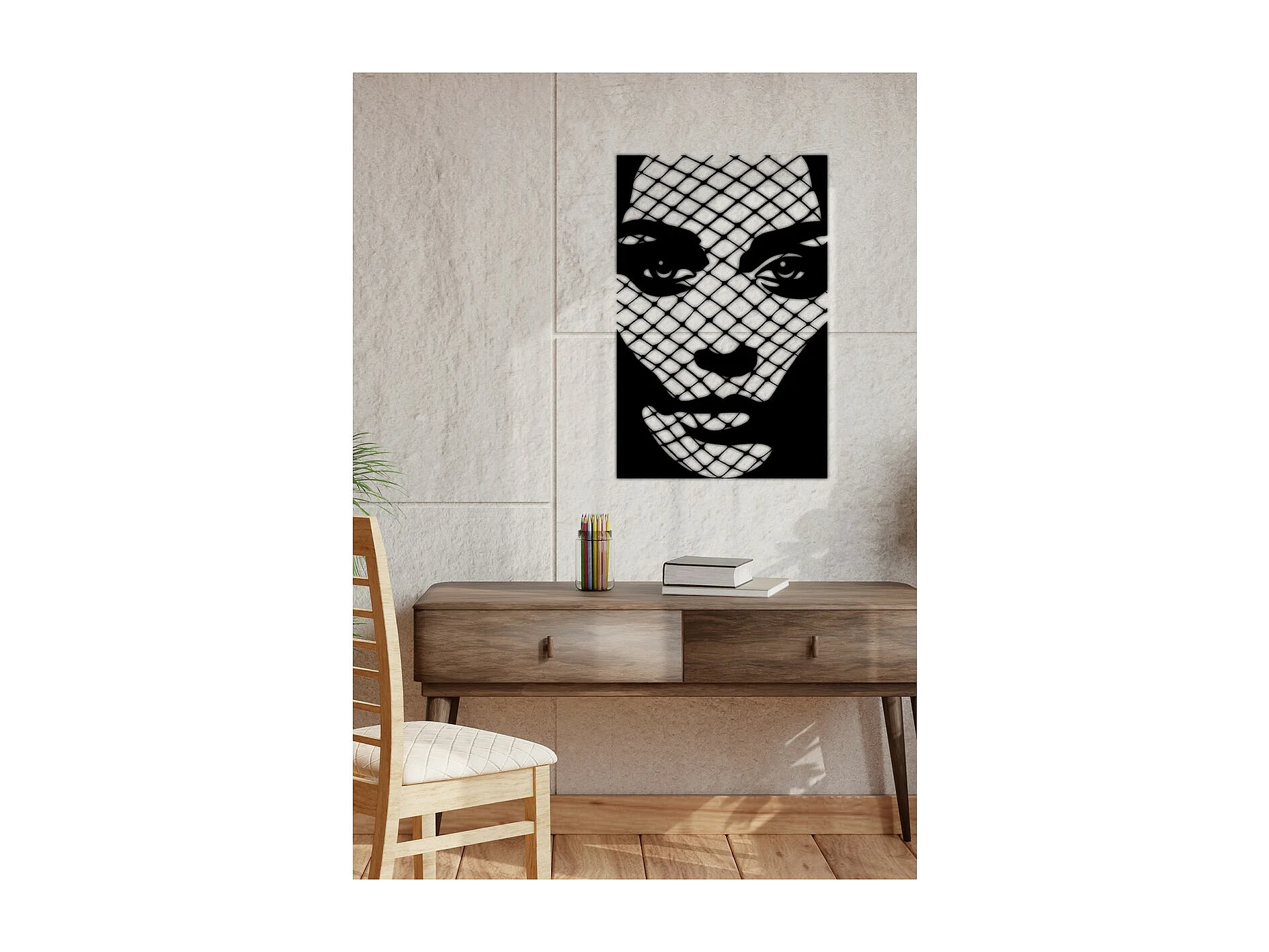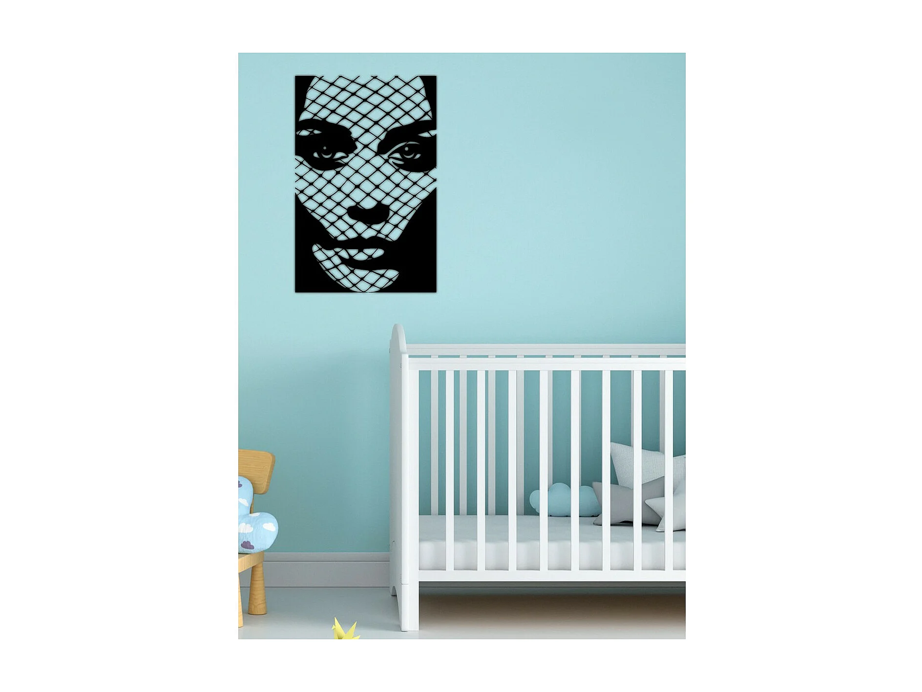 Metalen Decoratie Gezicht 6, Zwart, 43x0,15x65 cm, EPIKASA