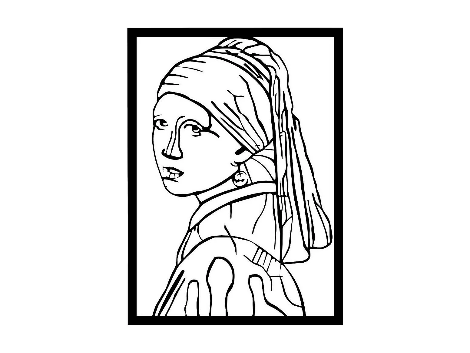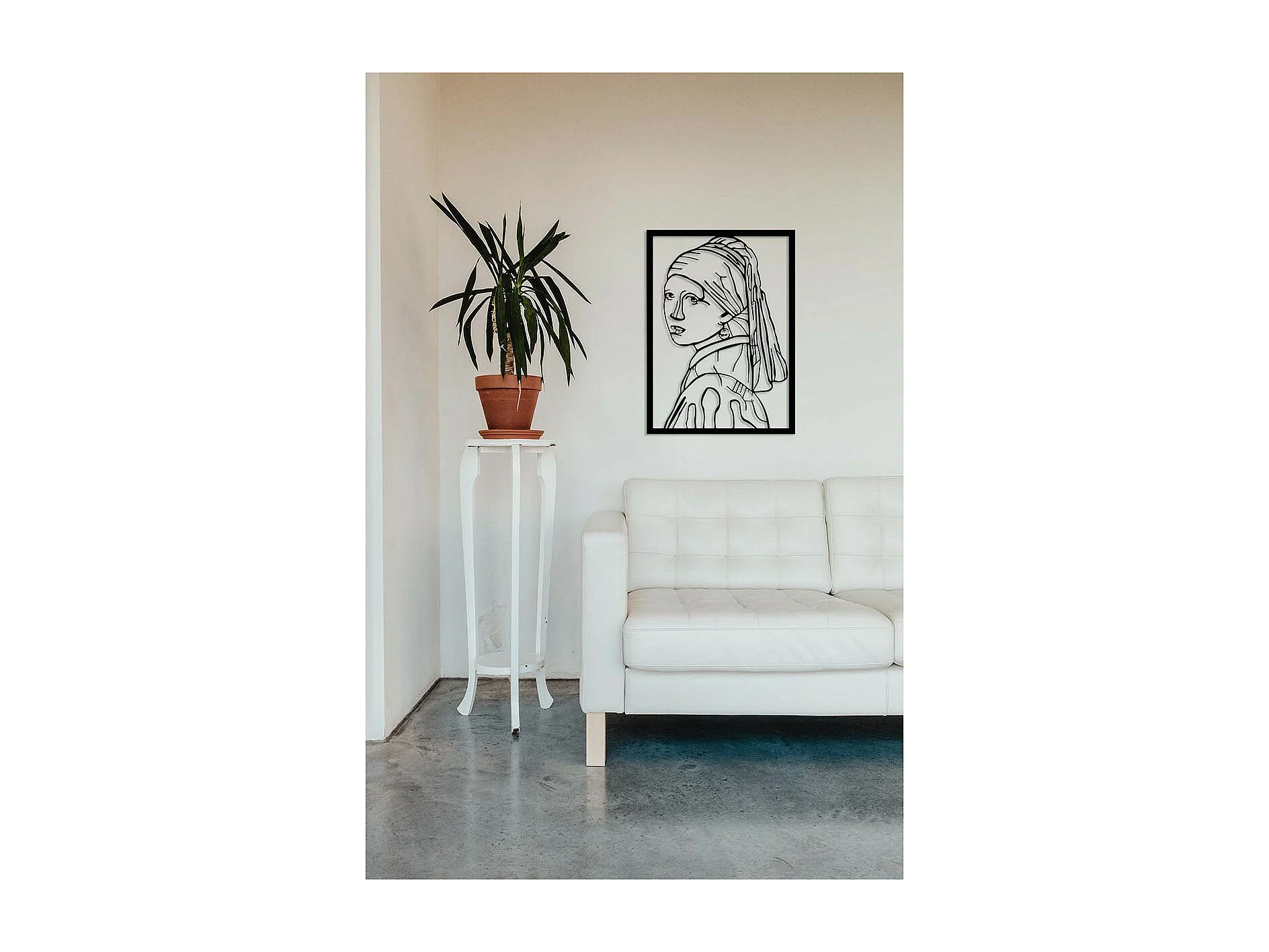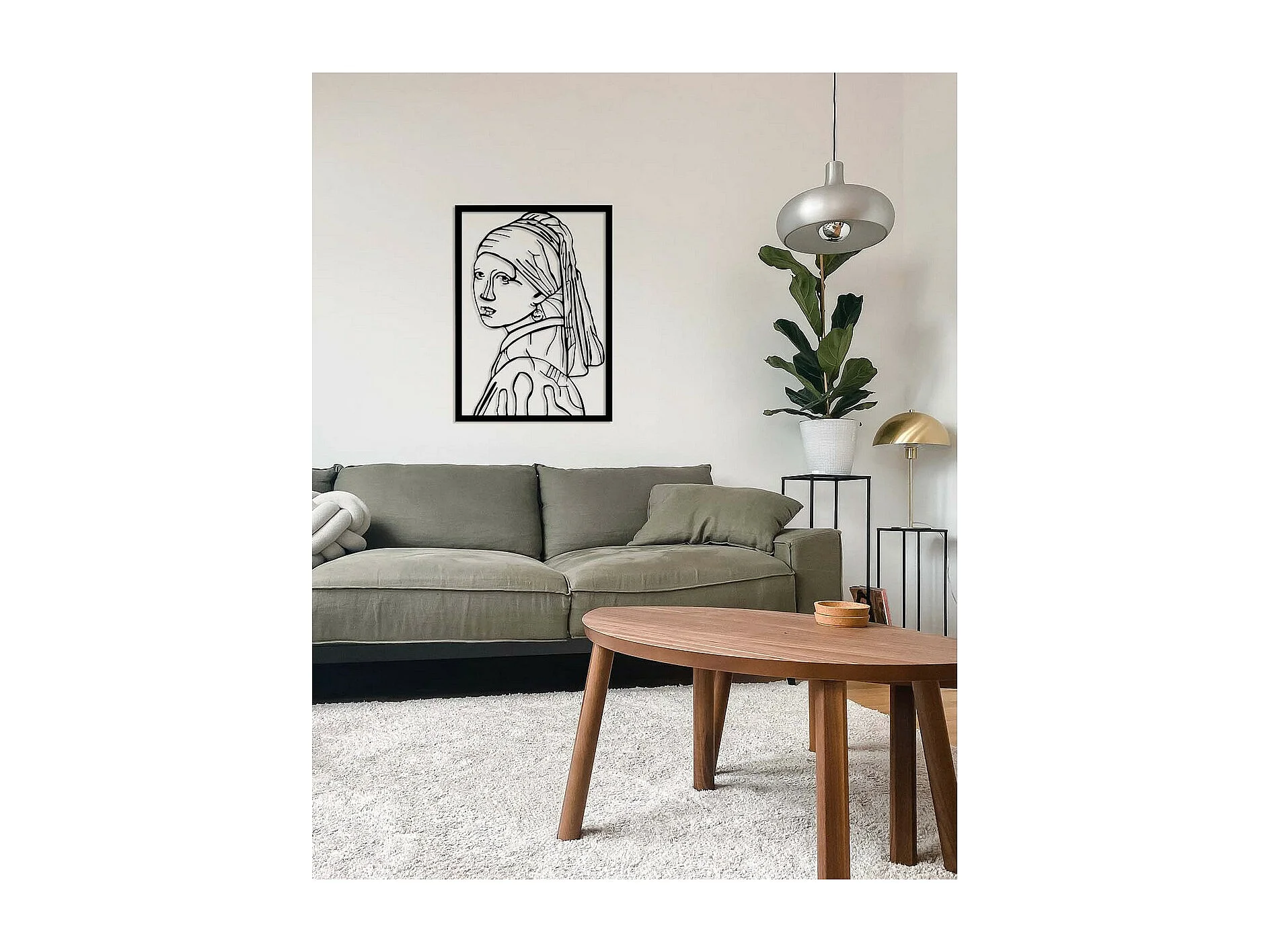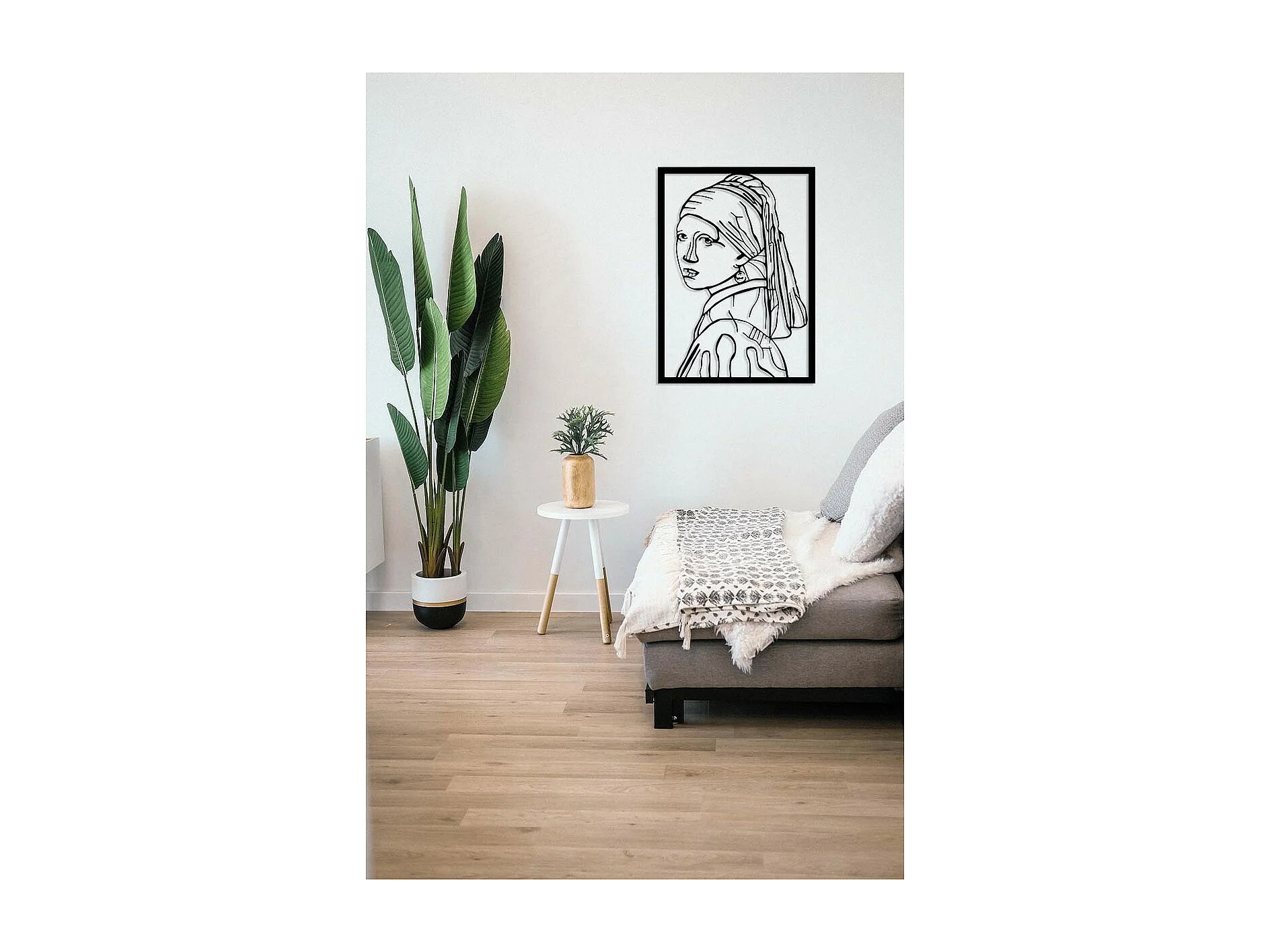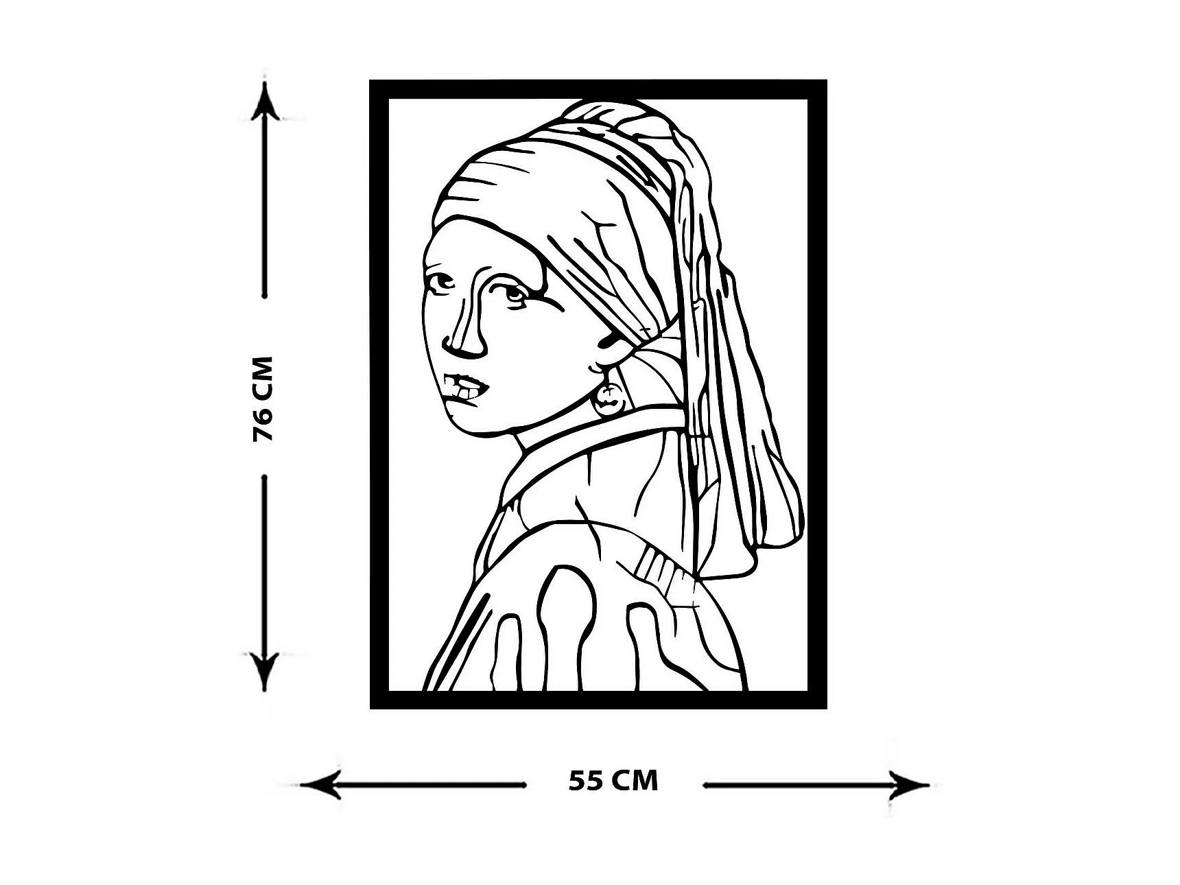 Metalen Decoratie Meisje met de parel, Zwart, 53x0,15x72 cm, EPIKASA