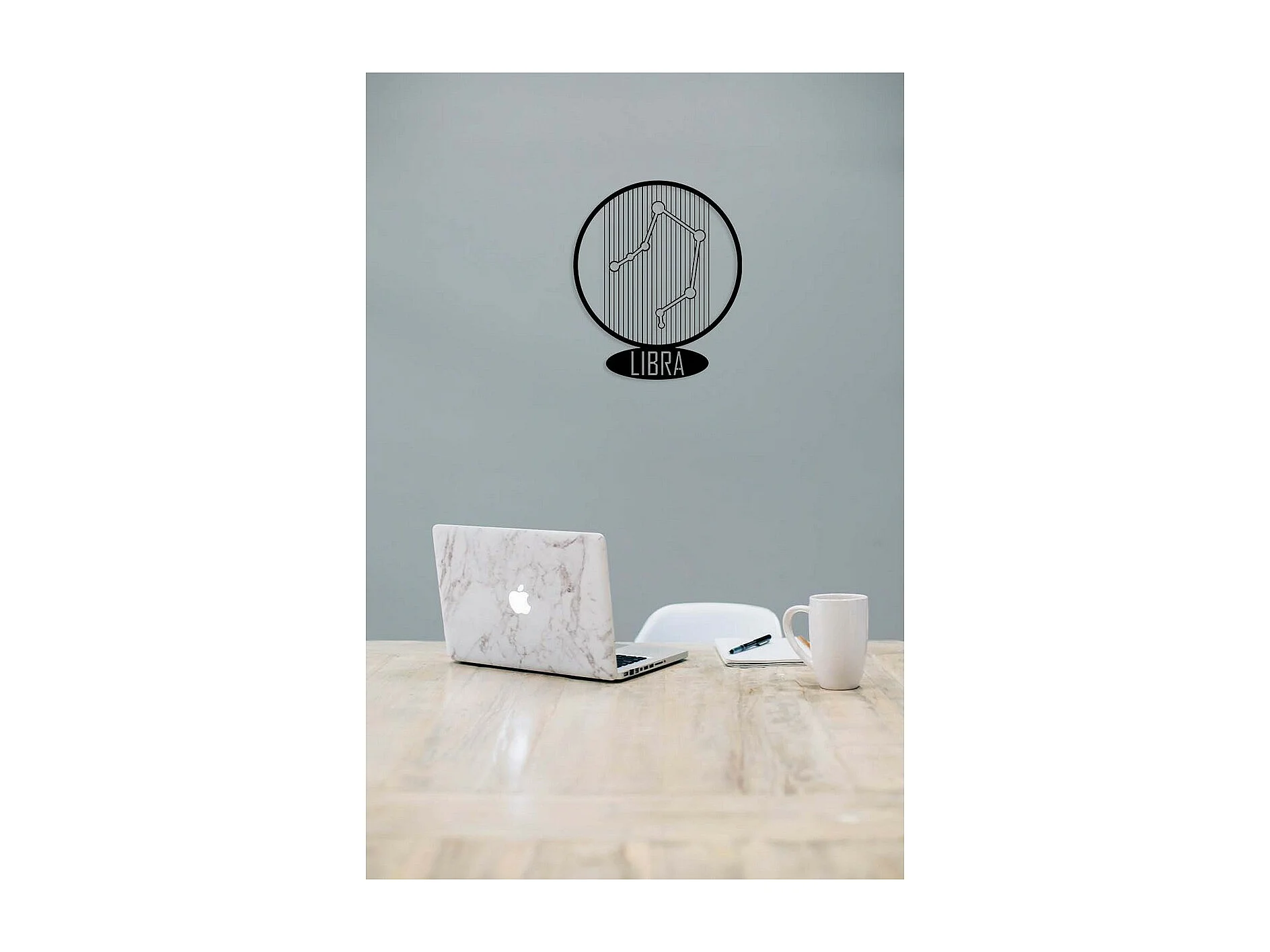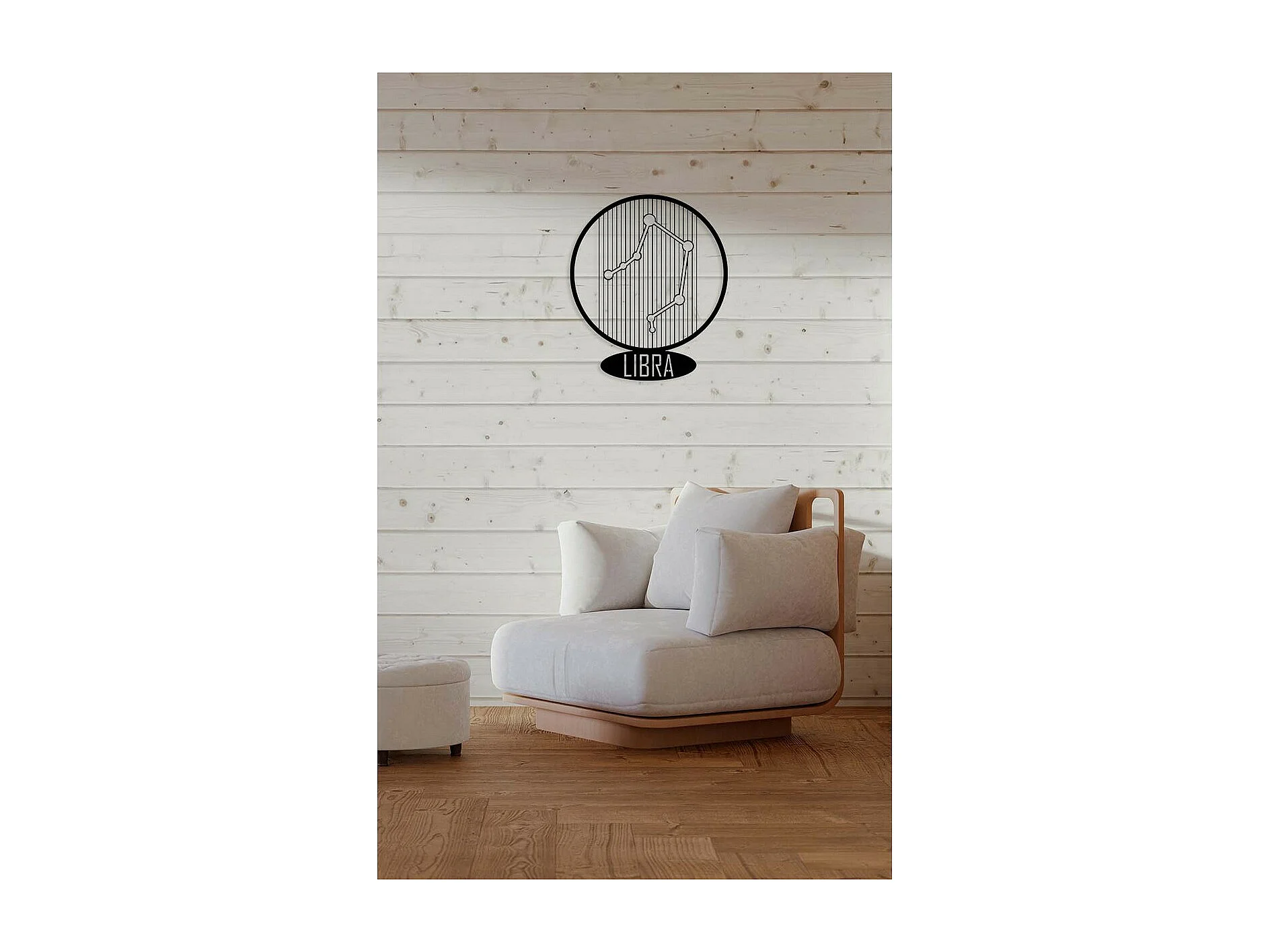 Metalen Decoratie Weegschaal Horoscoop 6, Zwart, 38x0,15x45 cm, EPIKASA