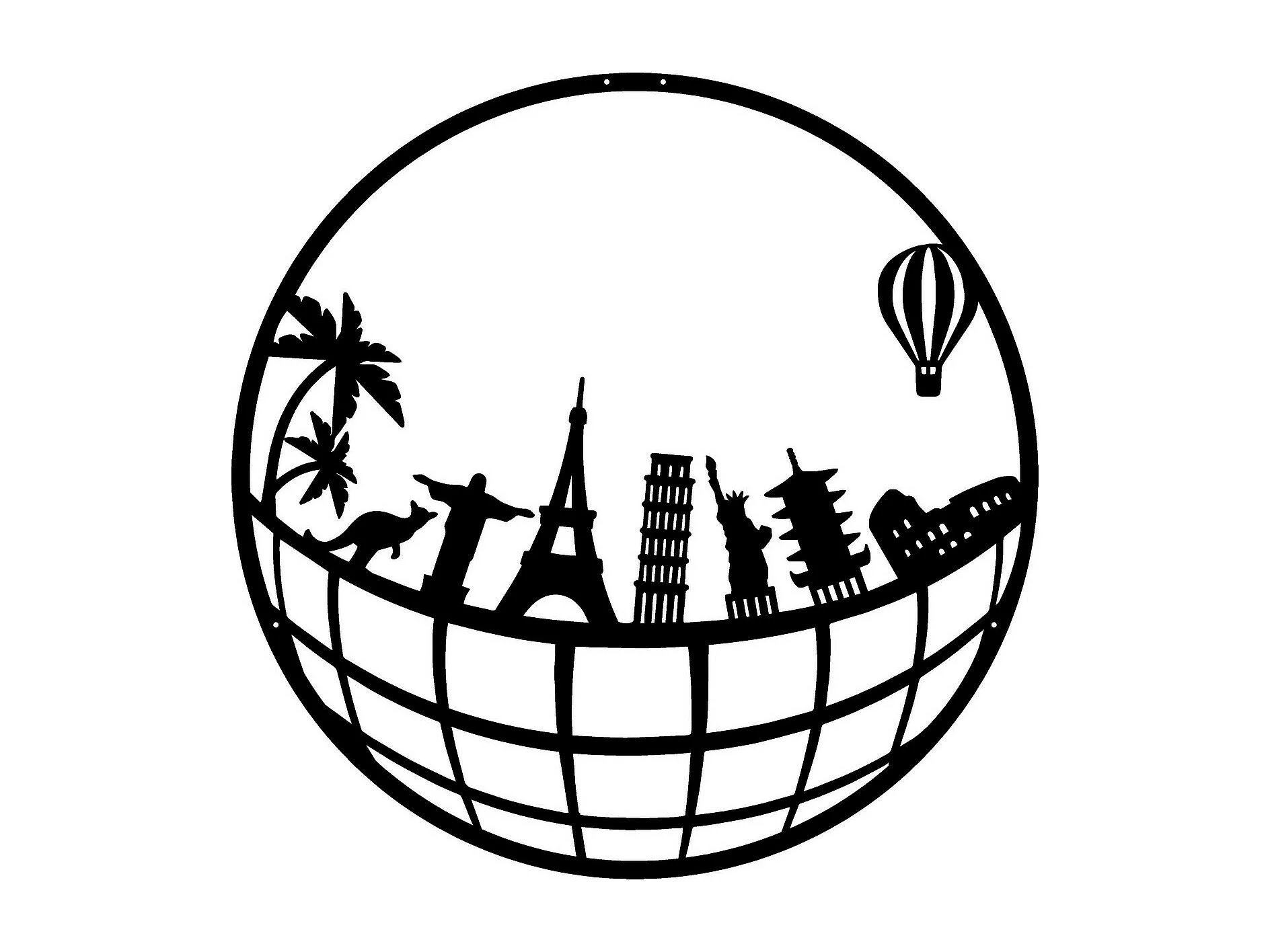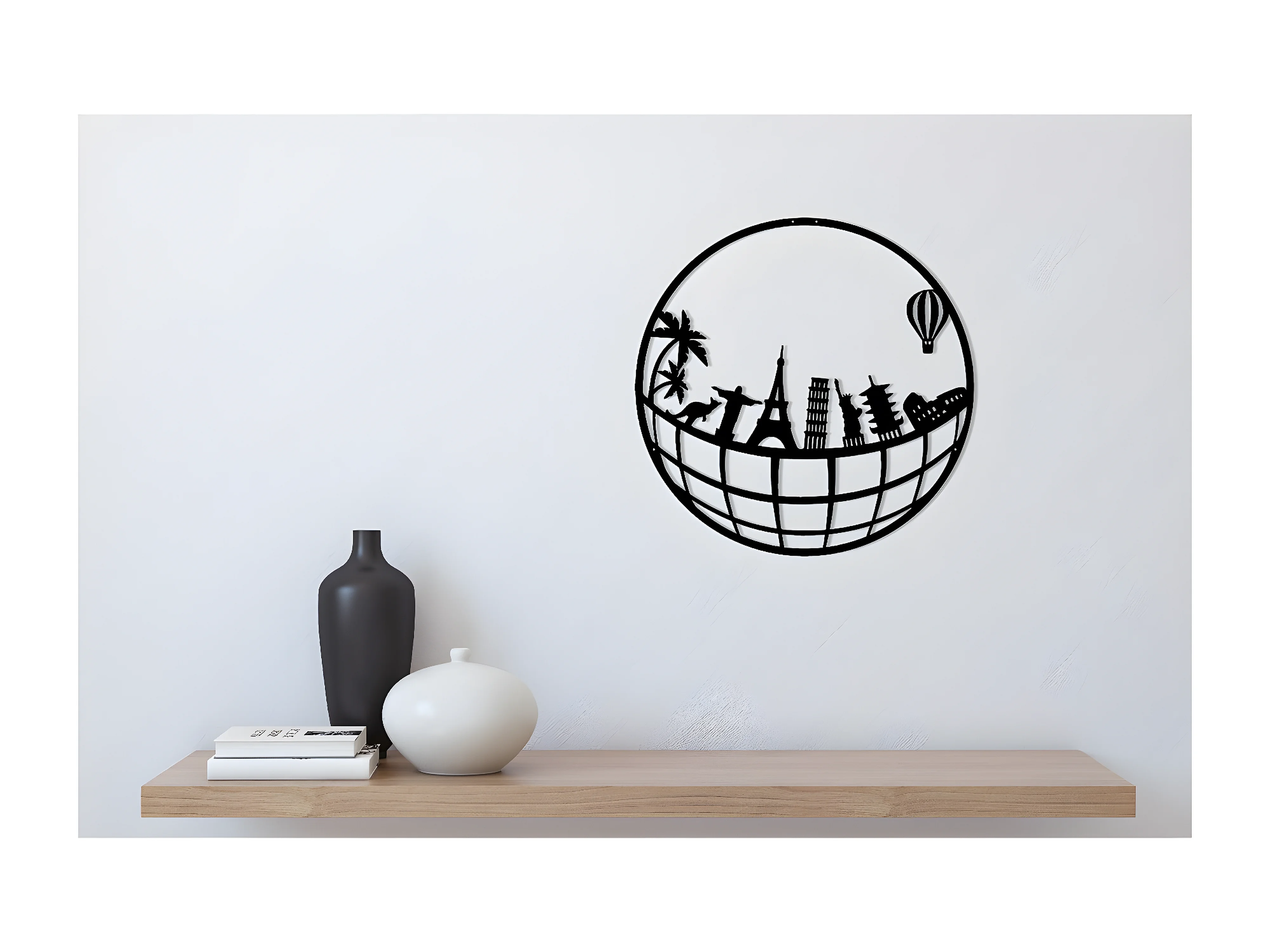 Metalen Decoratie Wereldkaart 23 - Zwart - 50x1,5x50 cm - EPIKASA