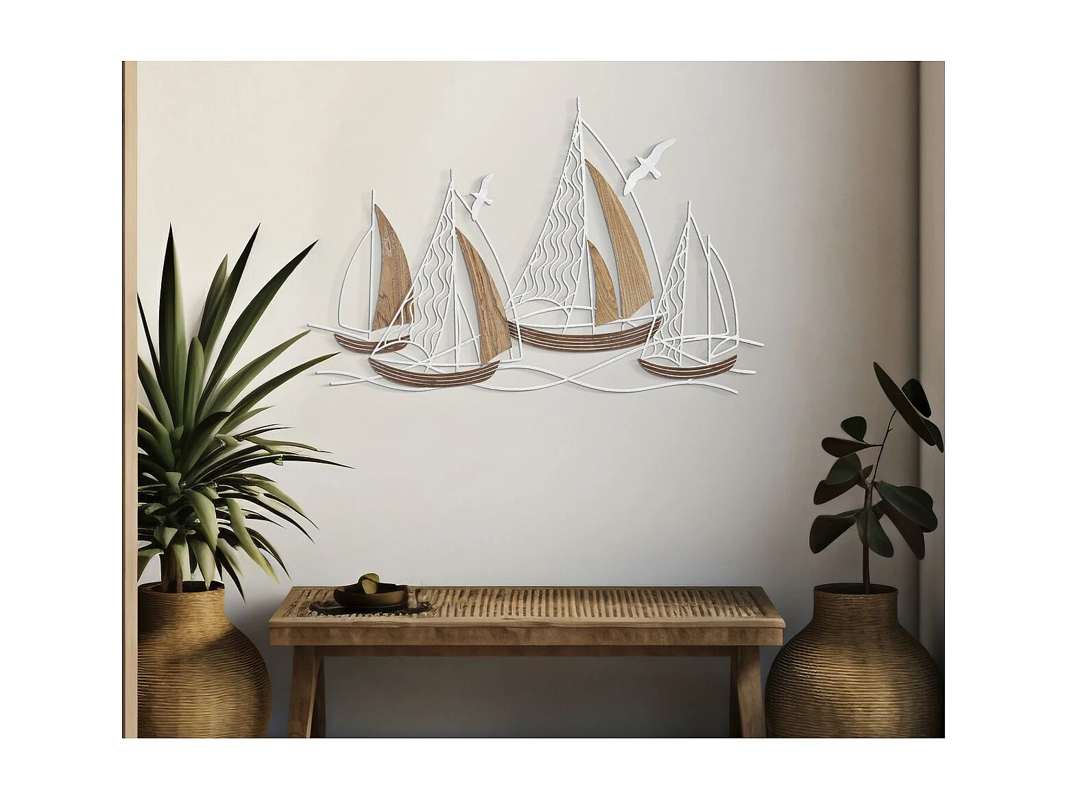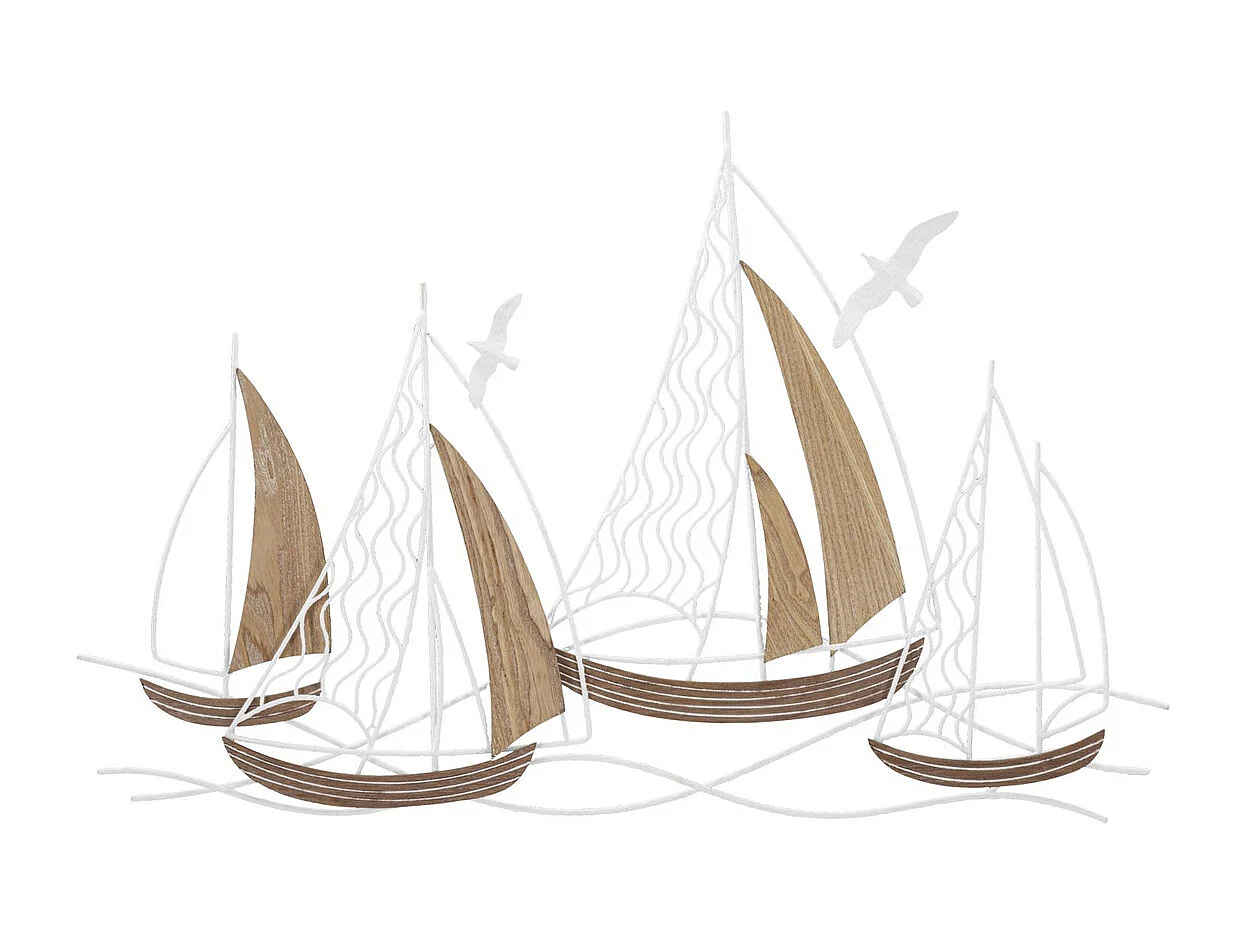 Metalen en Houten Decoratie Boten 8, Bruin, 89,5x3,8x57,8 cm, Seven Design
