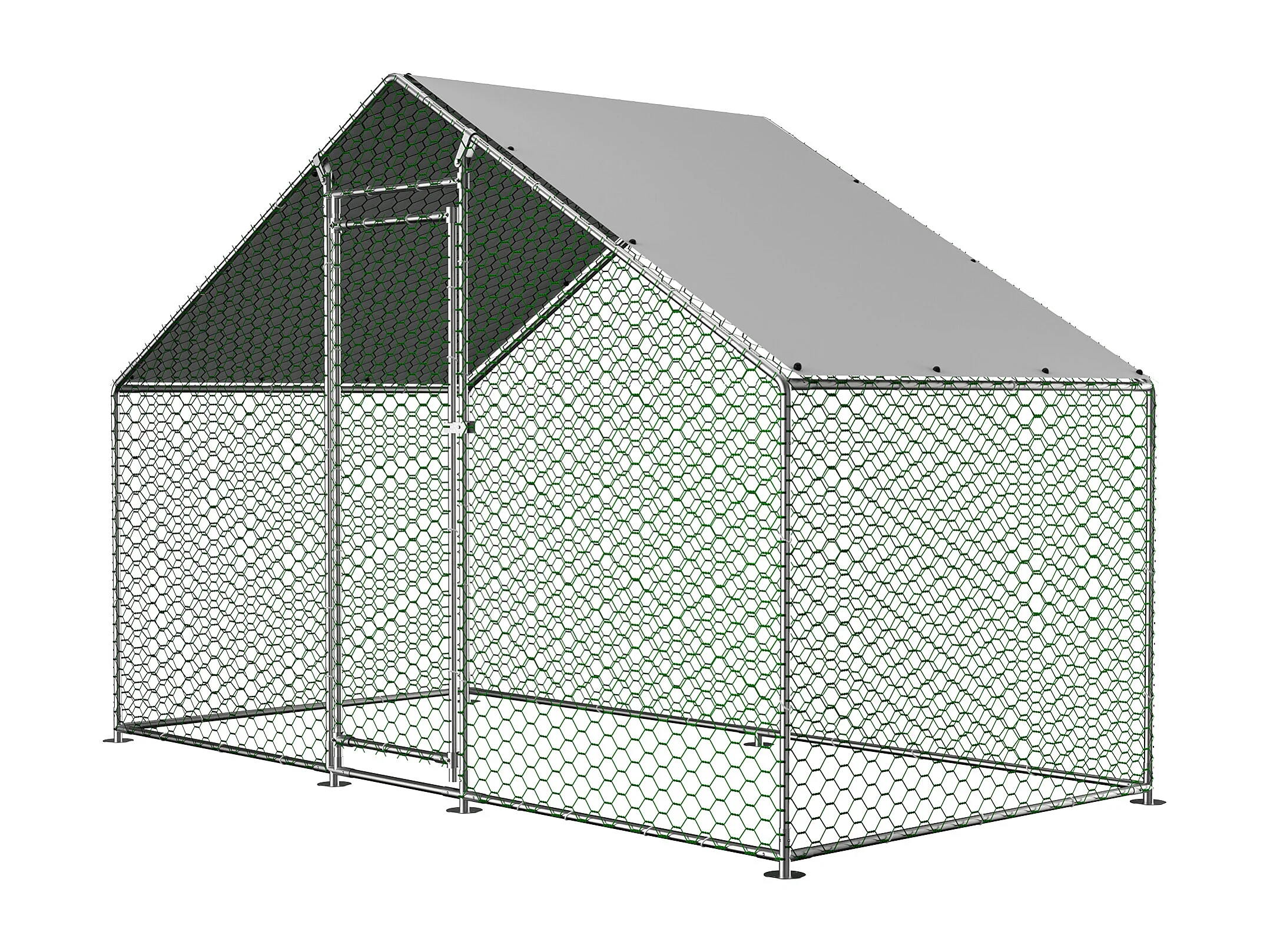 Metalen kippenhok met veiligheidsslot en waterdichte PE-hoes 3,03 x 1,57 x 2 m