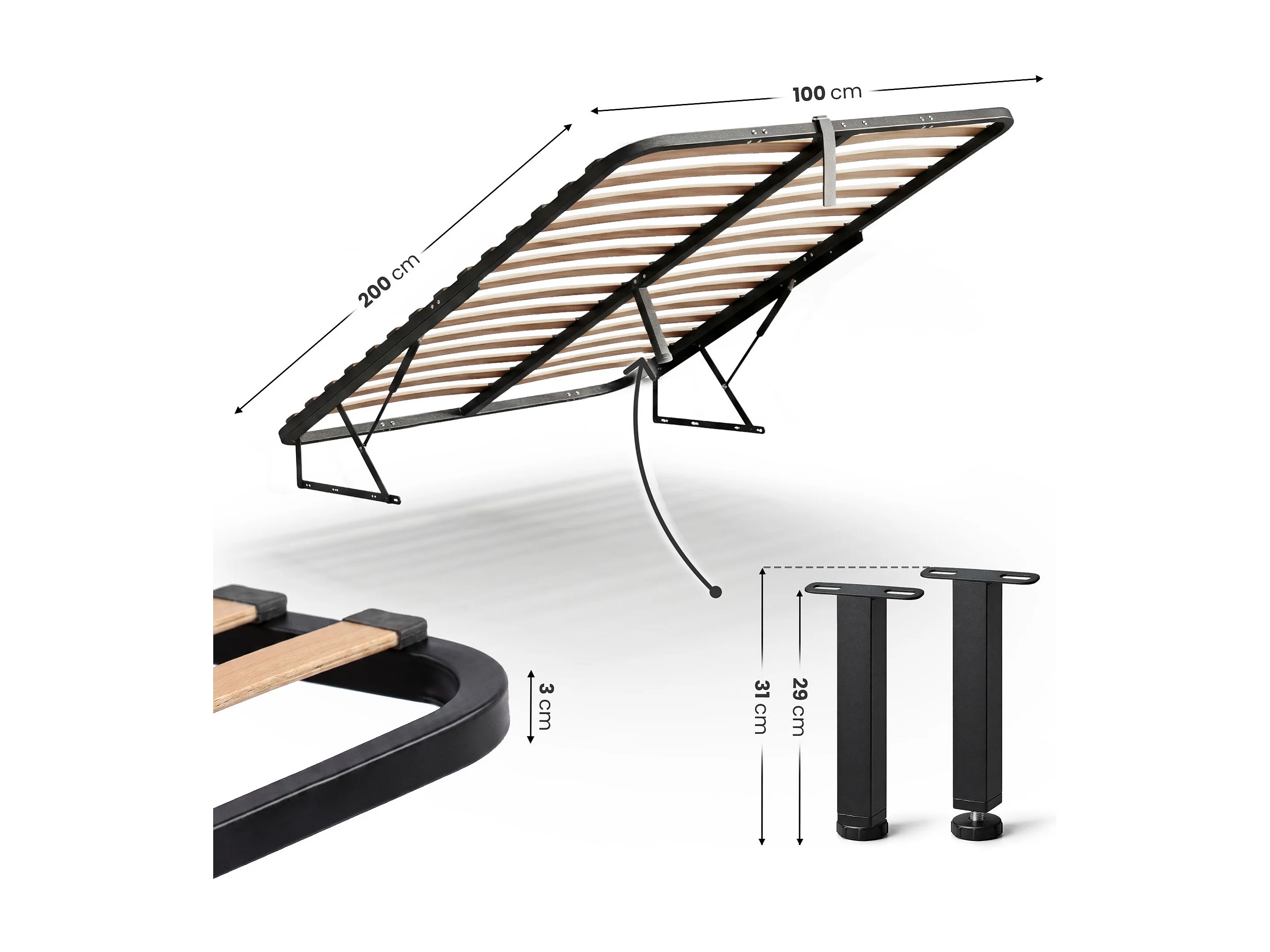 Metalen lattenbodem met gasdrukveer voor bedden, 28 latten, gedeeld 100x200 cm