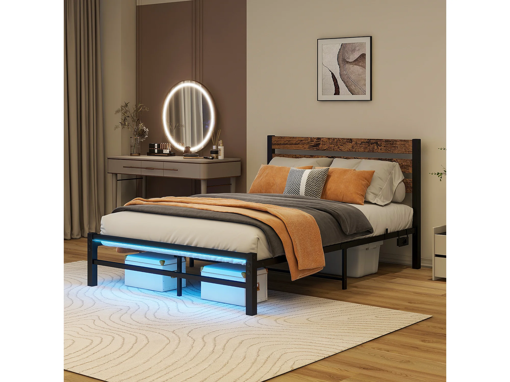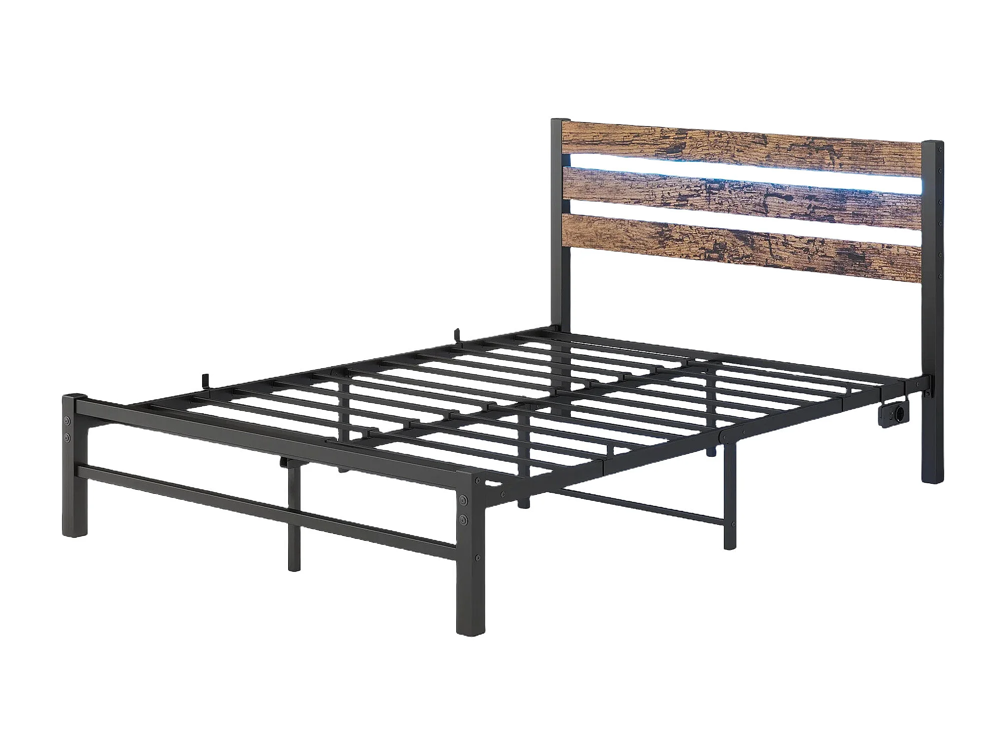 Metalen platformbed met hoofdeinde, USB, LED, metaal, antiekbruin (208x120x96 cm)