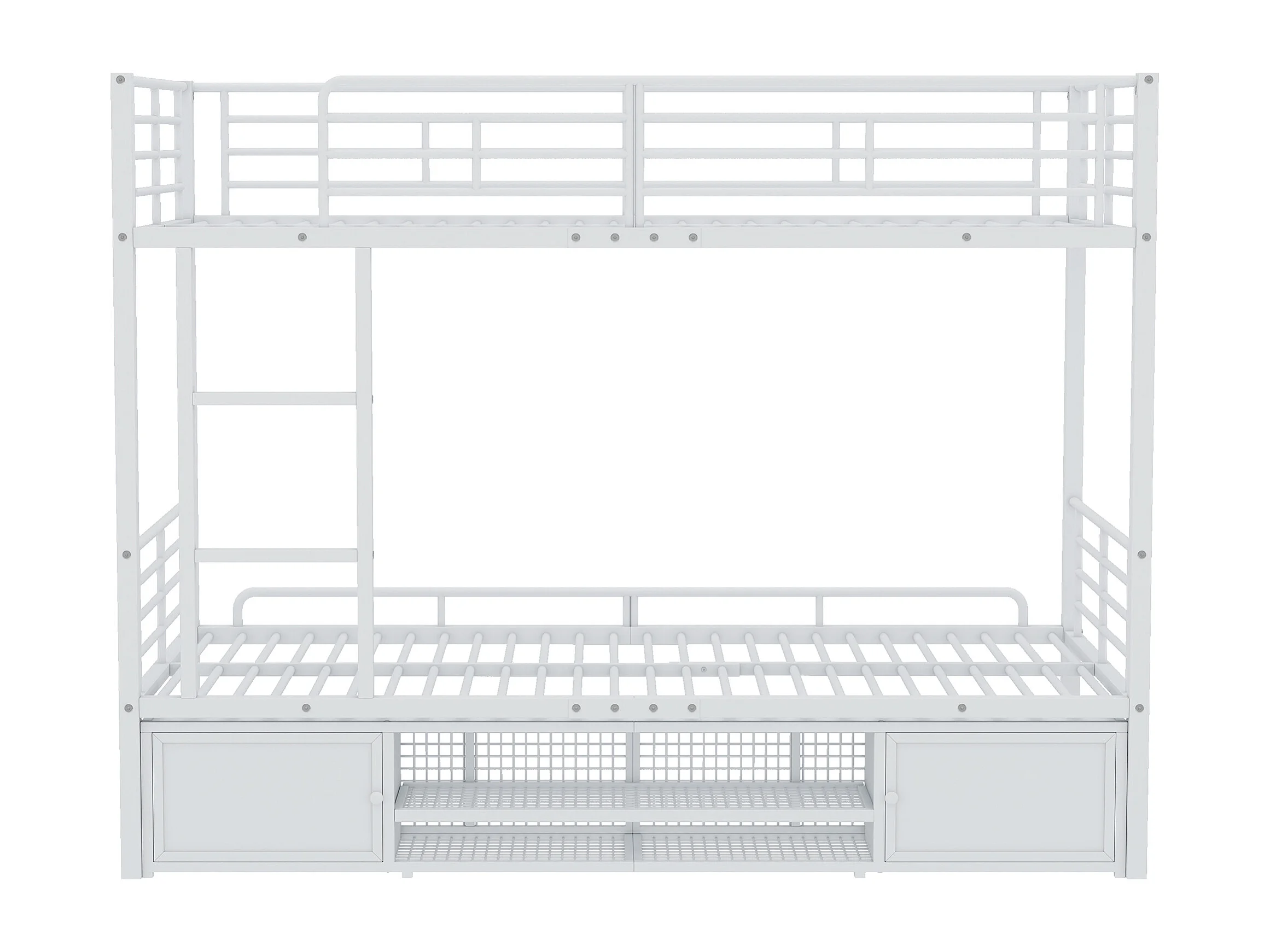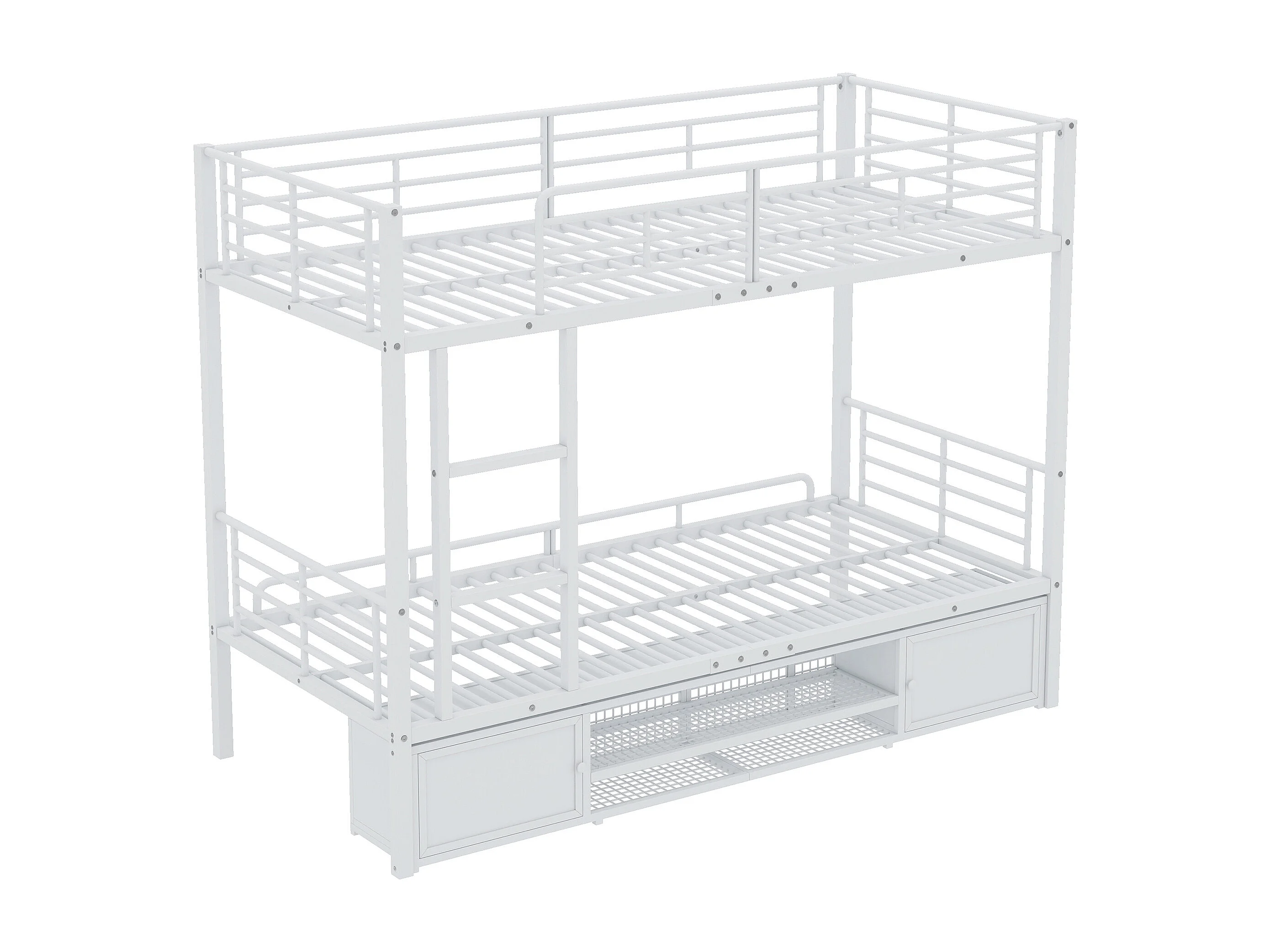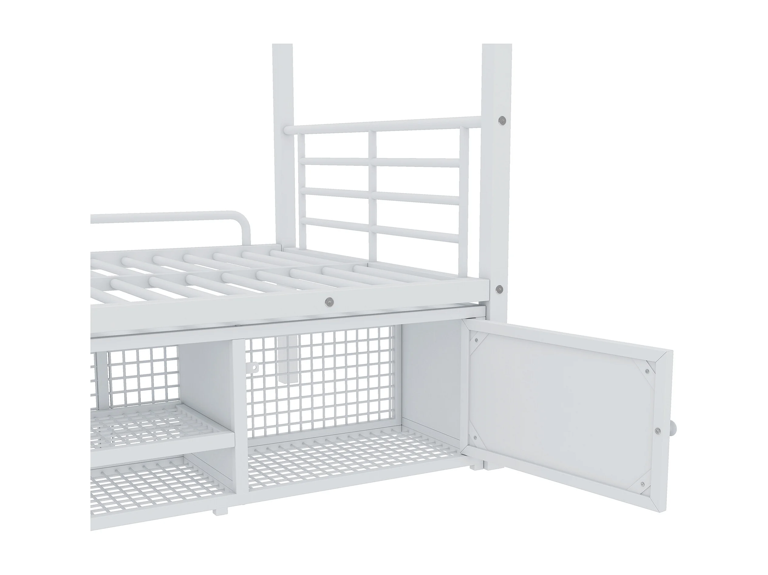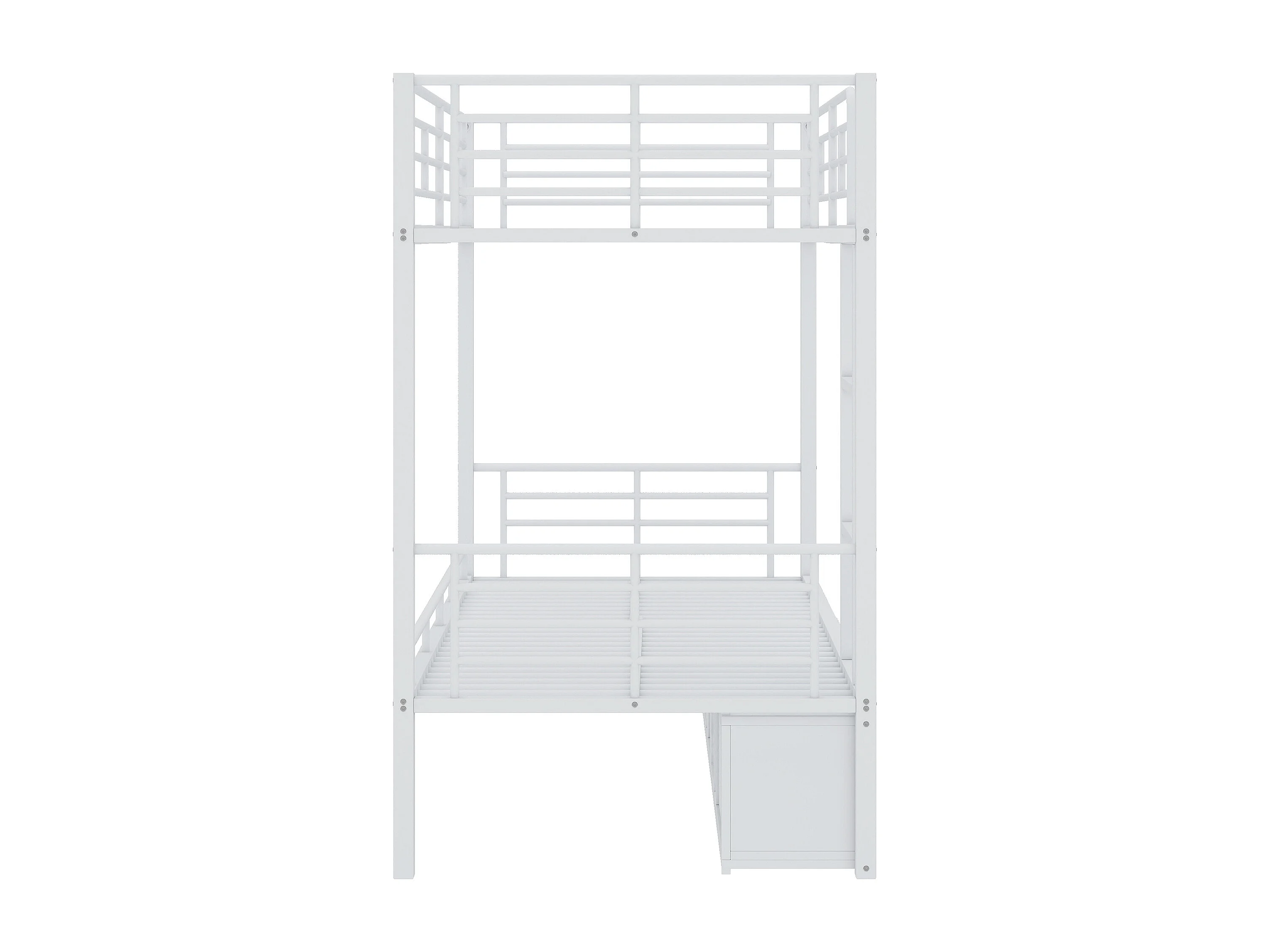 Metalen stapelbed 90x200cm - Kinderbed met open schoenenkast en opbergruimte - Wit