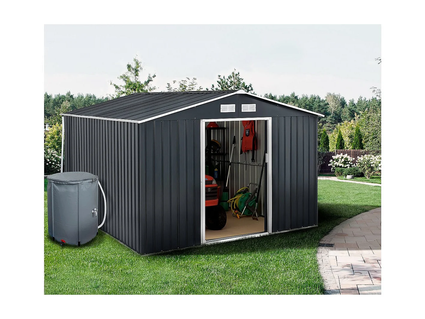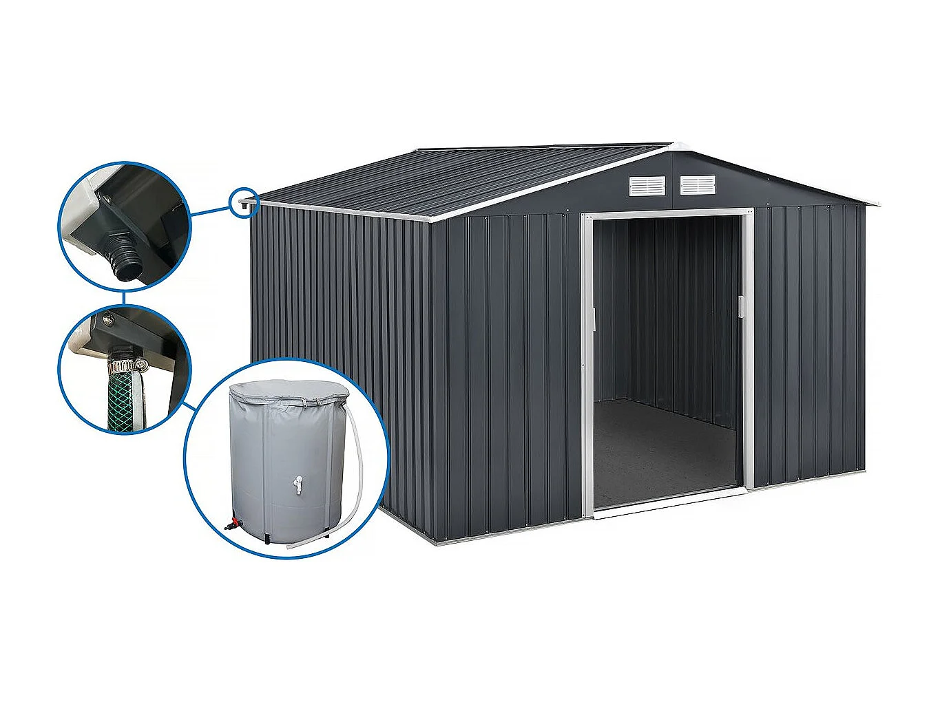 Tuinhuisje metaal - "Vegas"- 12,98 m² met goot en regenton waterreservoir - "Vegas" - Grijs
