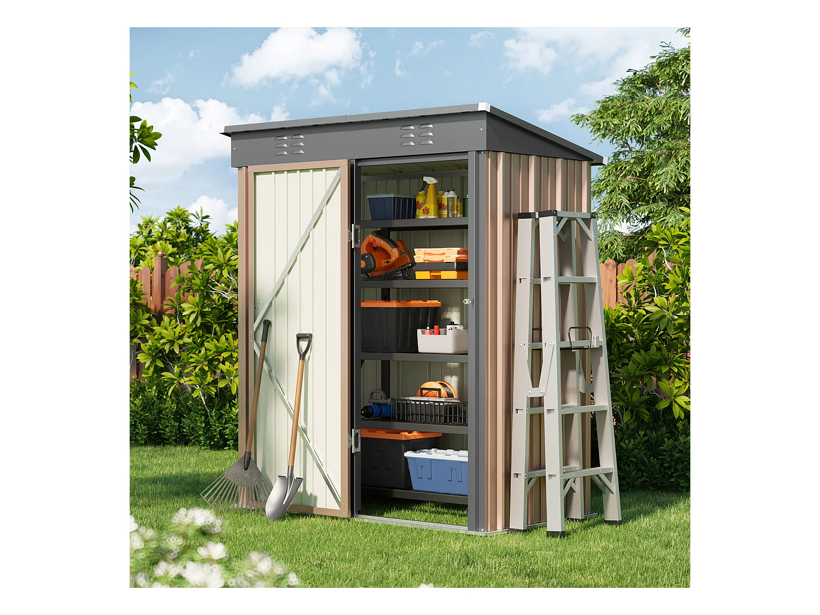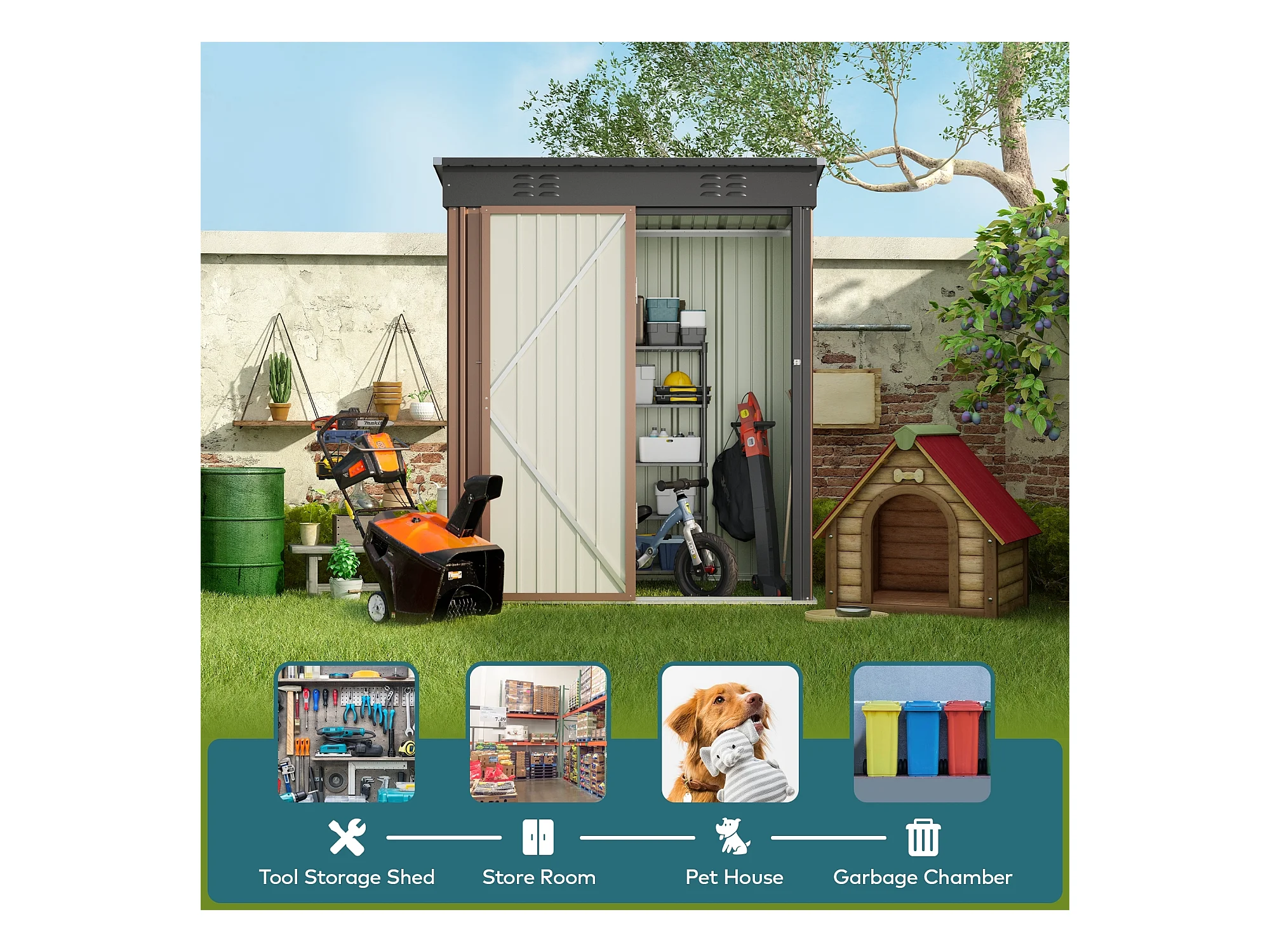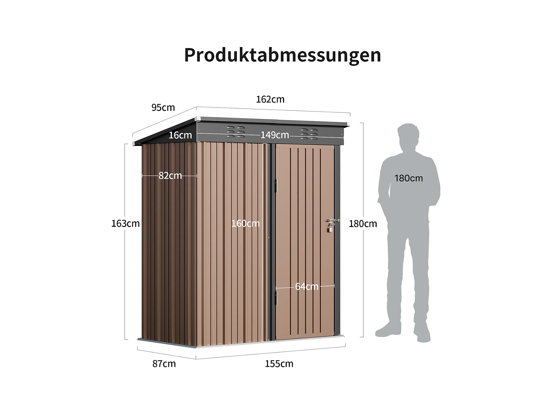 Metalen tuinhuisjes 162 x 95 x 182 cm Bruine schuur op de grond