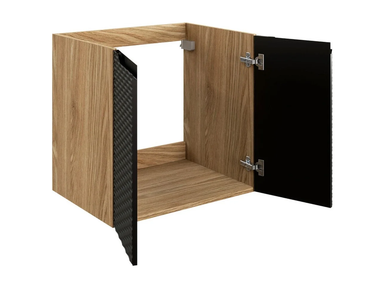 Meubel onder wastafel YOKA – Licht eiken en zwart – L60 × B46 × H57 cm – Om op te hangen