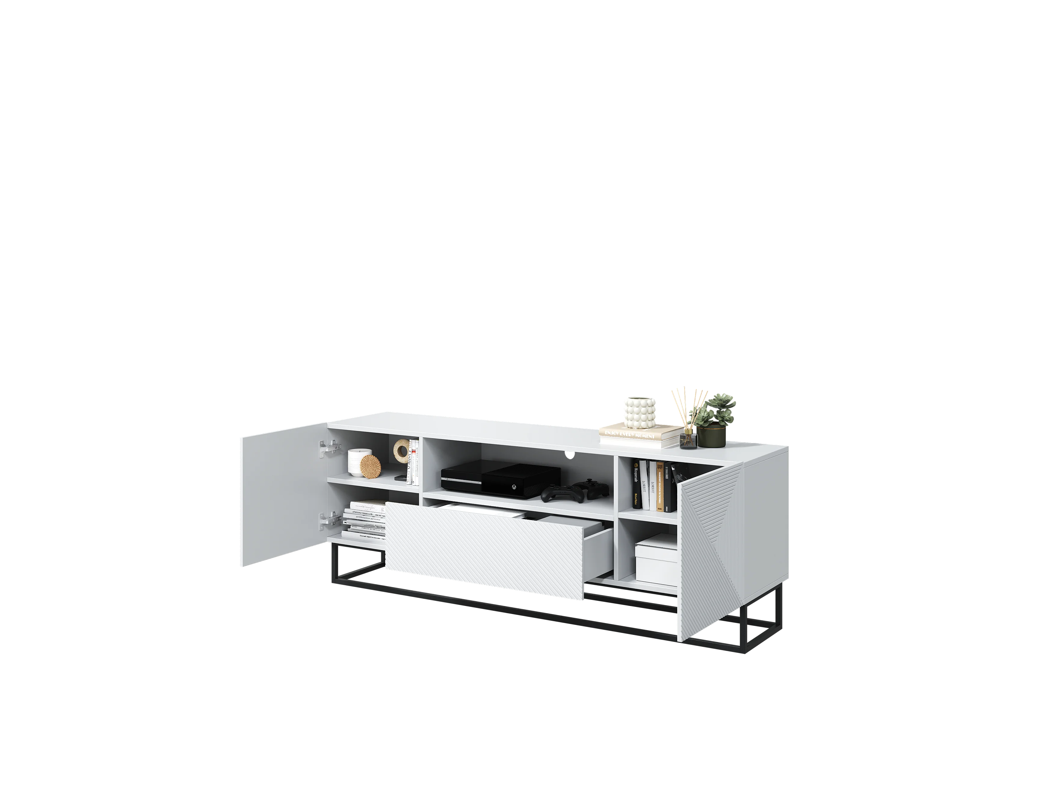 Meuble TV 2 deuren 1 lade bont metaal gelaagd wit 167x40cm