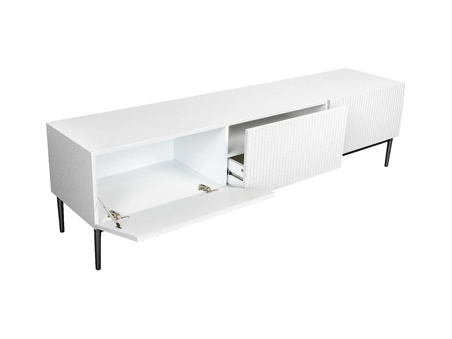 Wit TV-meubel met 2 deuren en 2 lades met zwart metalen voet 200x45 cm