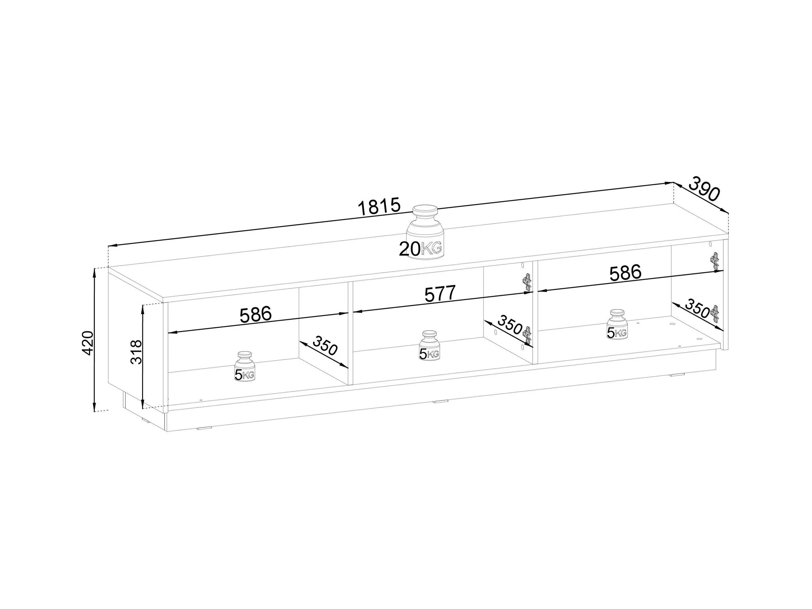 Meubel TV 3 deuren met zwarte metalen poten 168x56 cm
