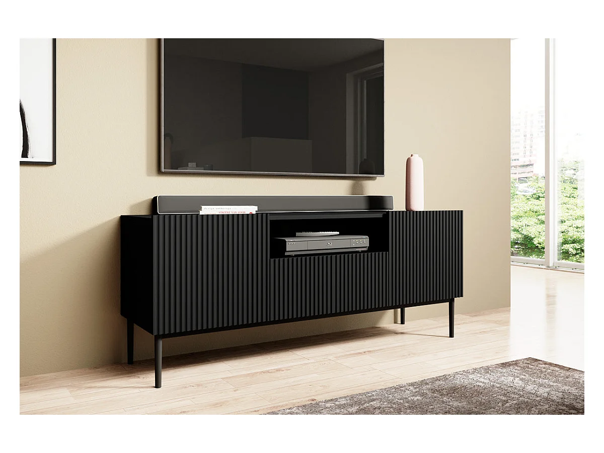 Meuble TV 2 deuren 1 tirair pied metal gelaagd zwart 167x40cm