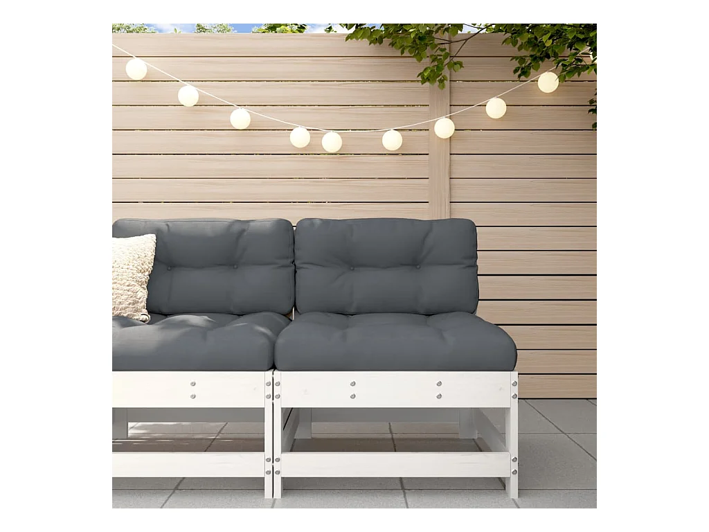 Tuinbank met armleuning en kussen massief grenenhout wit