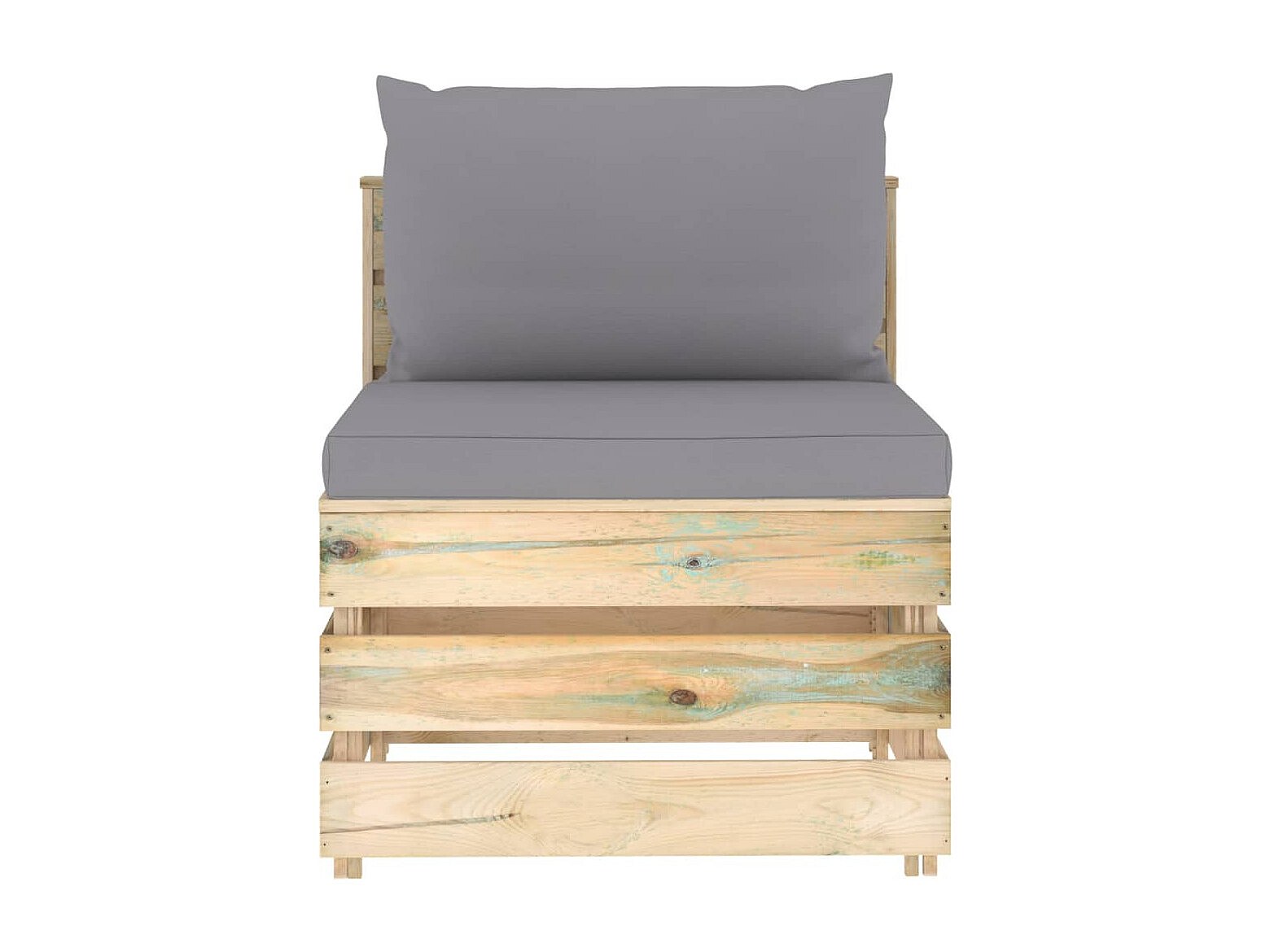 Middenbank sectioneel met kussens groen geïmpregneerd hout
