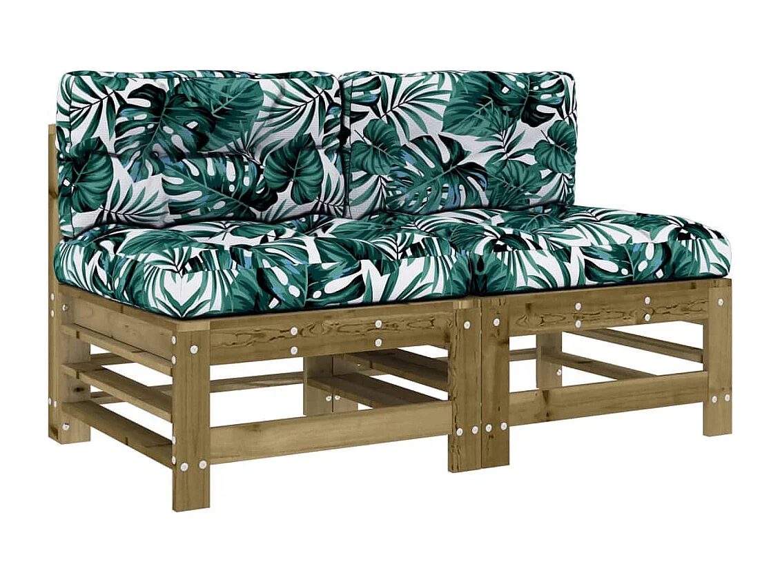 Middenbanken met kussens 2 st geïmpregneerd grenenhout