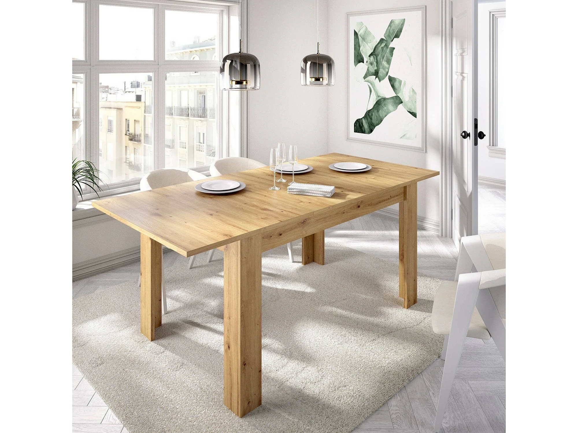 Midland uitschuifbare tafel, Uitschuifbare console voor eetkamer, Opengaande keukentafel met verlengstuk, 140/190x90h78 cm, Nodi eiken