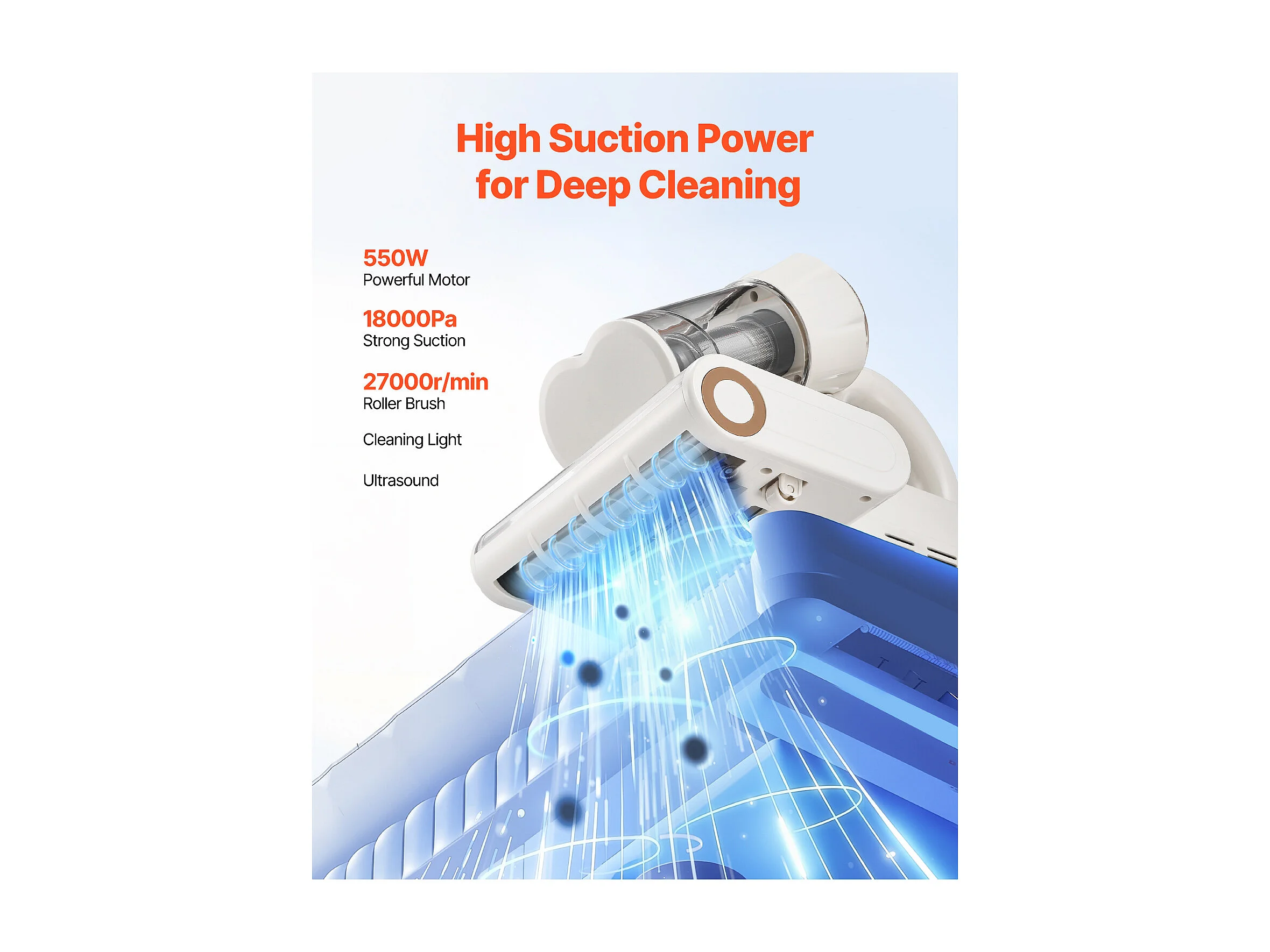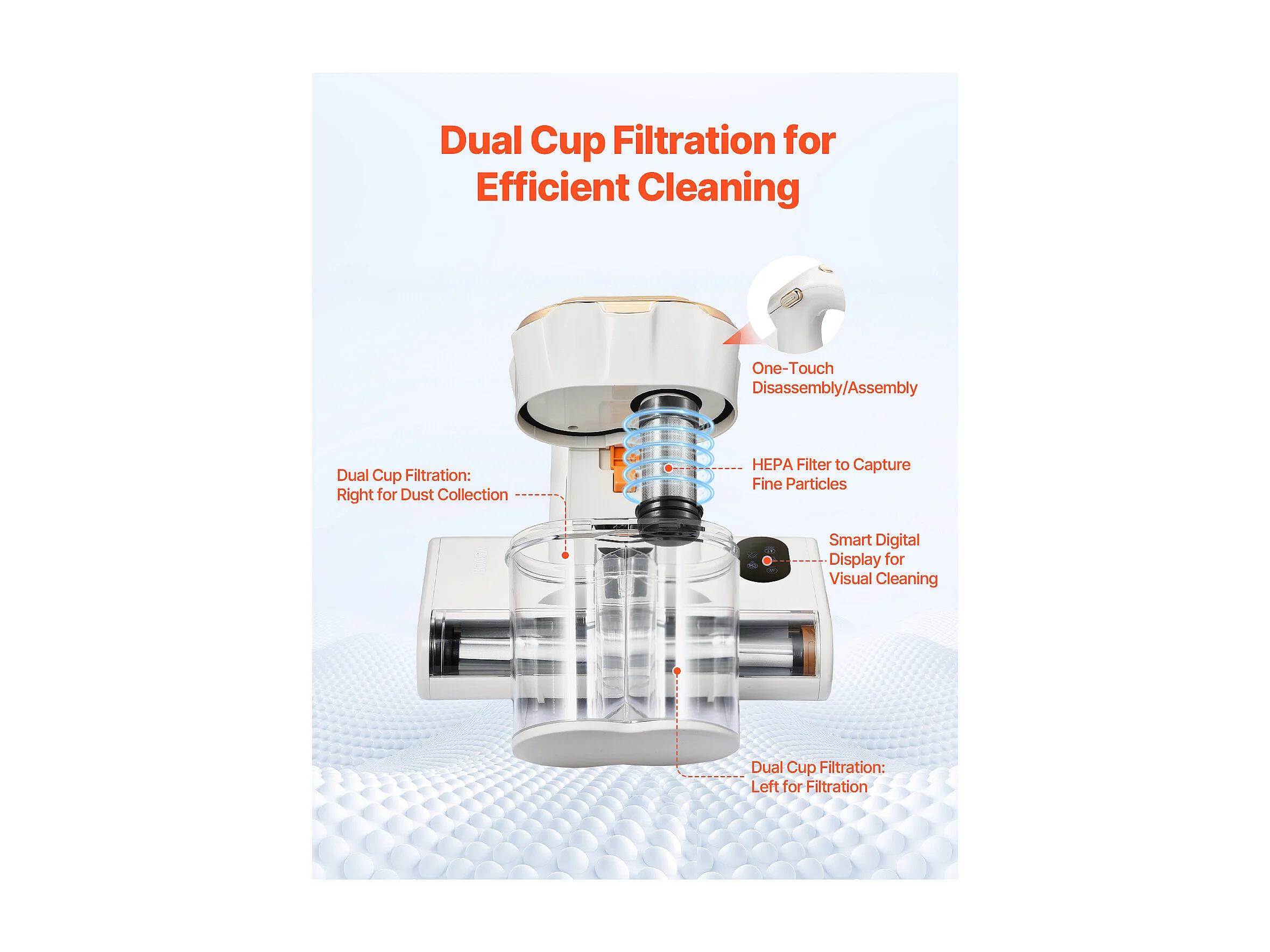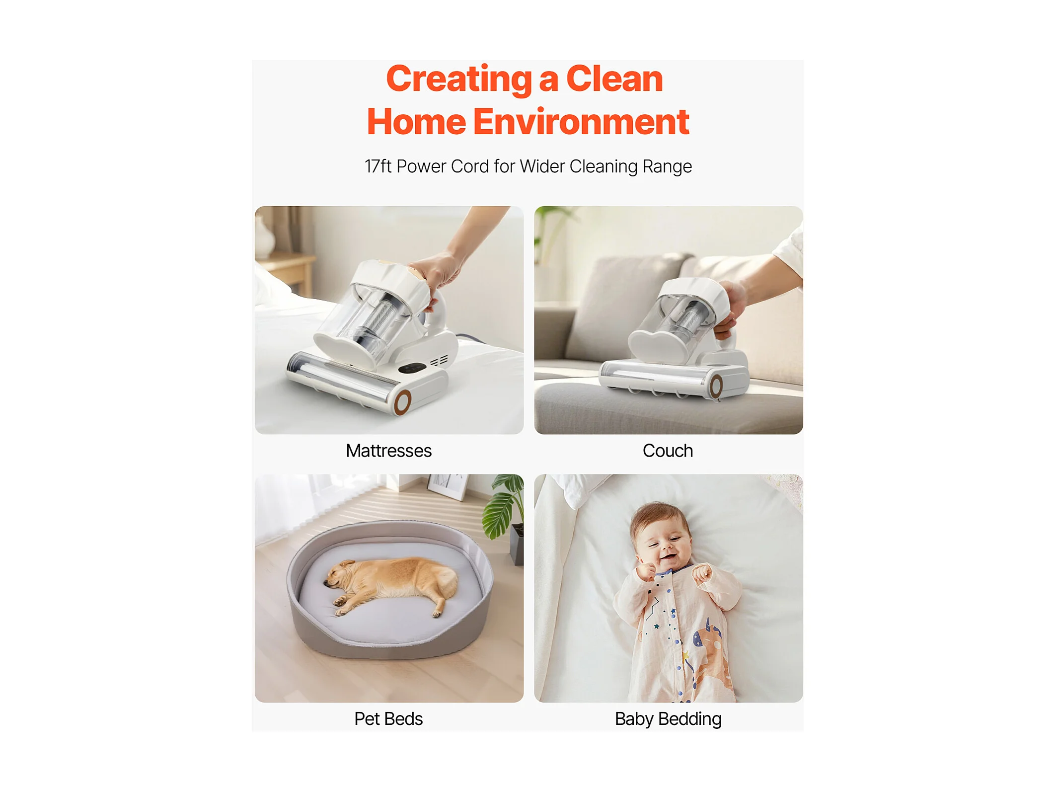 Mijtenstofzuiger voor Matrassen SucceBuy 550 W, Handstofzuiger voor Bed met Krachtige Zuigkracht 18 kPa, Dubbele Stofbak, HEPA-filter en Verwarming