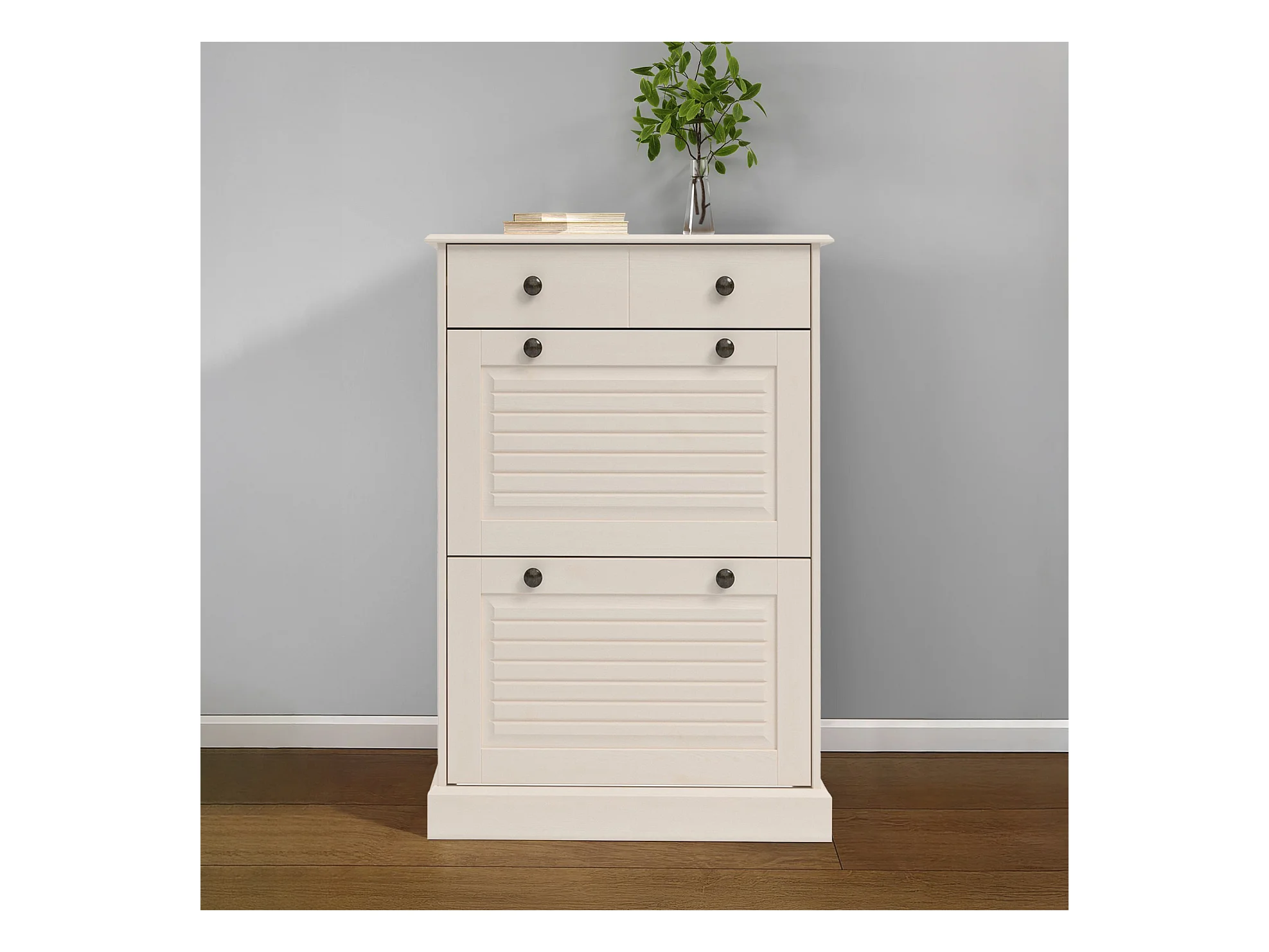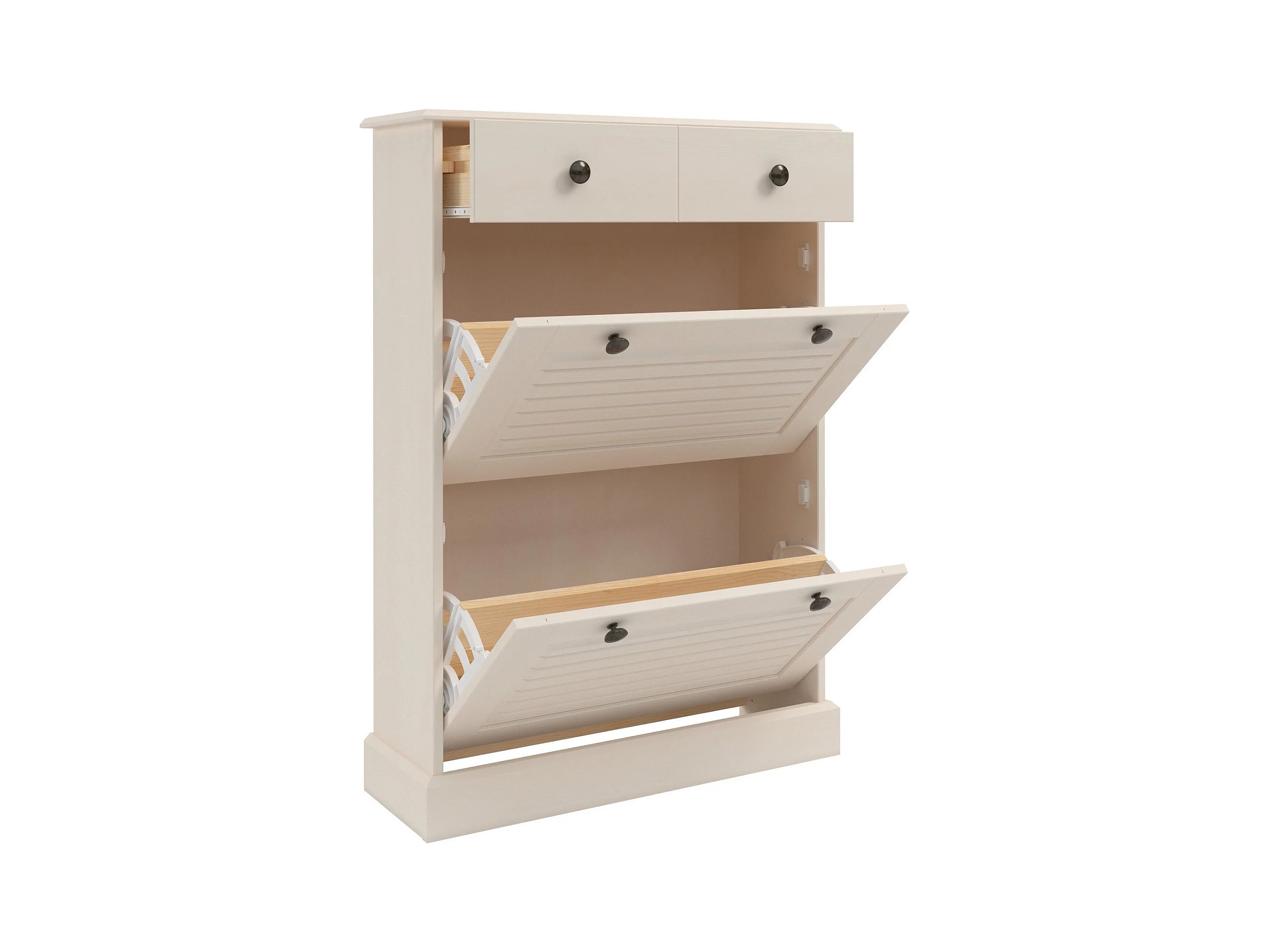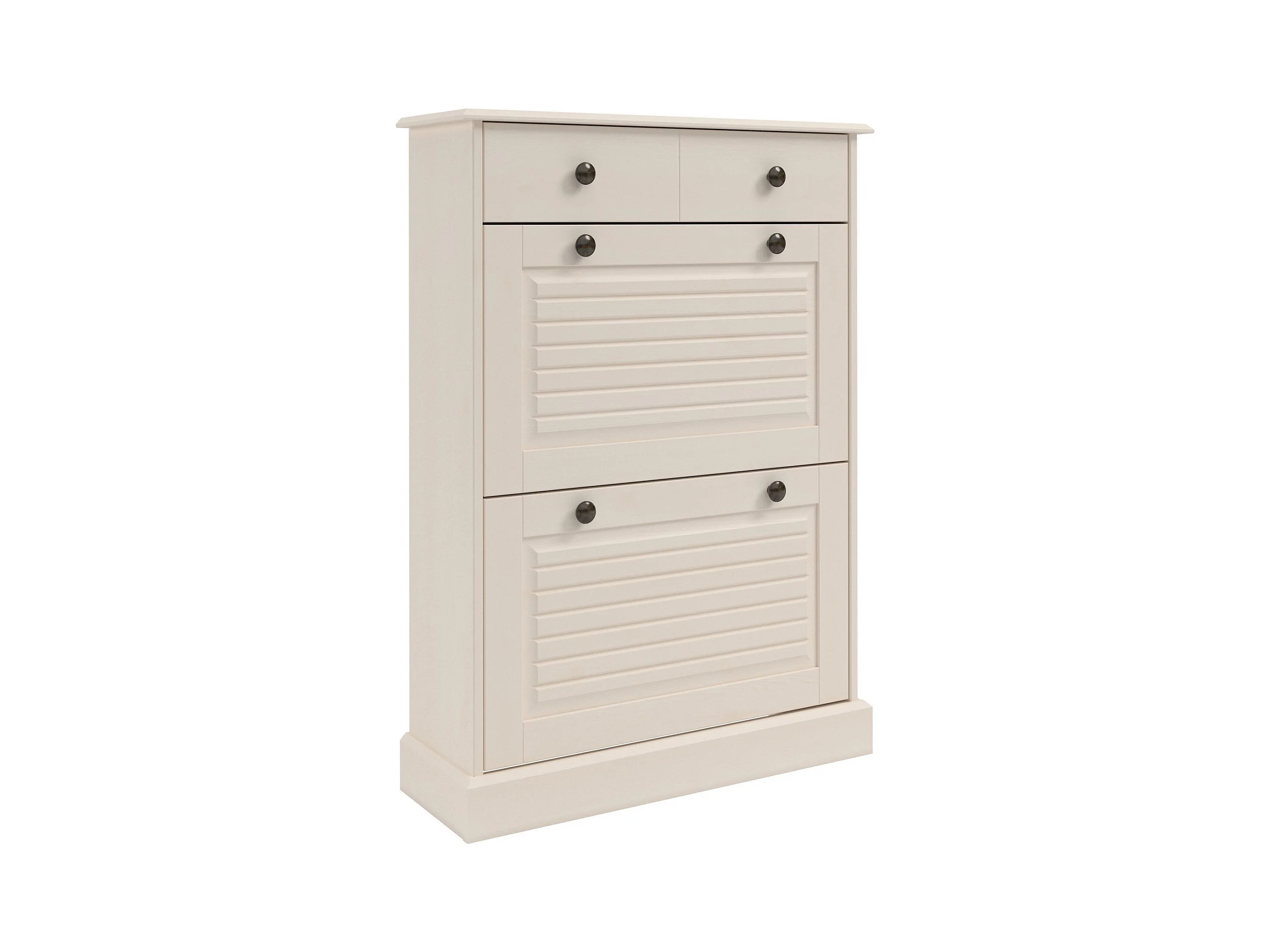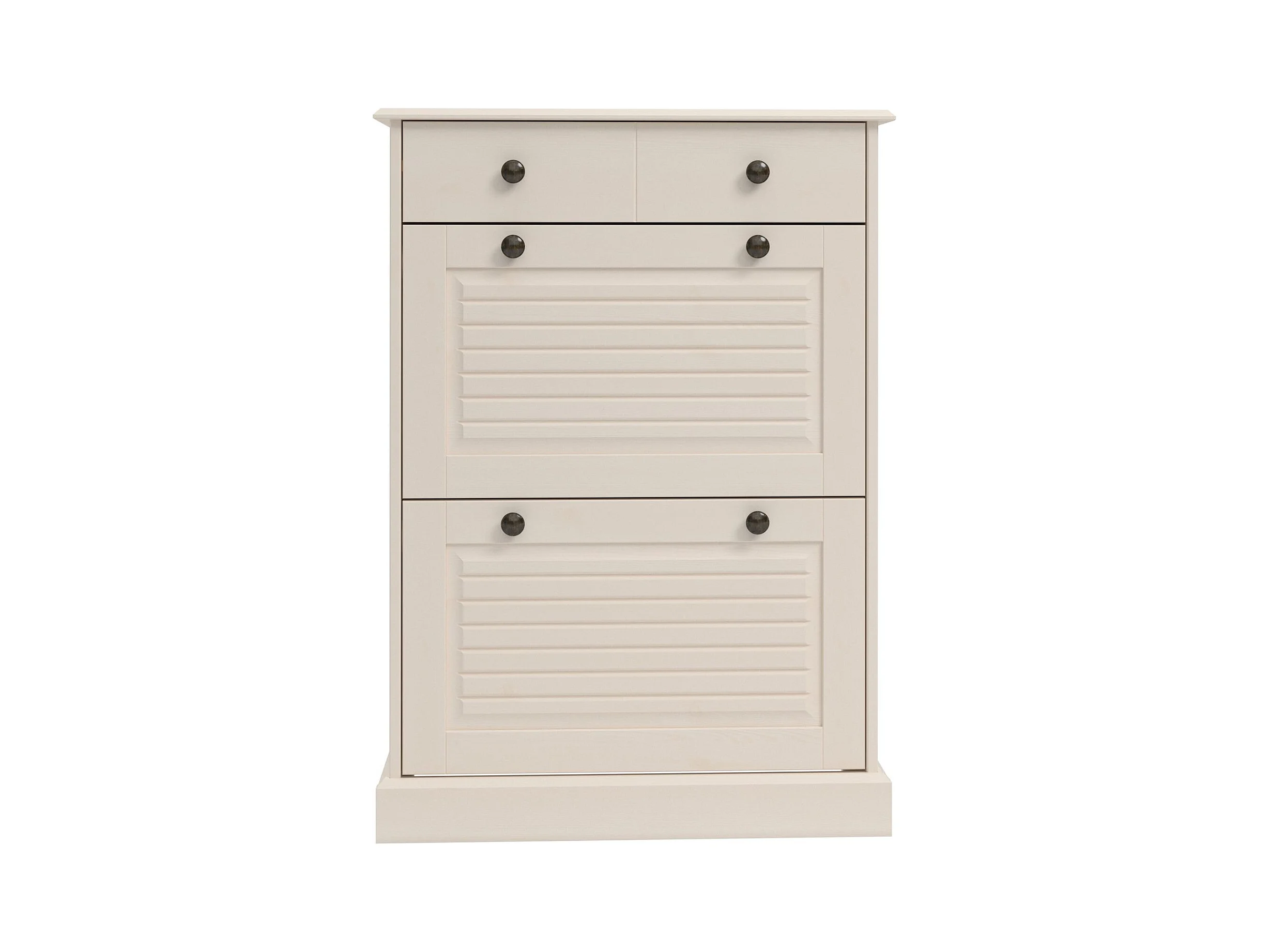 Mille | Schoenenkist met 2 klepdeuren 1 lade in grenen wit