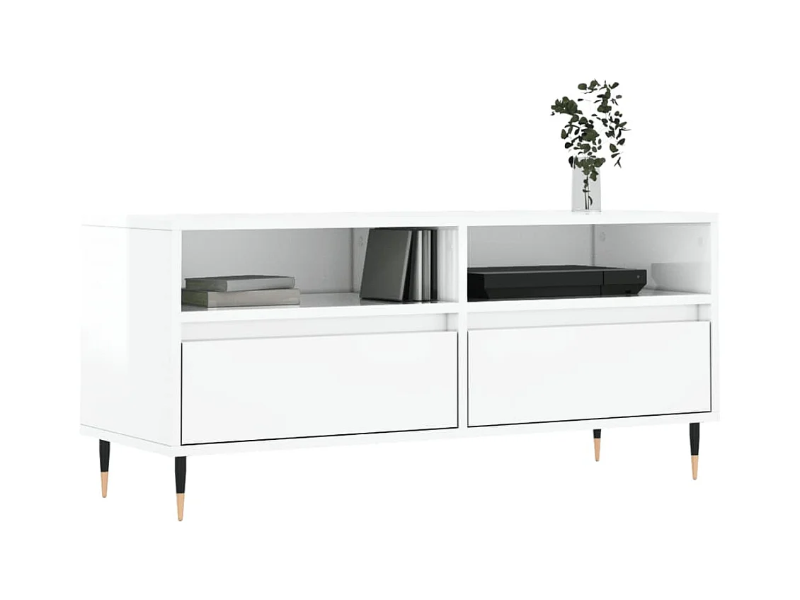 Yolanda Tv-meubel 100x35,5x45 cm bewerkt hout hoogglans wit