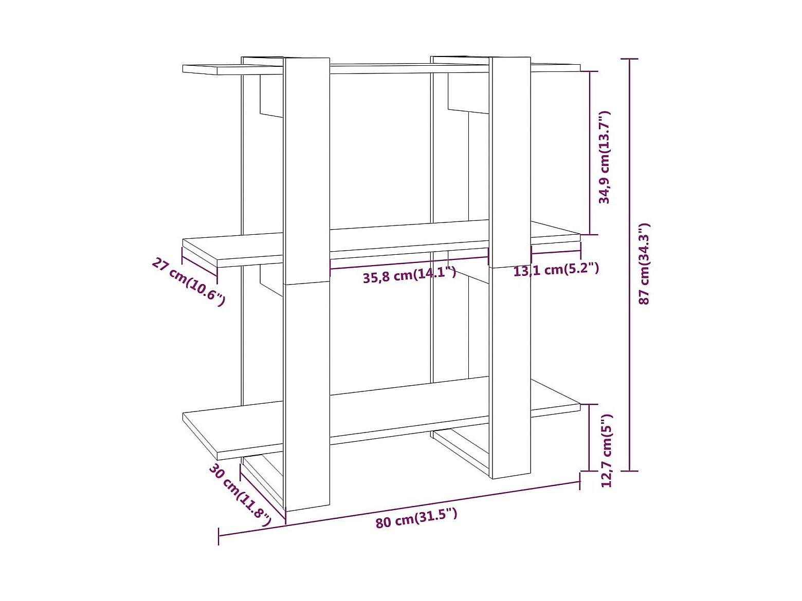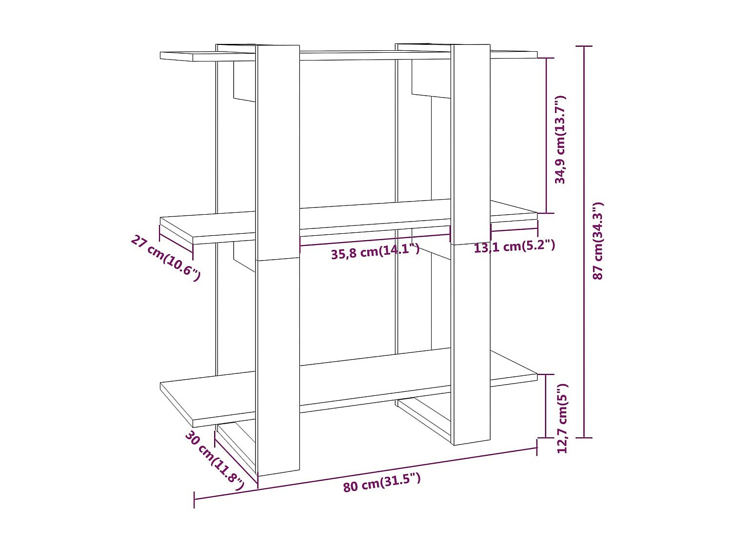 Aruna Boekenkast/kamerscherm 80x30x103,5 cm massief grenenhout zwart