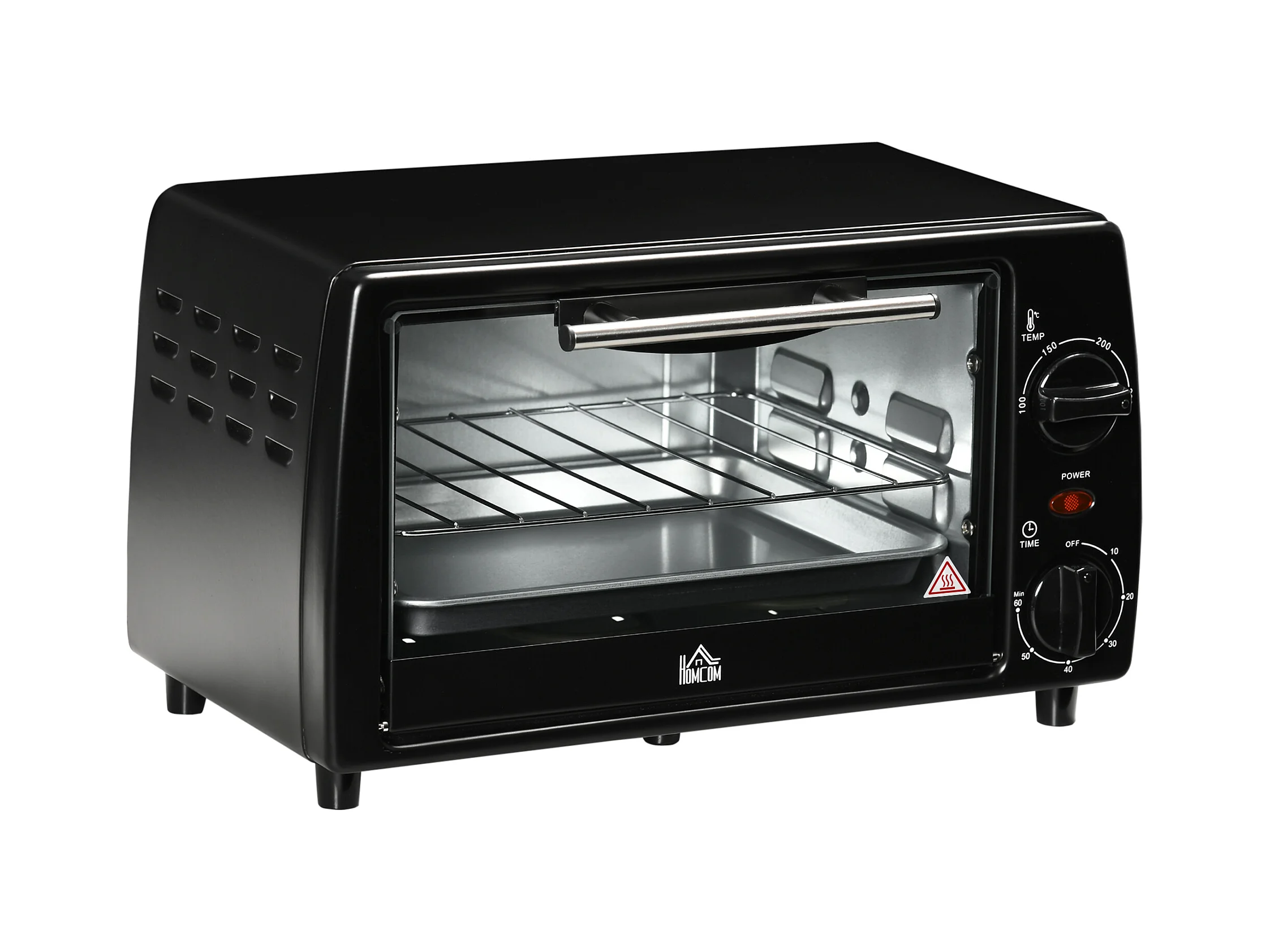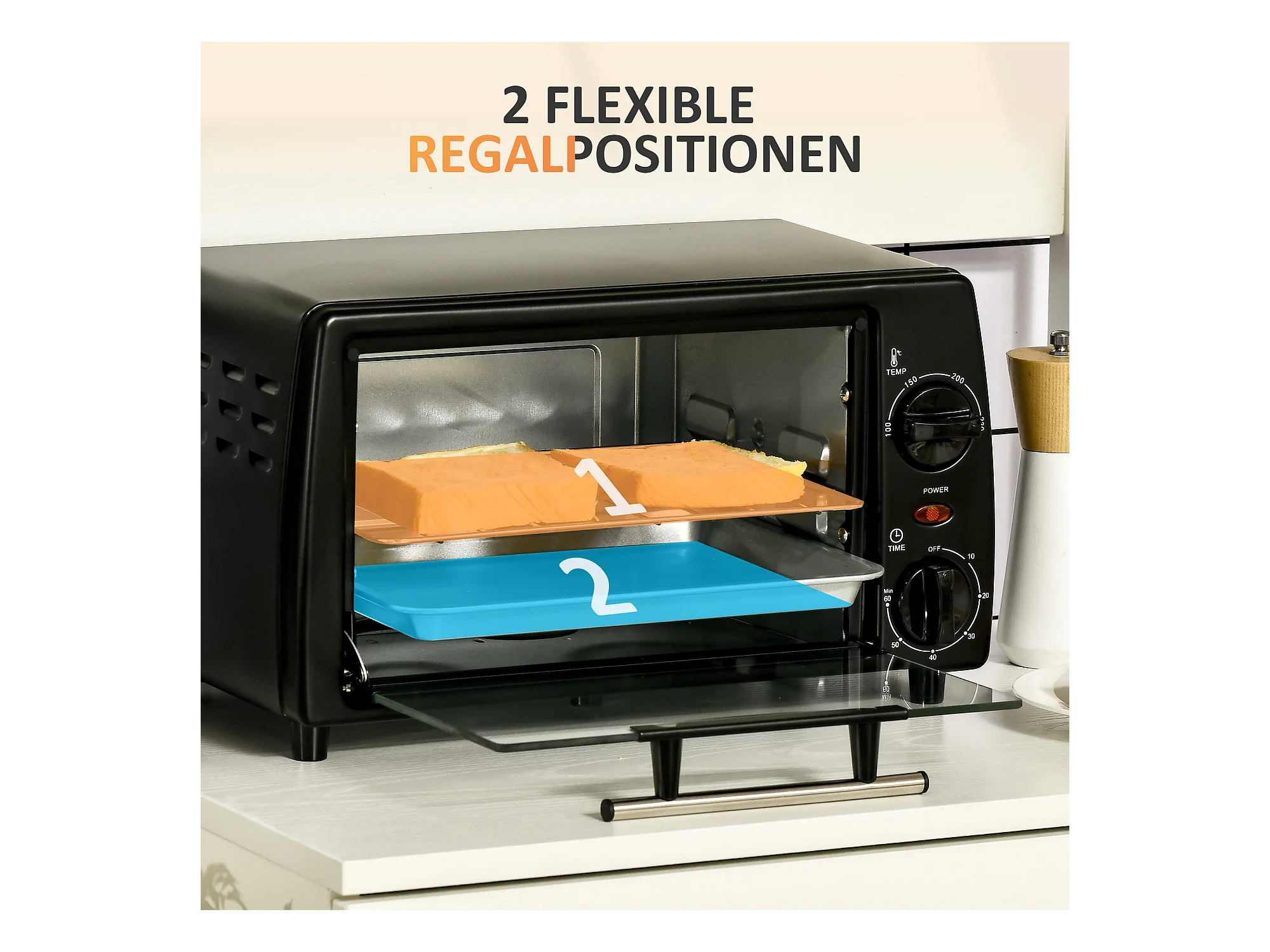 Mini four 9L, 750W, temperatuur regelbaar 100°C-230°C, minuten 60 min, plaque de cuisine en grille, metaal, zwart (36,5x26x22cm)