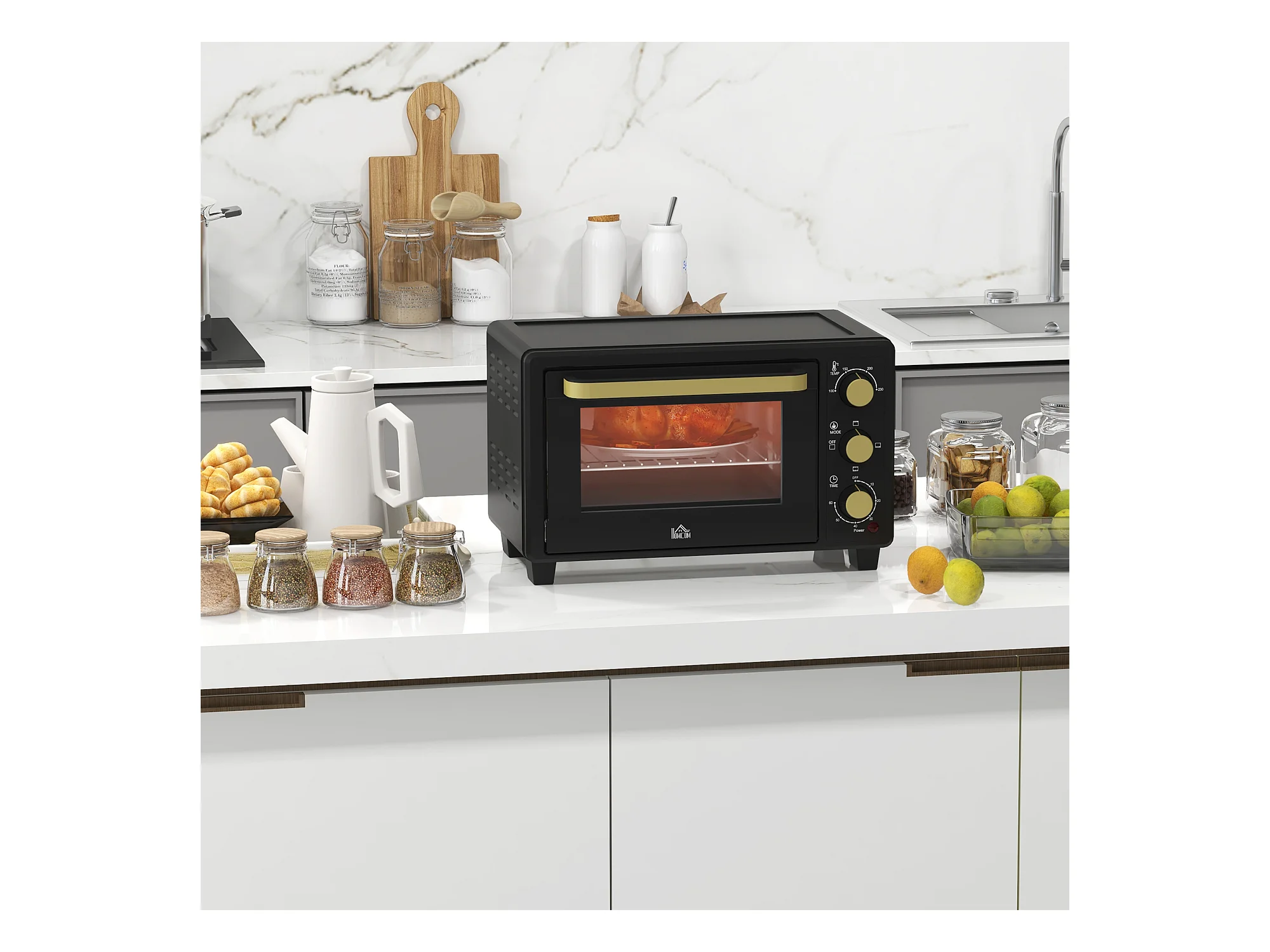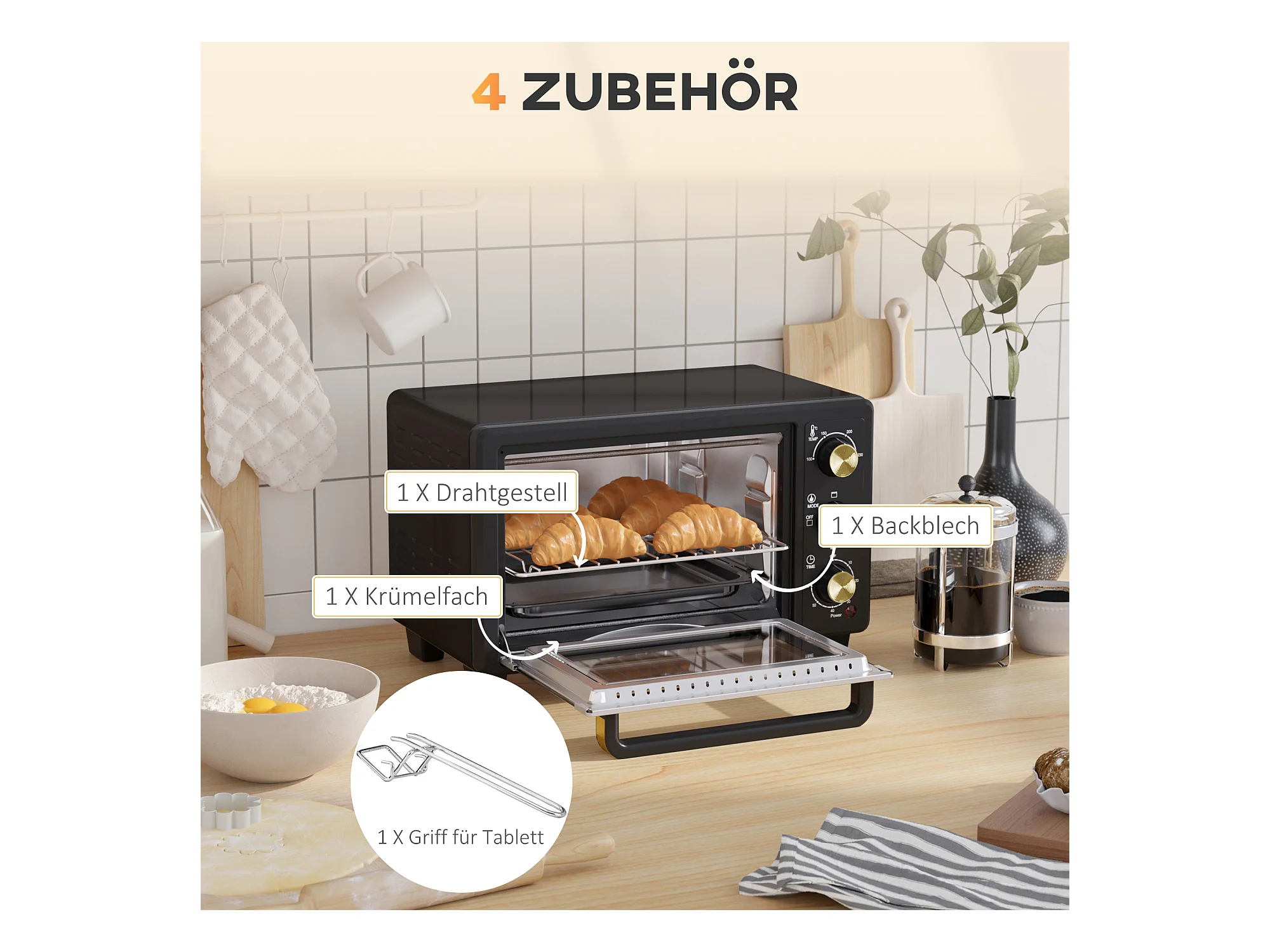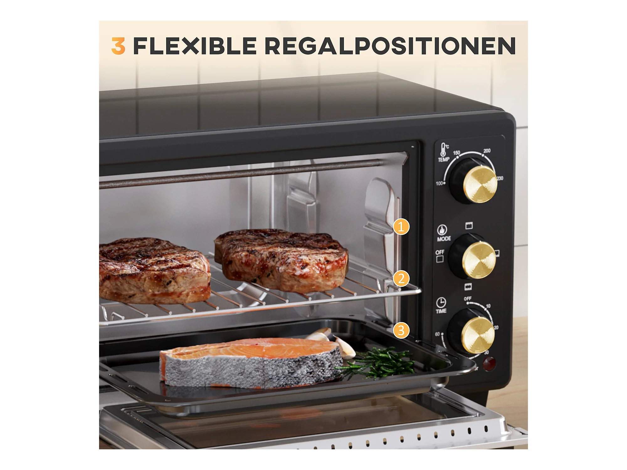 Mini four 20L, 1400W, 3 kookstanden, temperatuur instelbaar van 90°C tot 230°C, met 60 minuten, in zwart en zilver