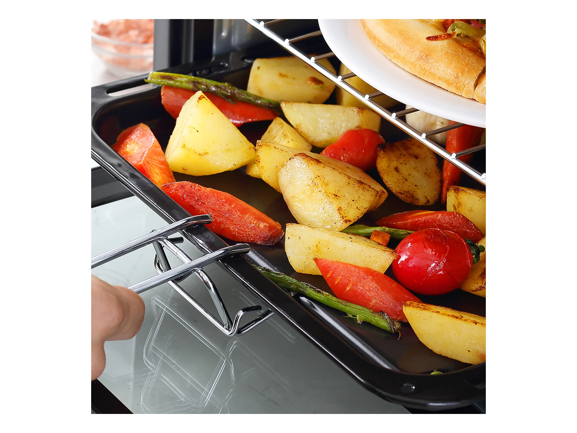 Mini vier 28L 2600W met 60 min minuut, 2 verwarmingsplaten, grill en kookplaat, vier met pizza met grill en mietettes (48,6x36,3x33cm)