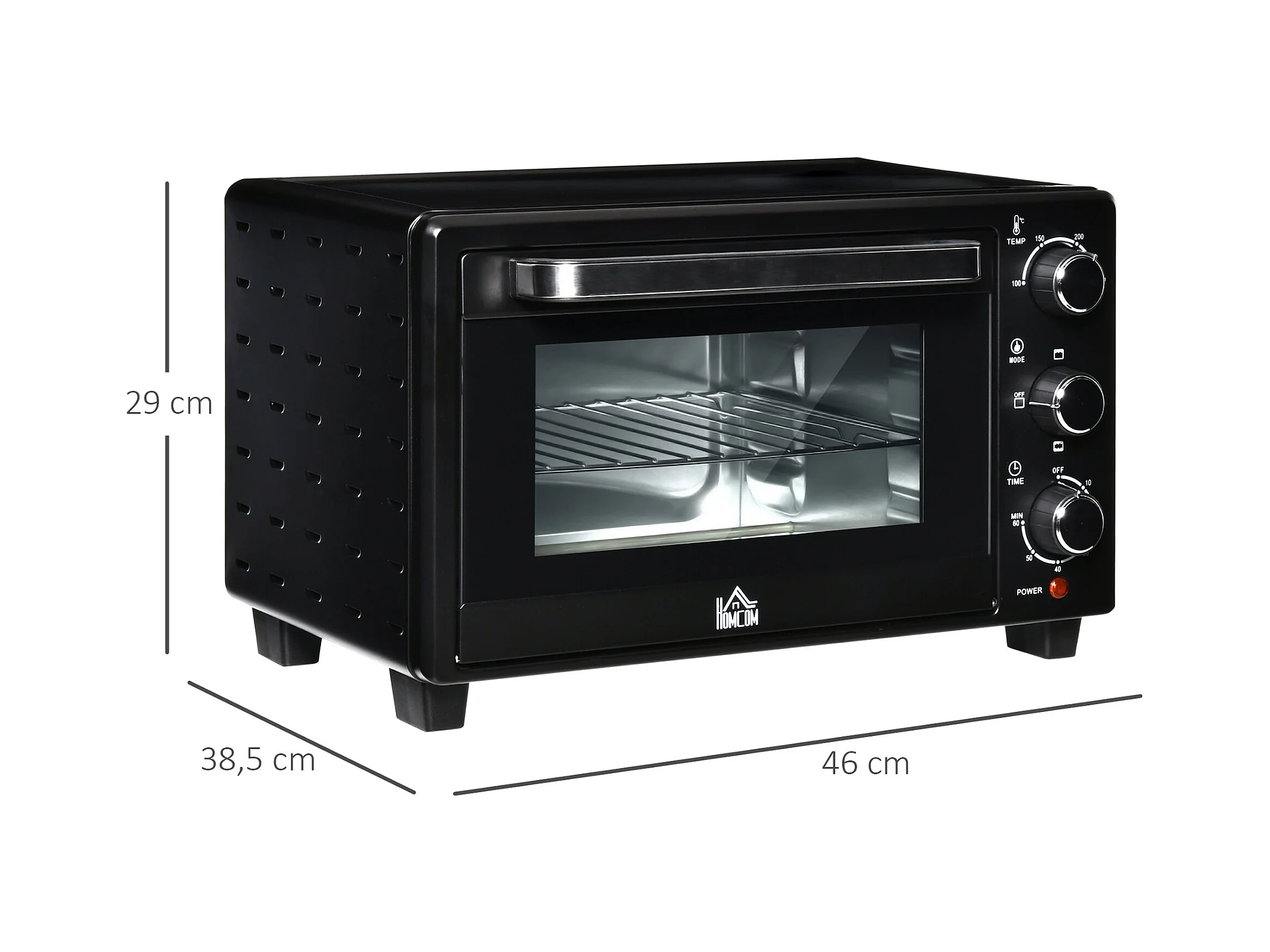Mini four 20L, 1400W, 3 kookstanden, temperatuur instelbaar van 90°C tot 230°C, met 60 minuten, in zwart en zilver