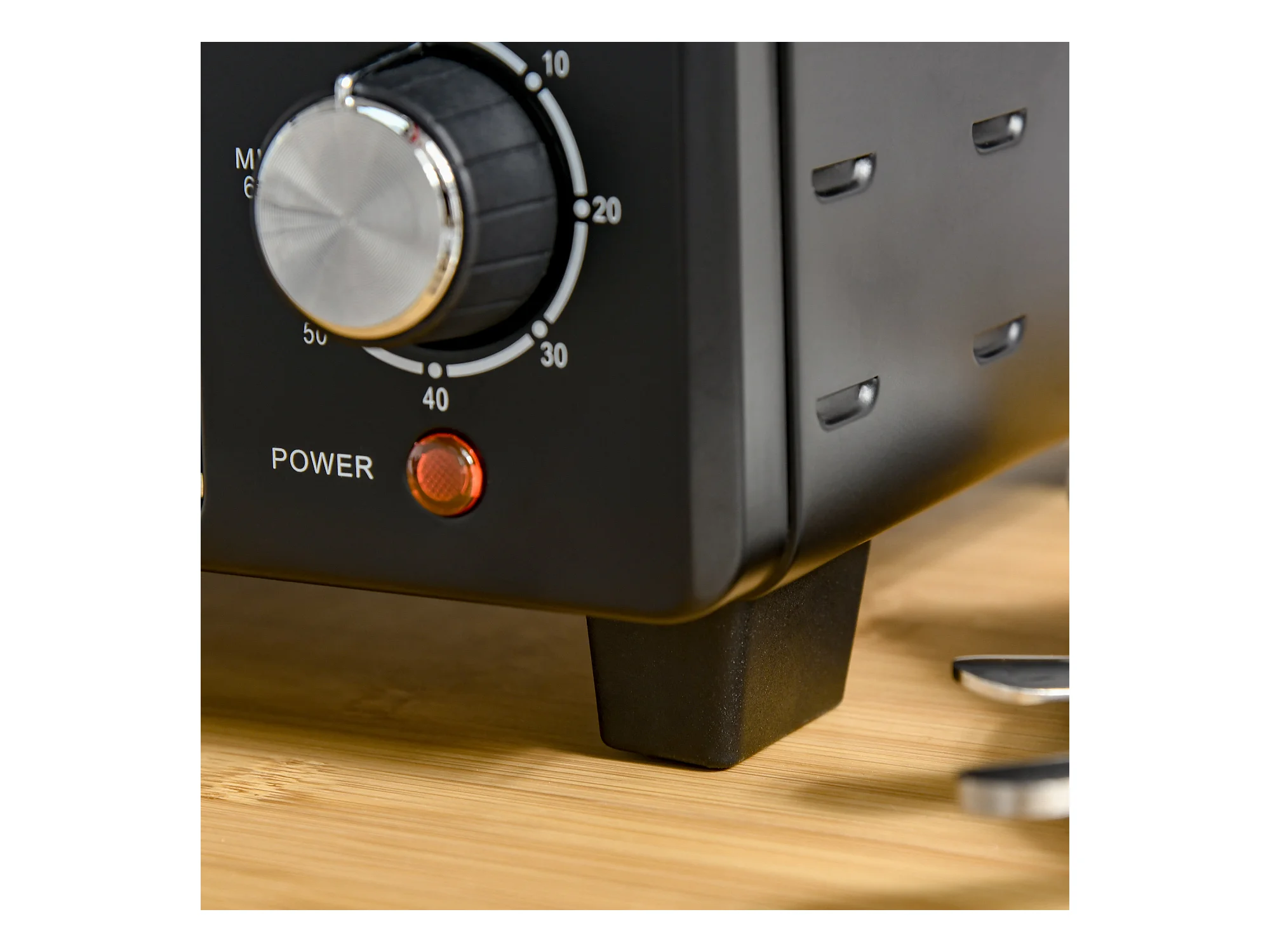 Mini four 10L, 750W, 100-230°C, 60 min minuterie, plaque de cuisine, grill, inox, zwart (36,5L x 26W x 22Hcm)