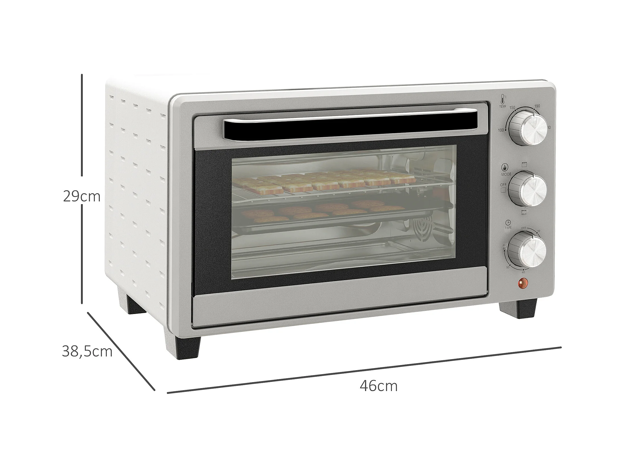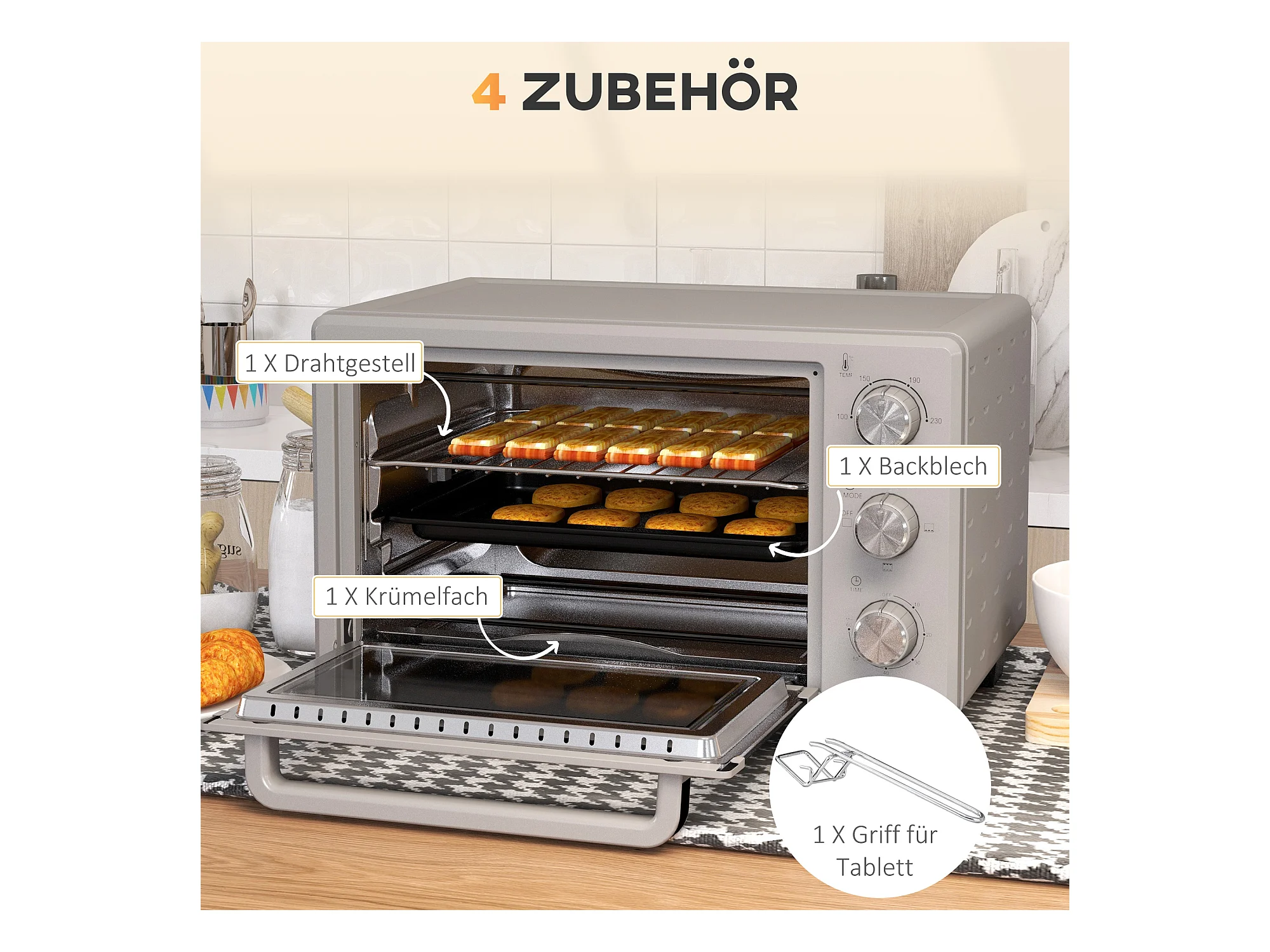 Mini four 32L, 1600W, 3 kookmodi, 100-230°C, met 1 uur minuten, plaque de cuisine, roosters en bakken met verhuur, metaal, argenté (52,2x38,1x33,5cm)