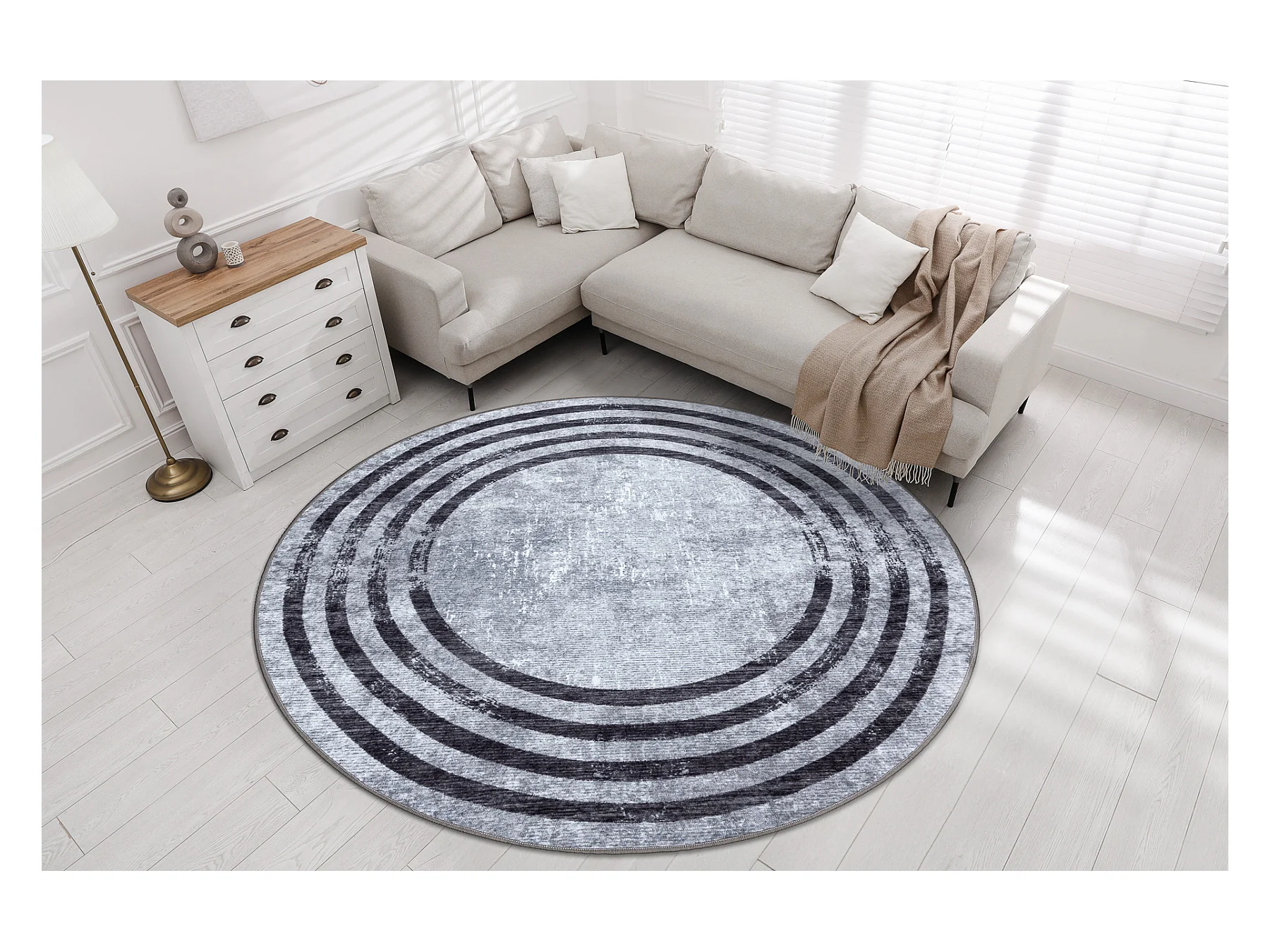 MIRO 51231.806 cirkel tapijt wasbaar Lijnen antislip - grijs / crno cercle 80 cm