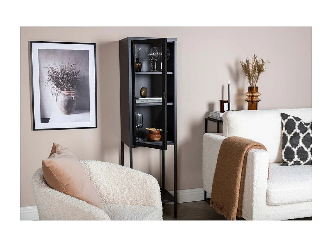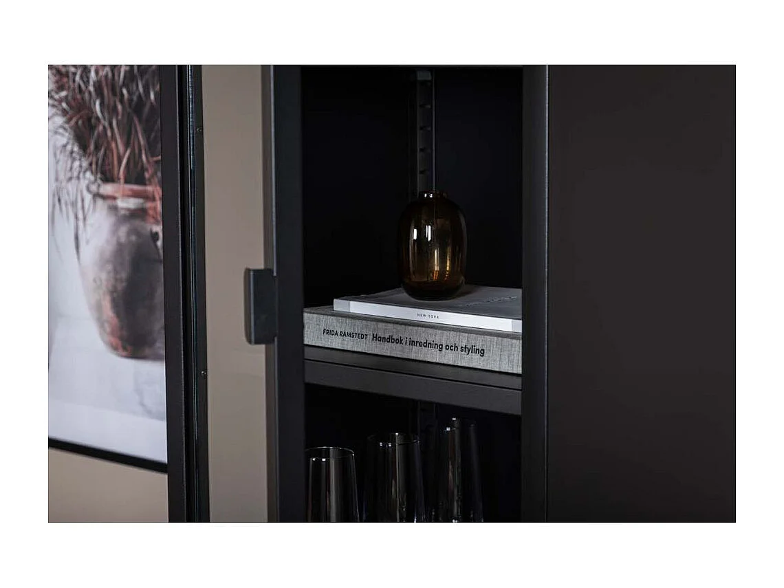 Misha vitrinekast 1 deur, 4 planken, zwart.