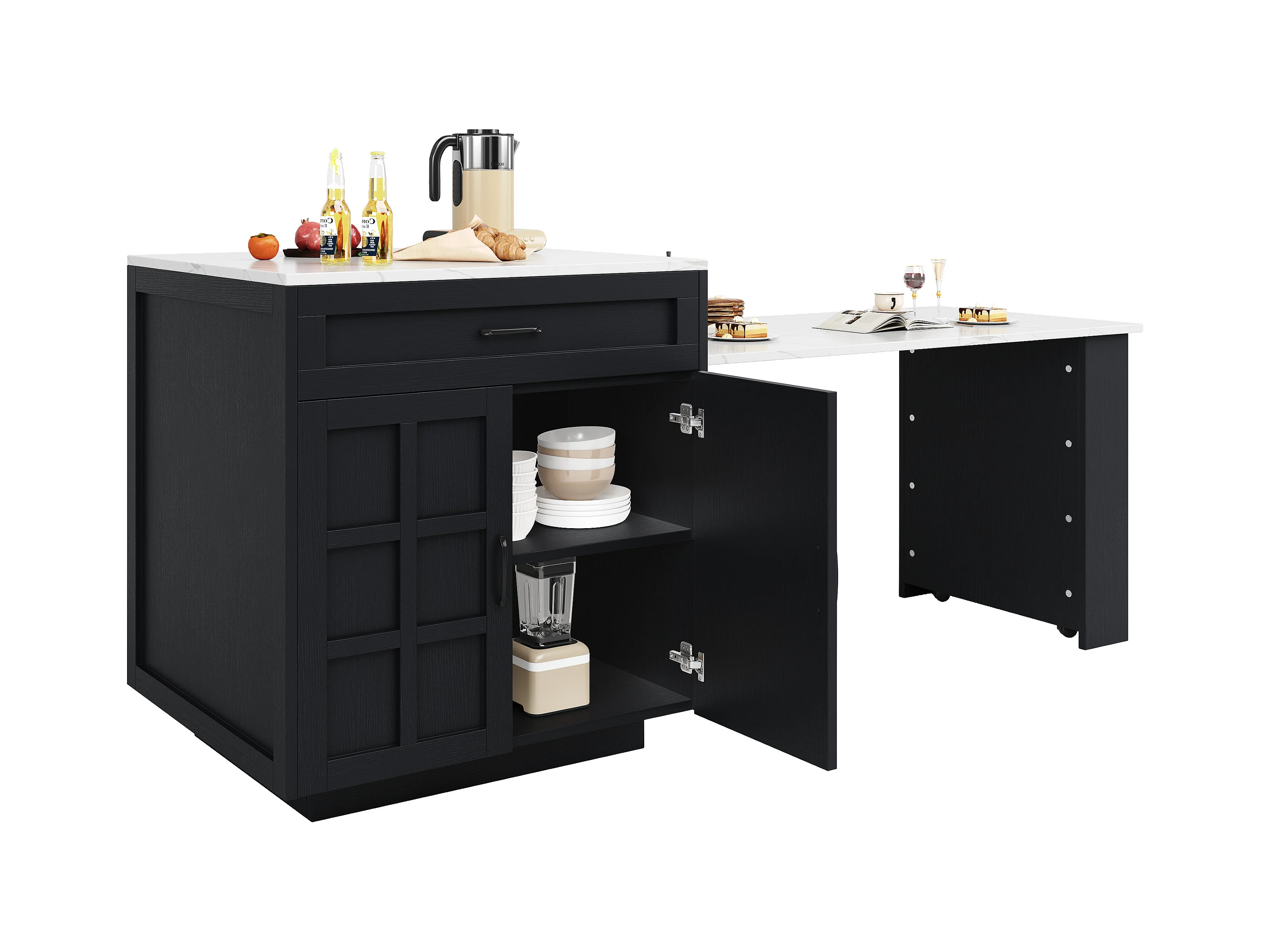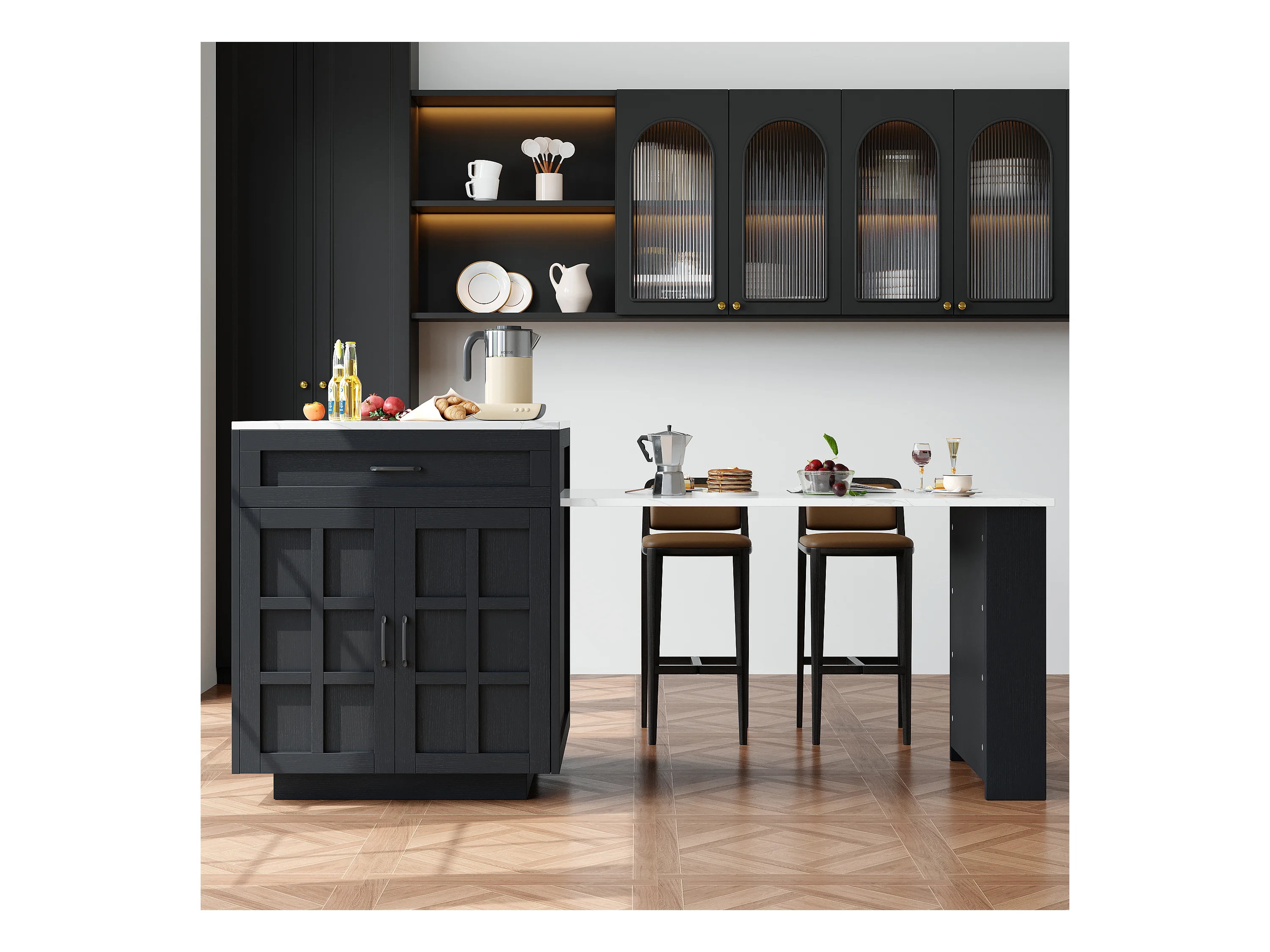 Mobiel keukeneiland met 2 lades, 2 deuren en opbergplanken - 211x55x89,5 cm - MDF - Zwart + Wit