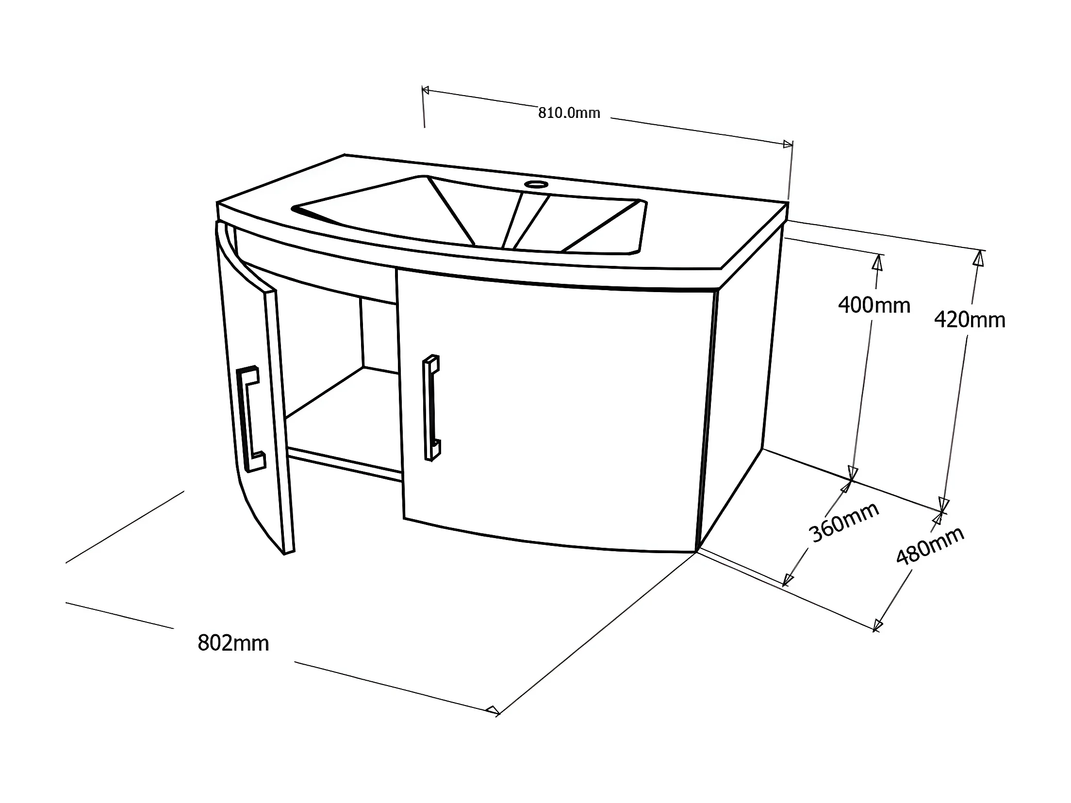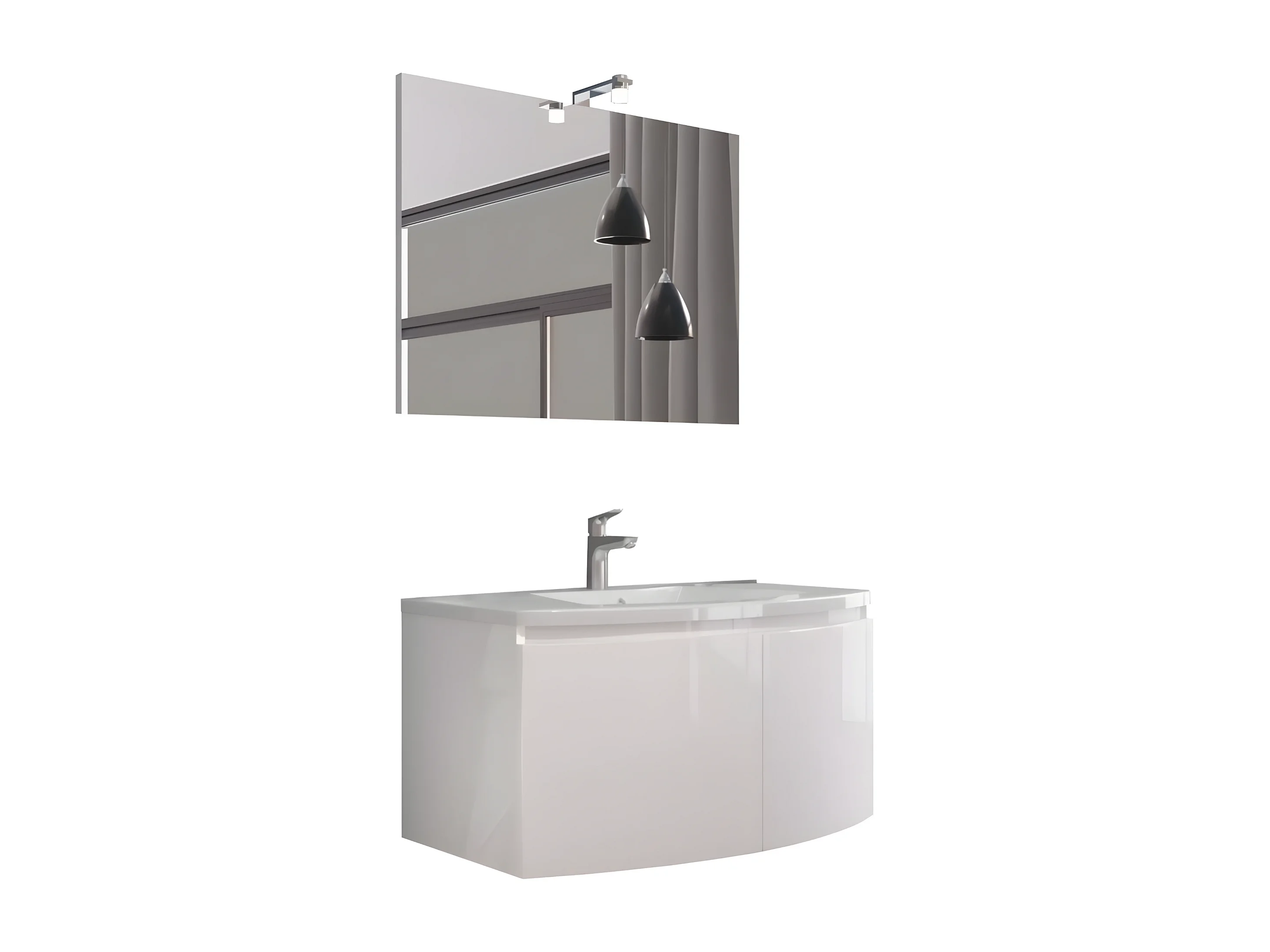 Mobiele sospeso da bagno bianco lucid "Ettore" a 2 ante met LED specchio en keramisch toilet cm 80x49 42h