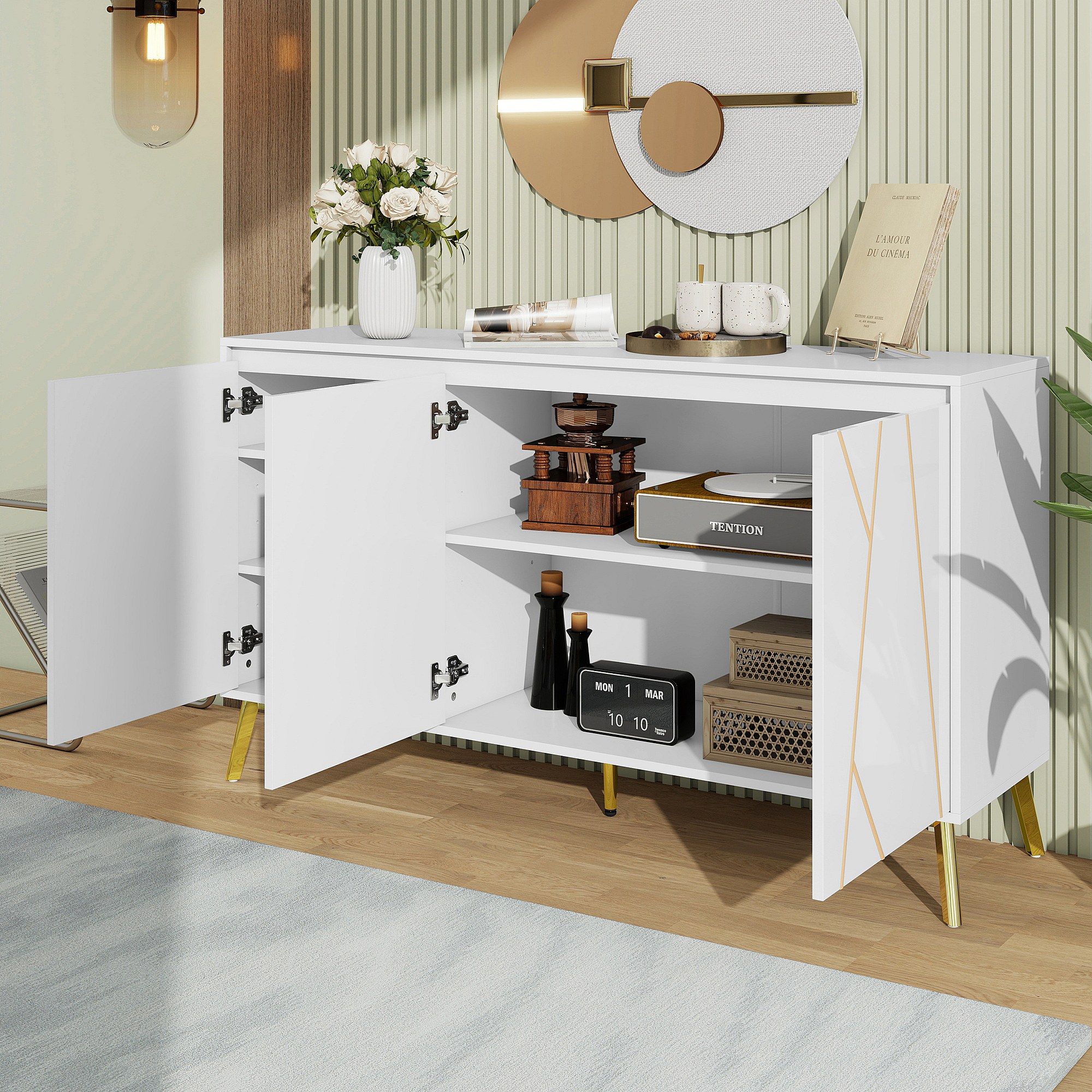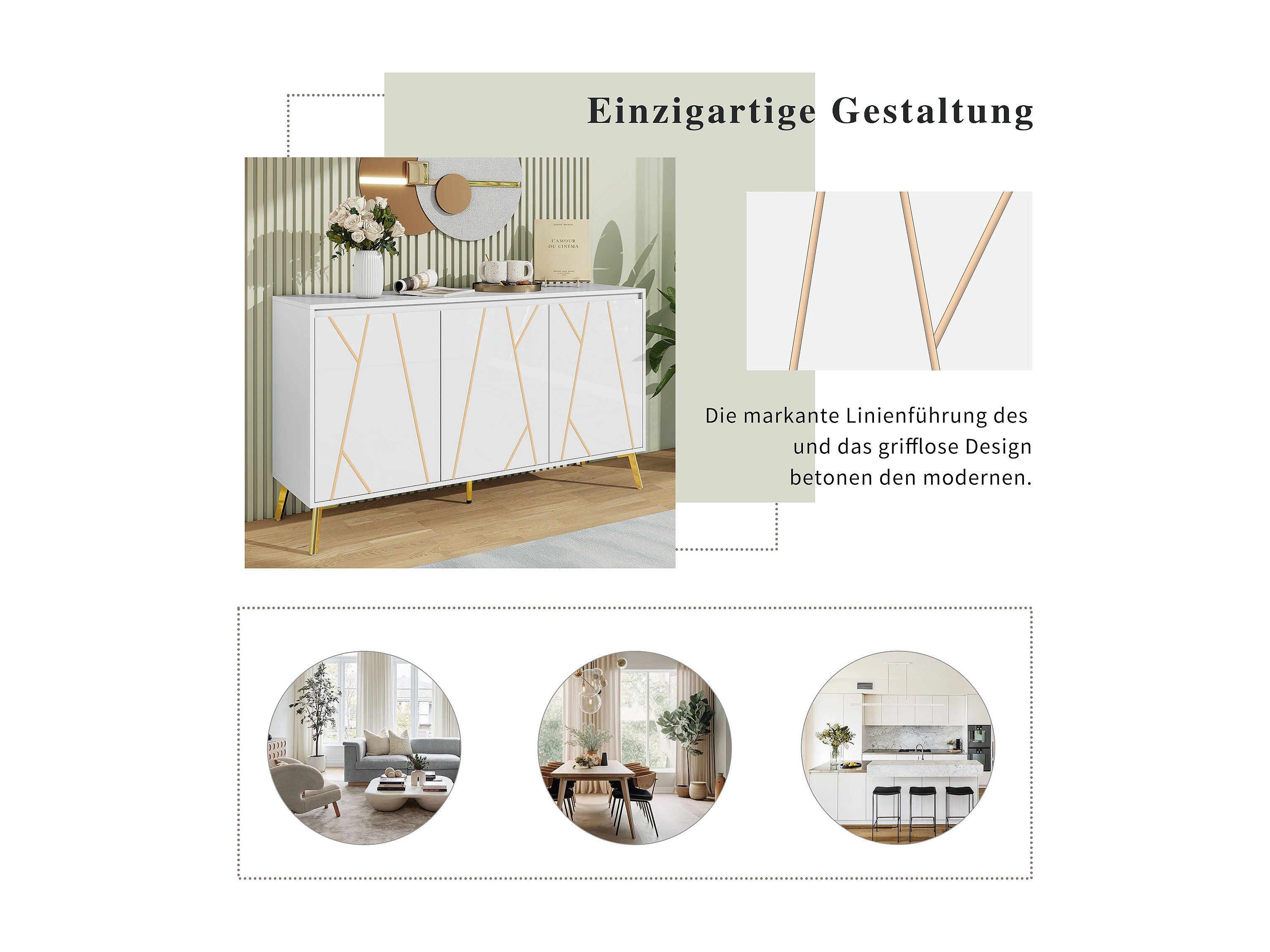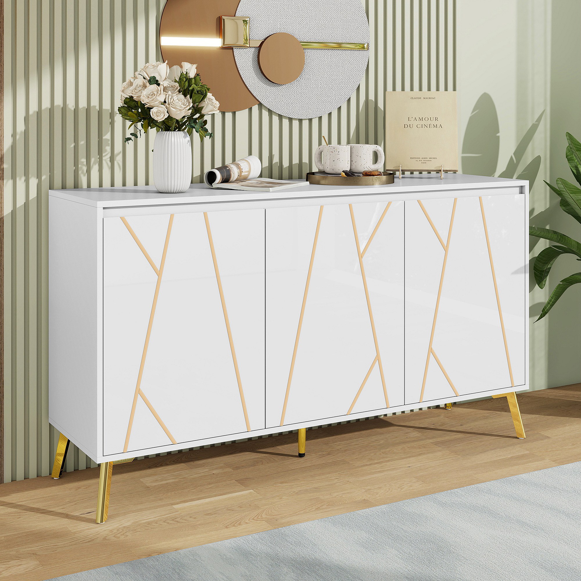 Modern 3-deurs dressoir zonder greep met unieke lijn - Elegant meubel voor eetkamer, woonkamer en keuken - Wit