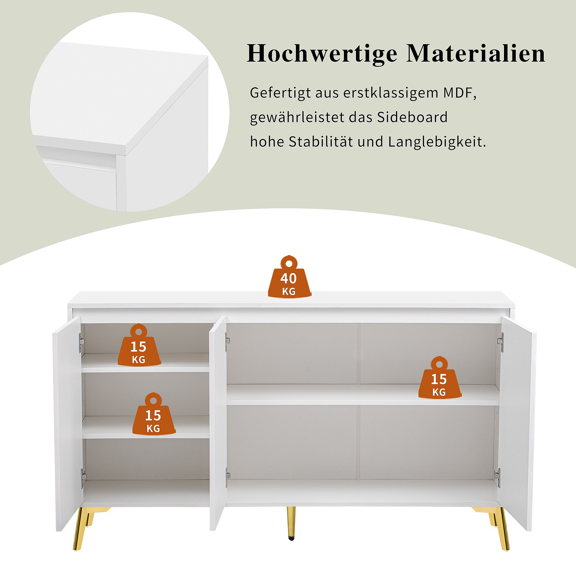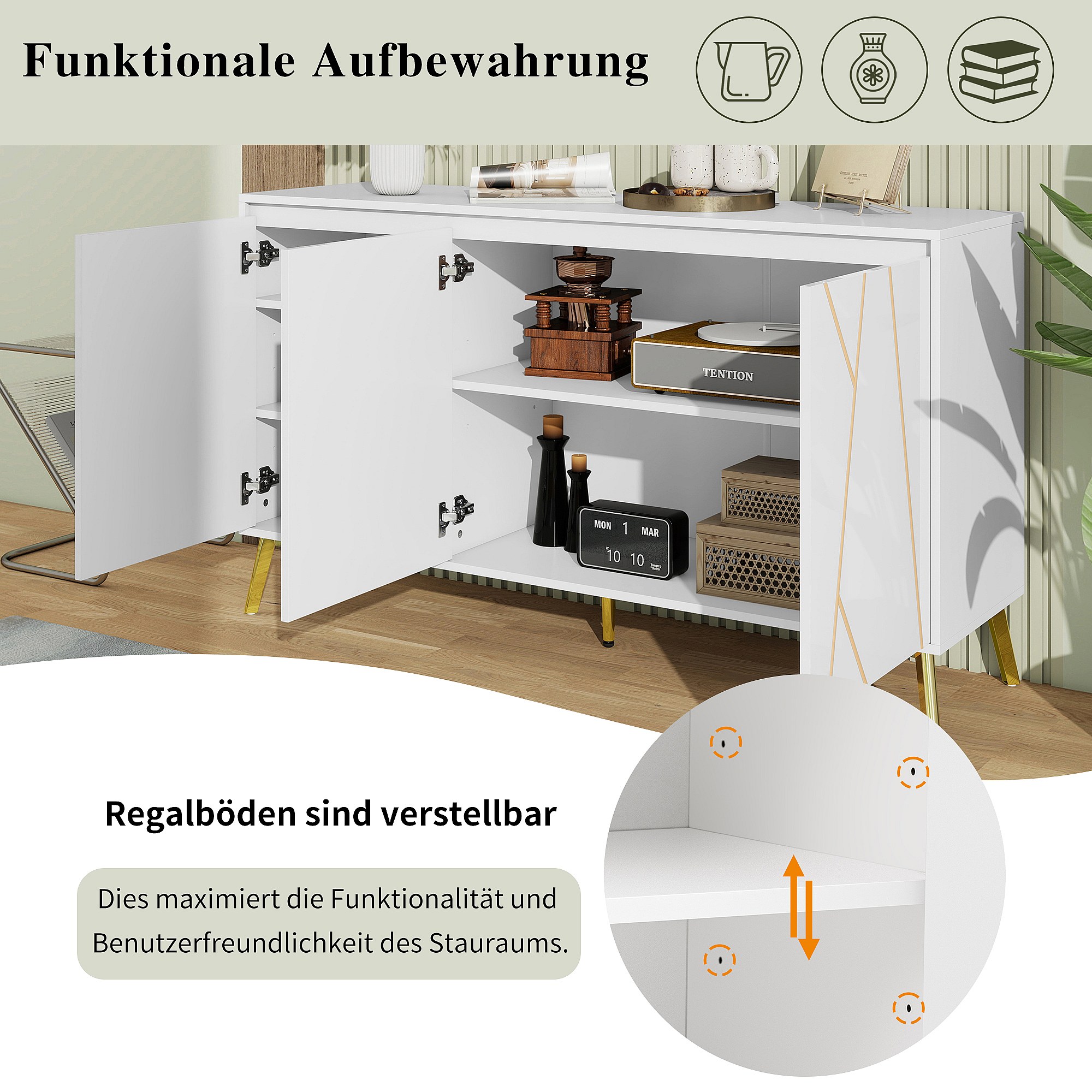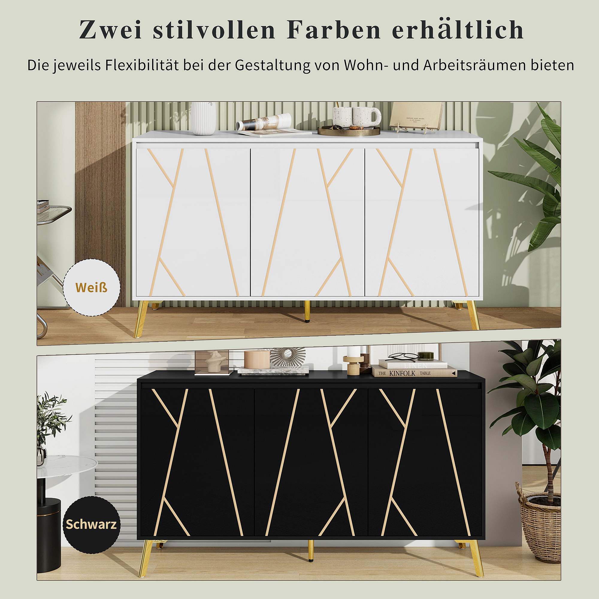 Modern 3-deurs dressoir zonder greep met unieke lijn - Elegant meubel voor eetkamer, woonkamer en keuken - Wit