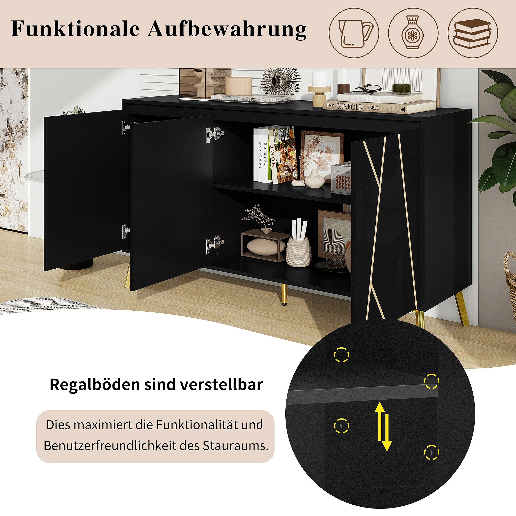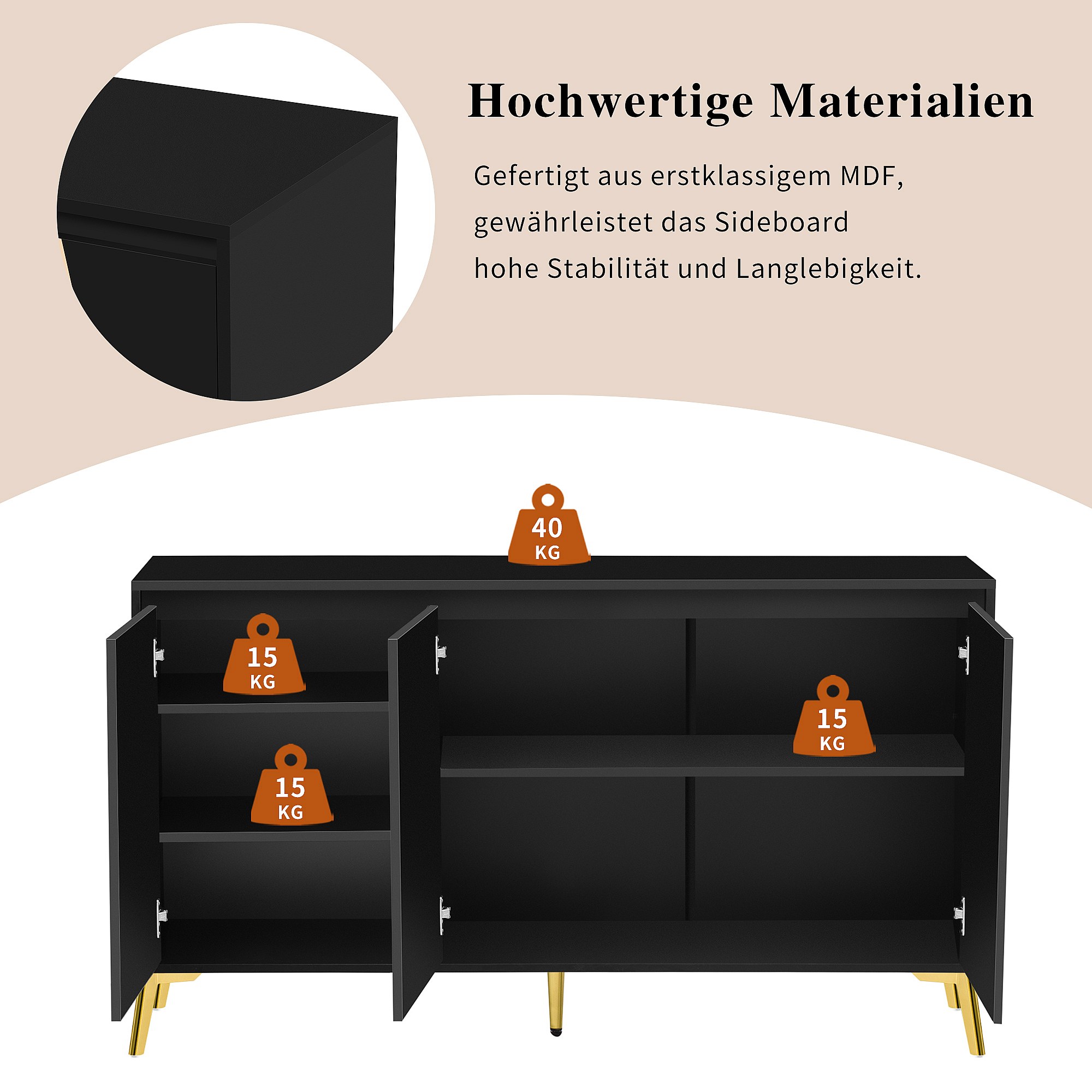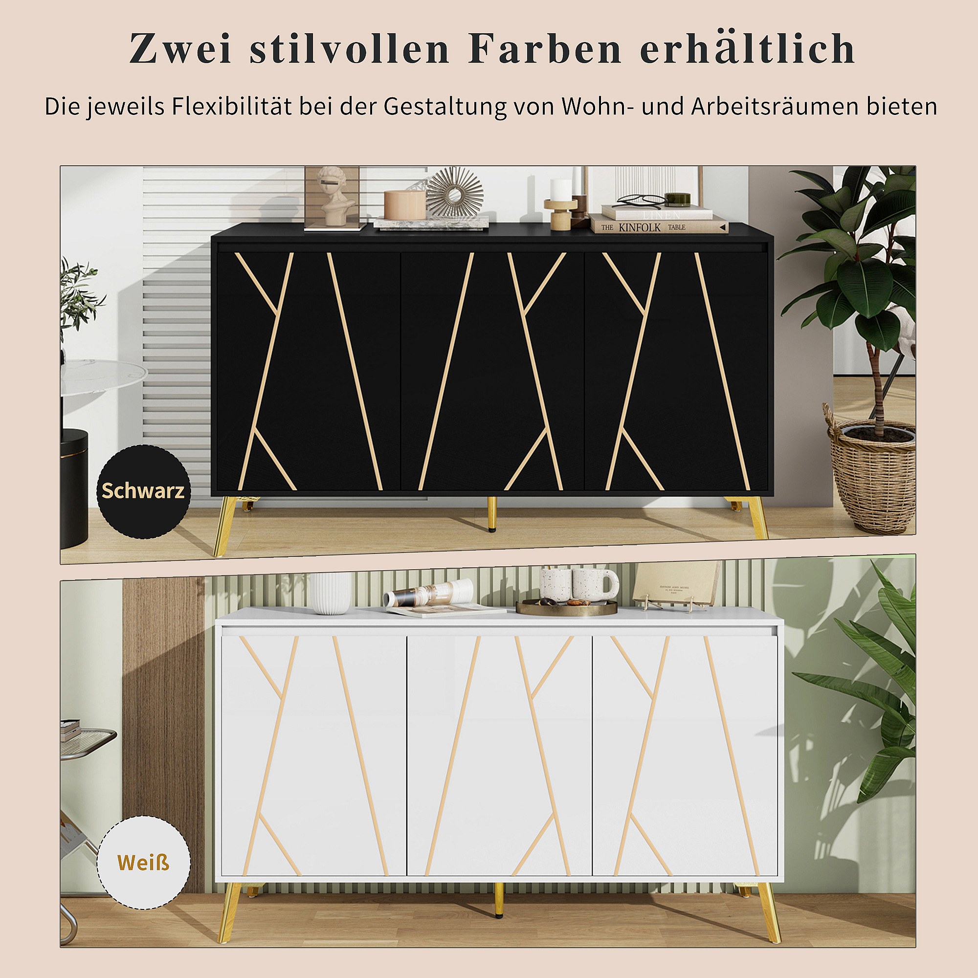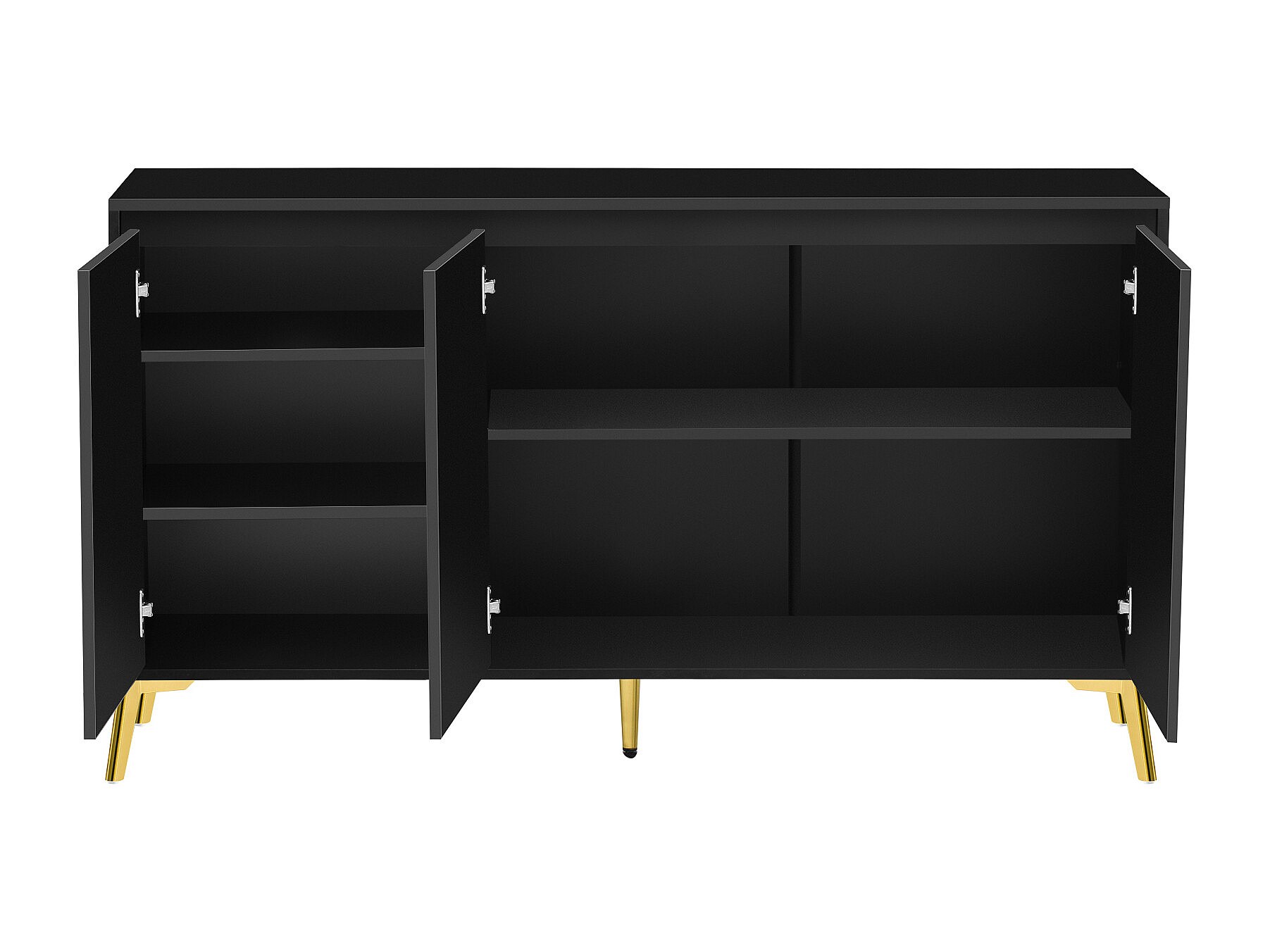 Modern 3-deurs dressoir zonder greep met unieke lijn - Elegant meubel voor eetkamer, woonkamer en keuken - Zwart