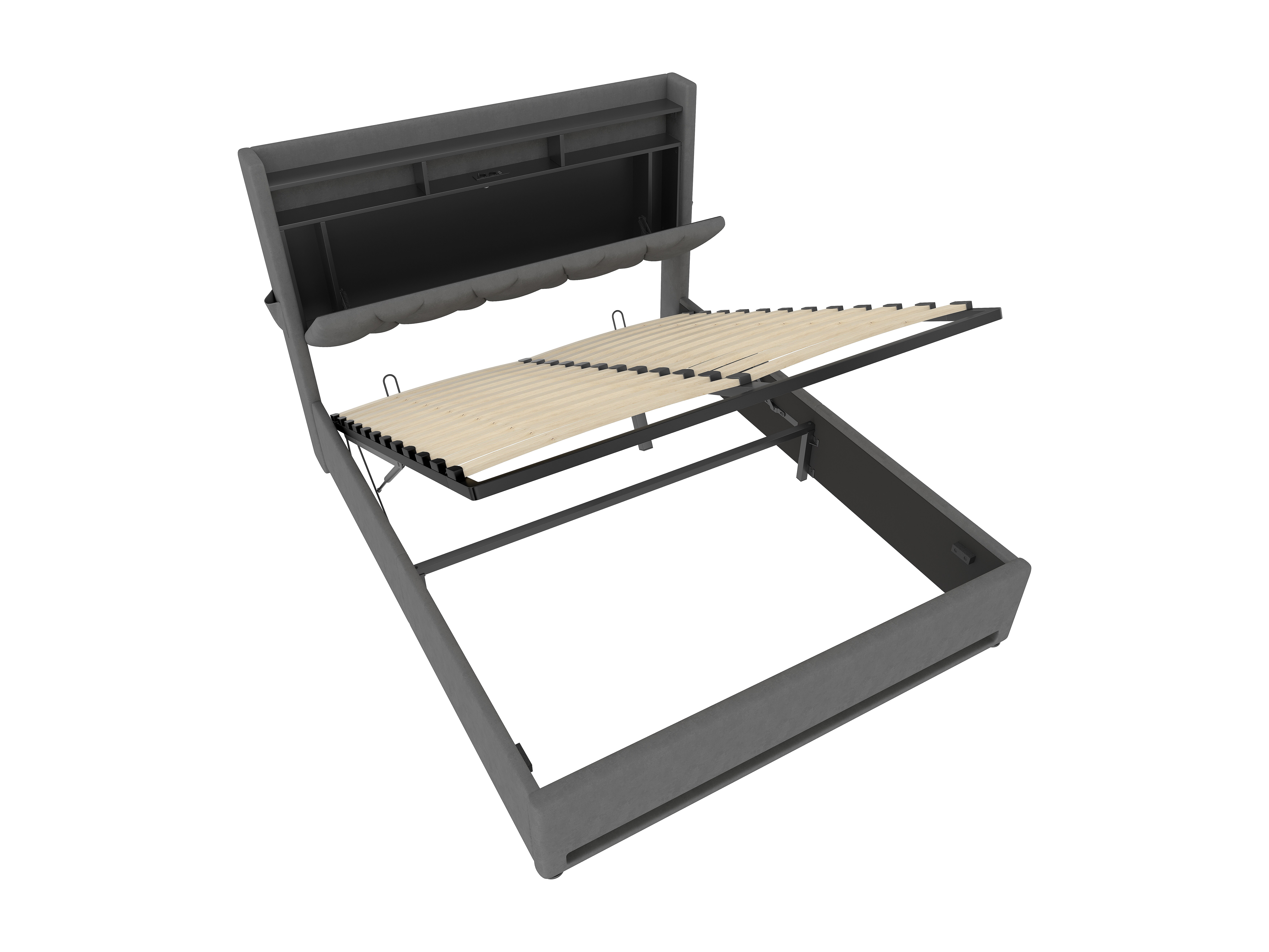 Volwassen bed opbergbed 160x200 cm opbergbed hydraulisch gestoffeerd bed grijs fluweel