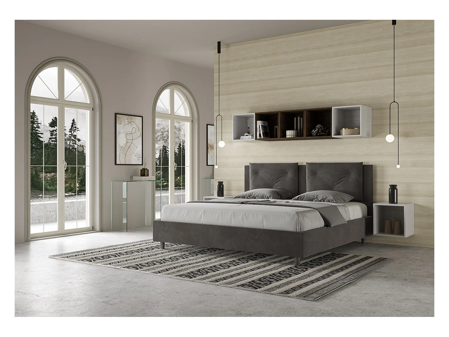 Modern bed voor volwassenen met Anja microvezelkussens-Kleur Donkergrijs-Slapen 180x200cm-Keuze Zonder boxspring