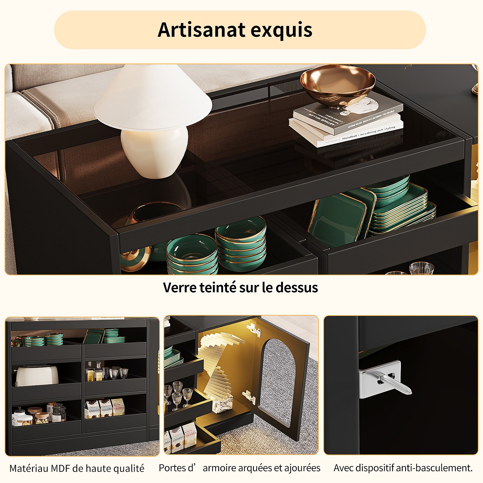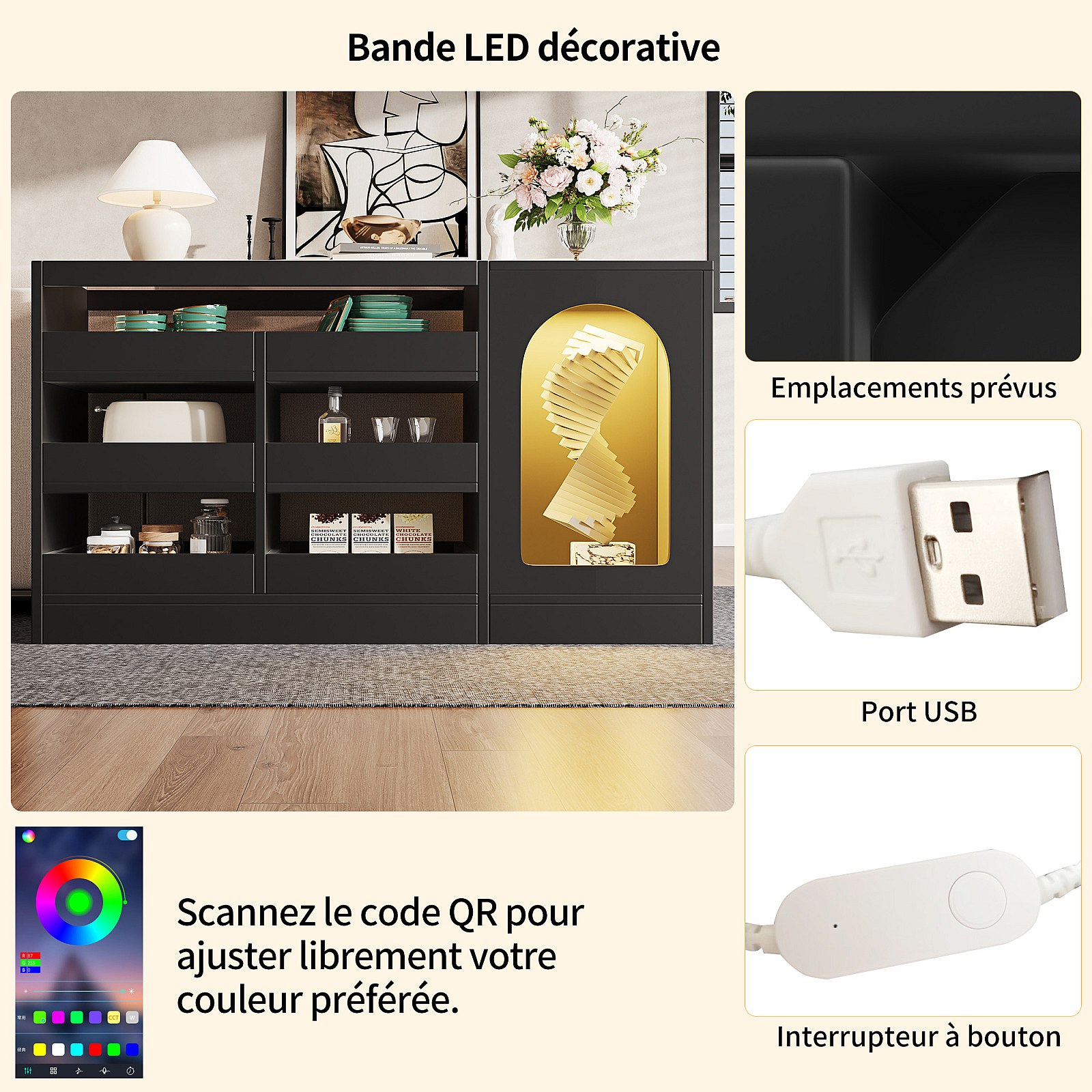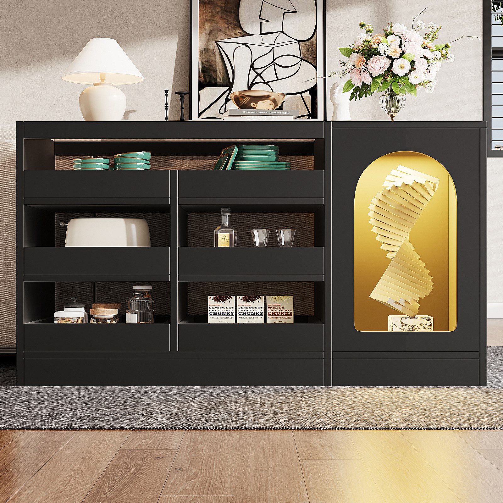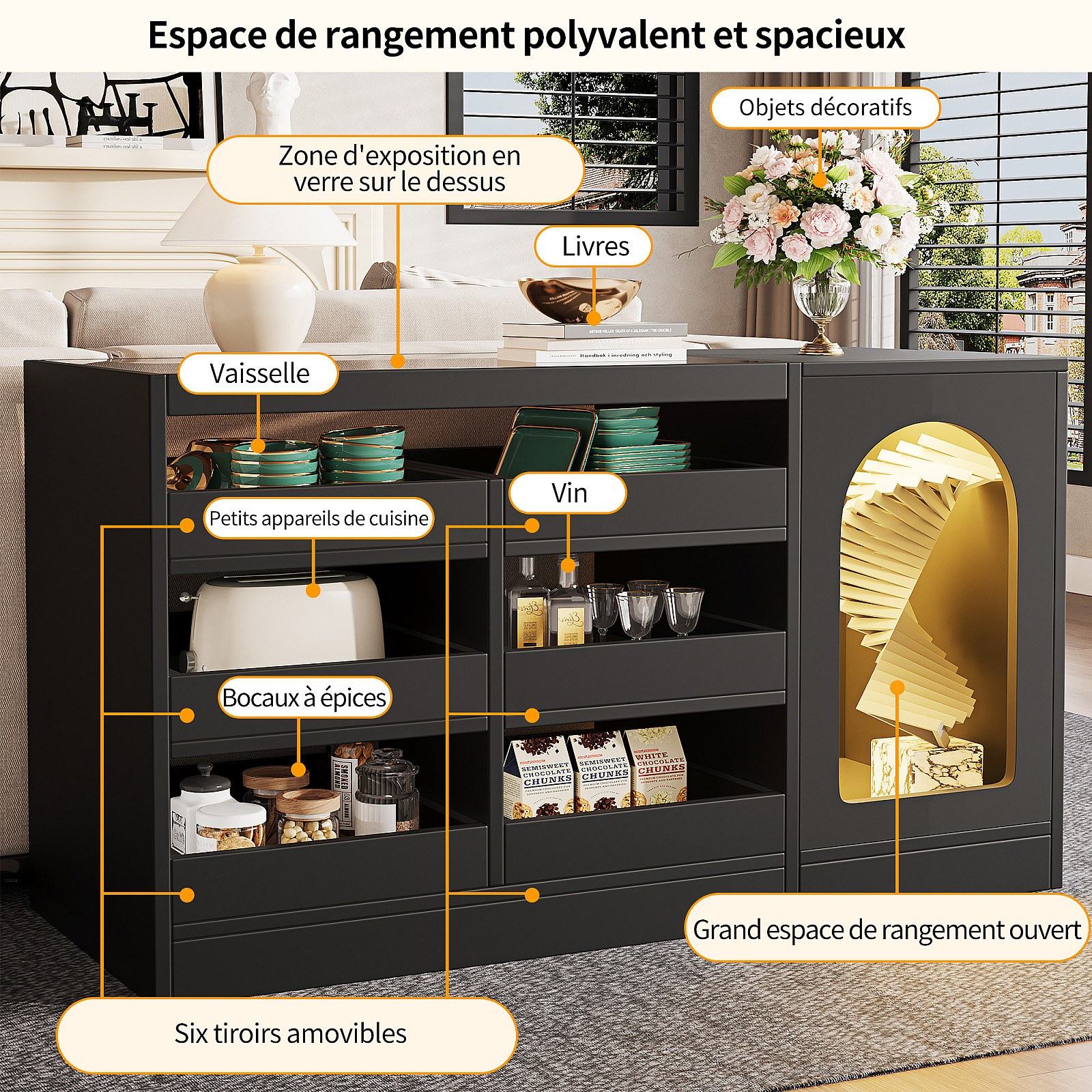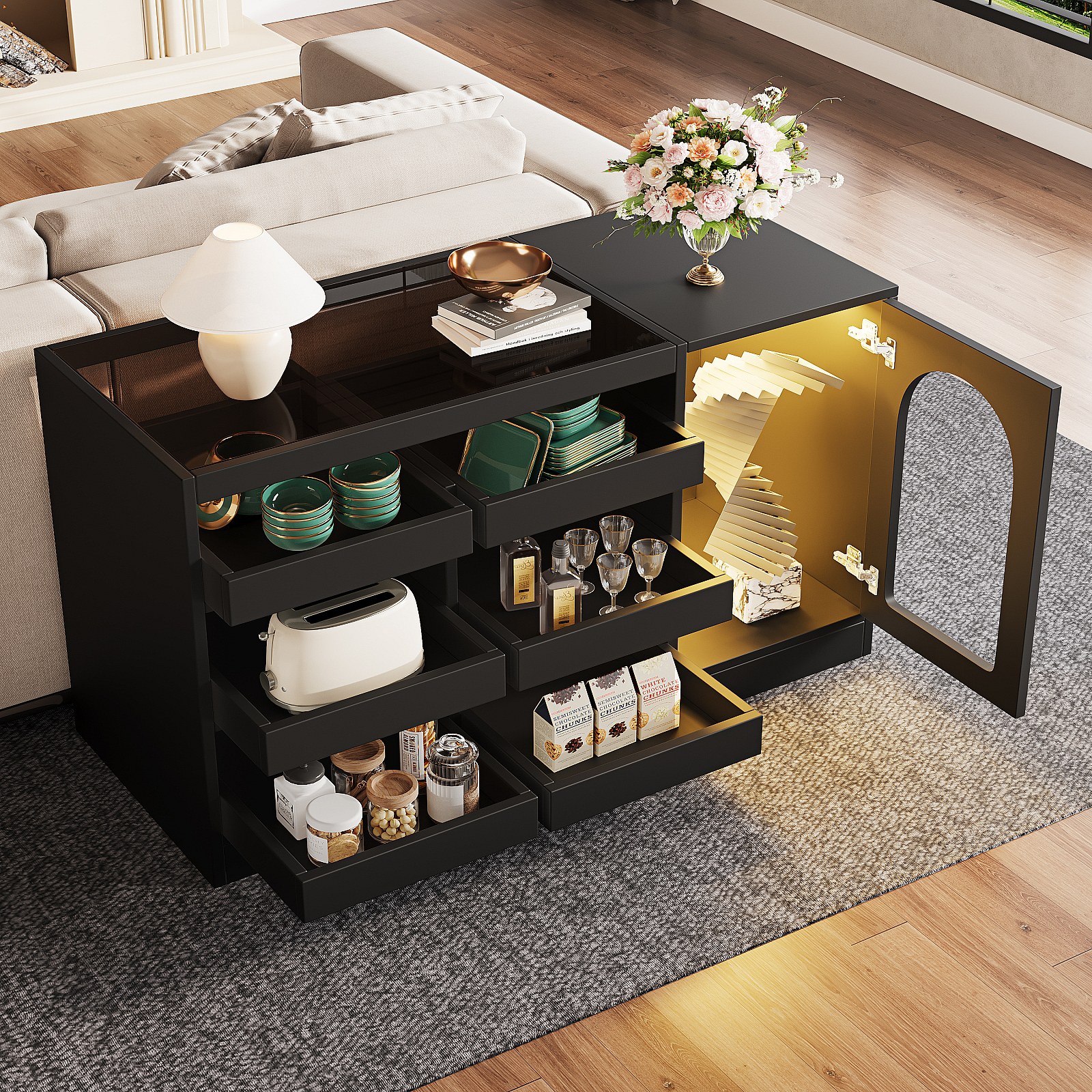 Modern en strak zwart dressoir met 6 lades, hoge deur en LED-verlichting - Ideaal voor slaapkamer, woonkamer en eetkamer