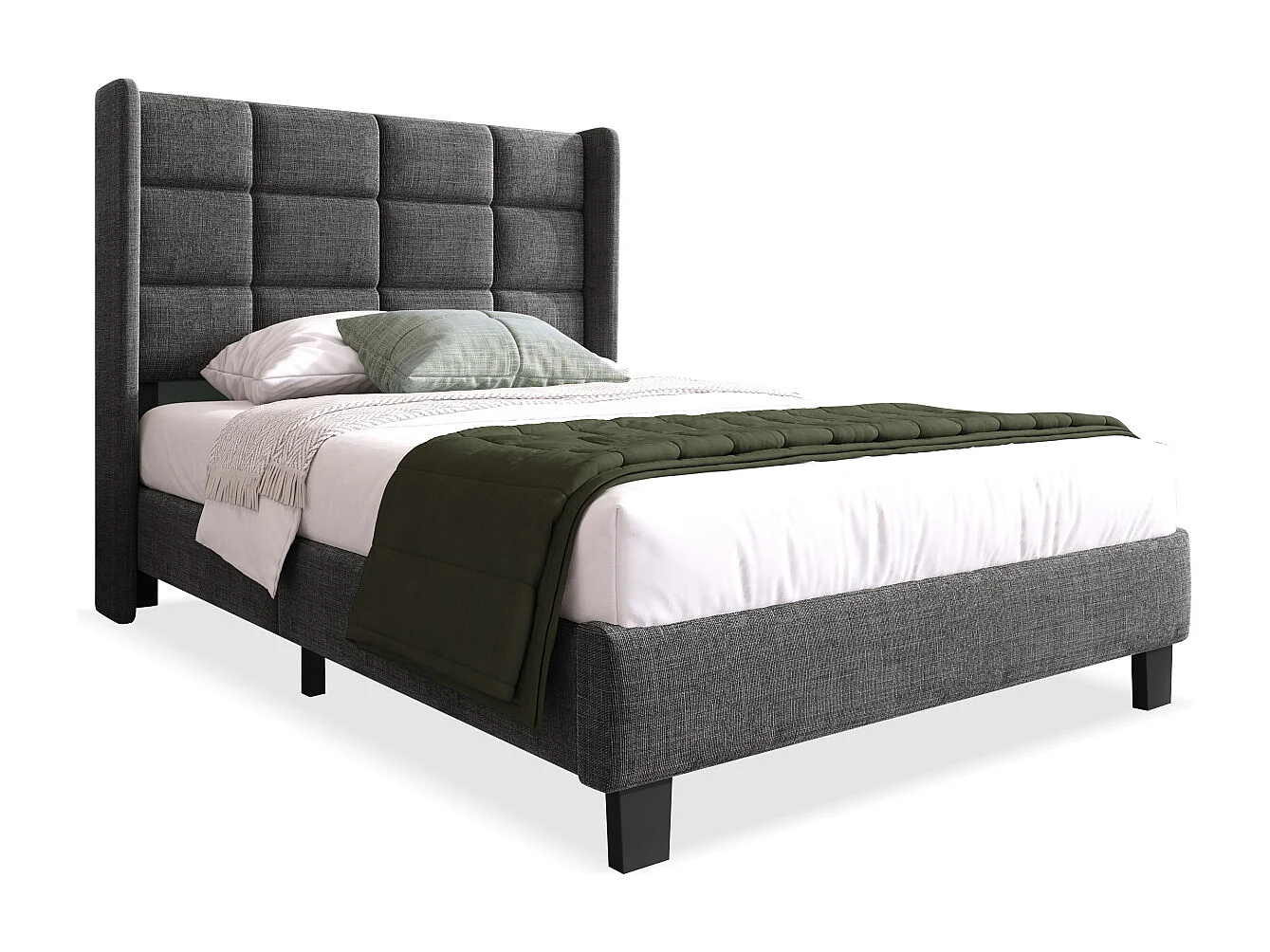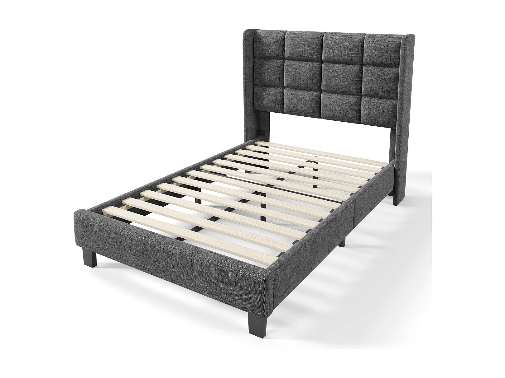 Modern grijs linnen gestoffeerd eenpersoonsbed met lattenbodem (90x200cm)