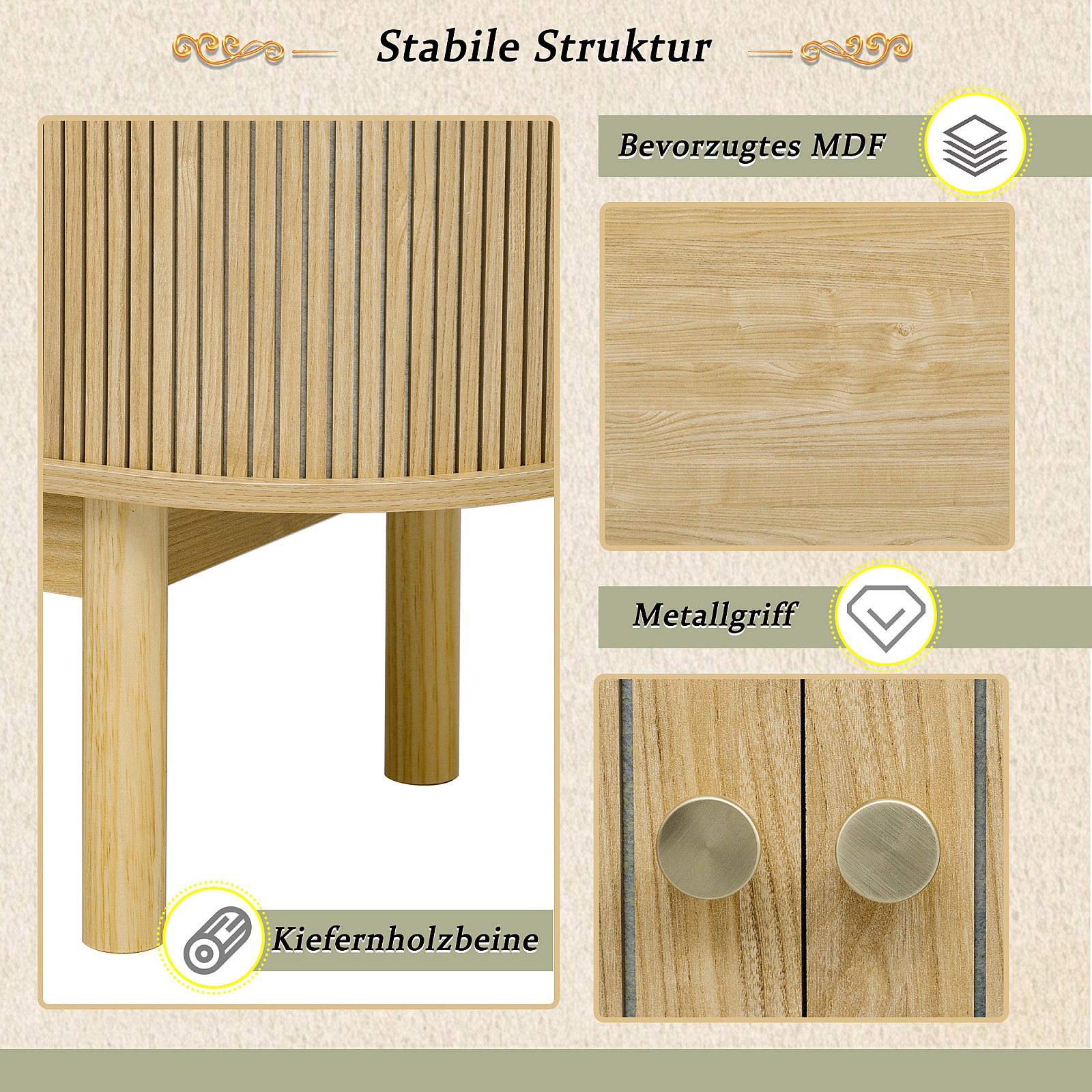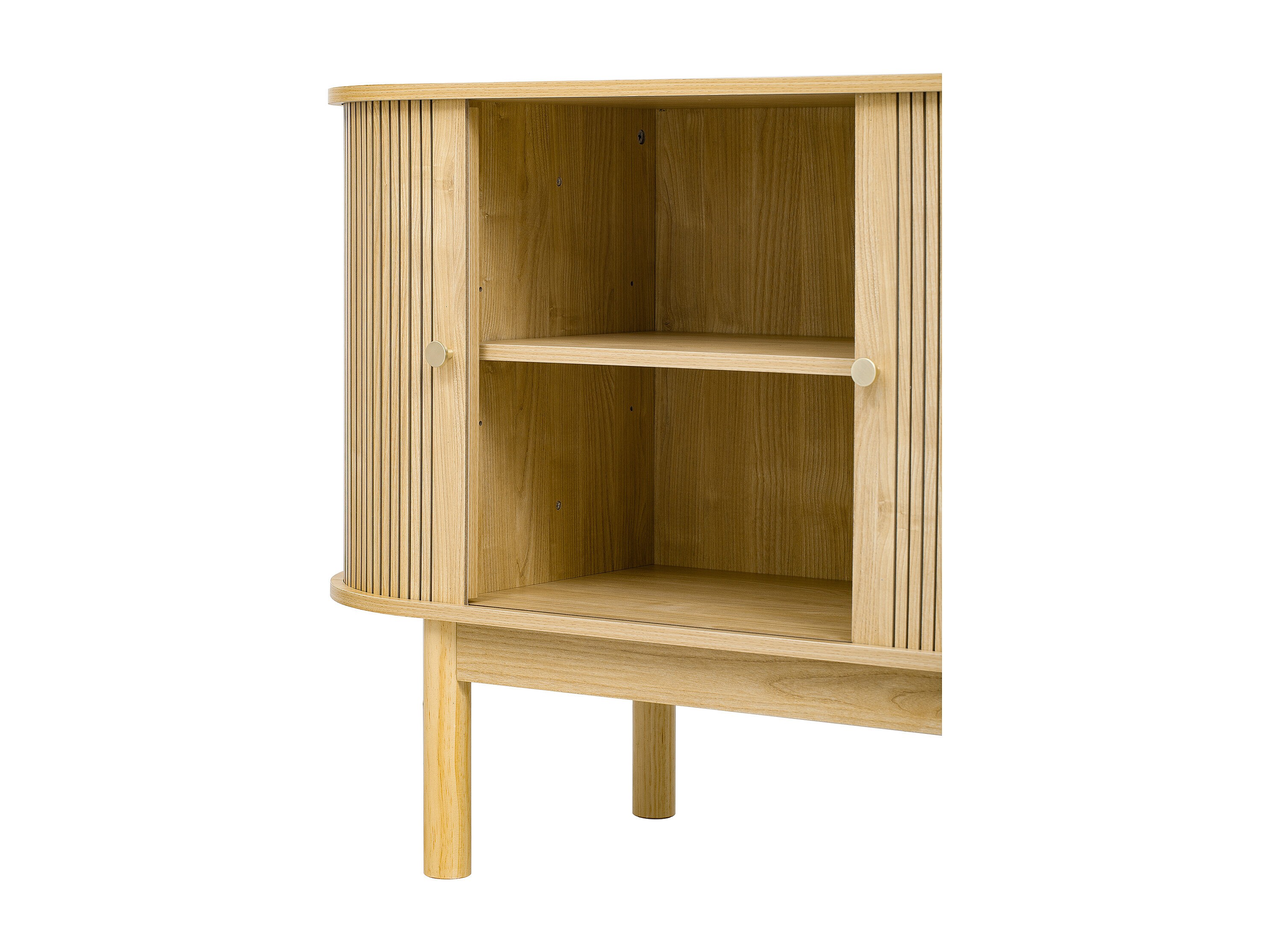 Modern retro houten dressoir met schuifdeuren, verstelbare planken en poten van grenenhout, licht eikenhout, voor eetkamer, keuken of entree