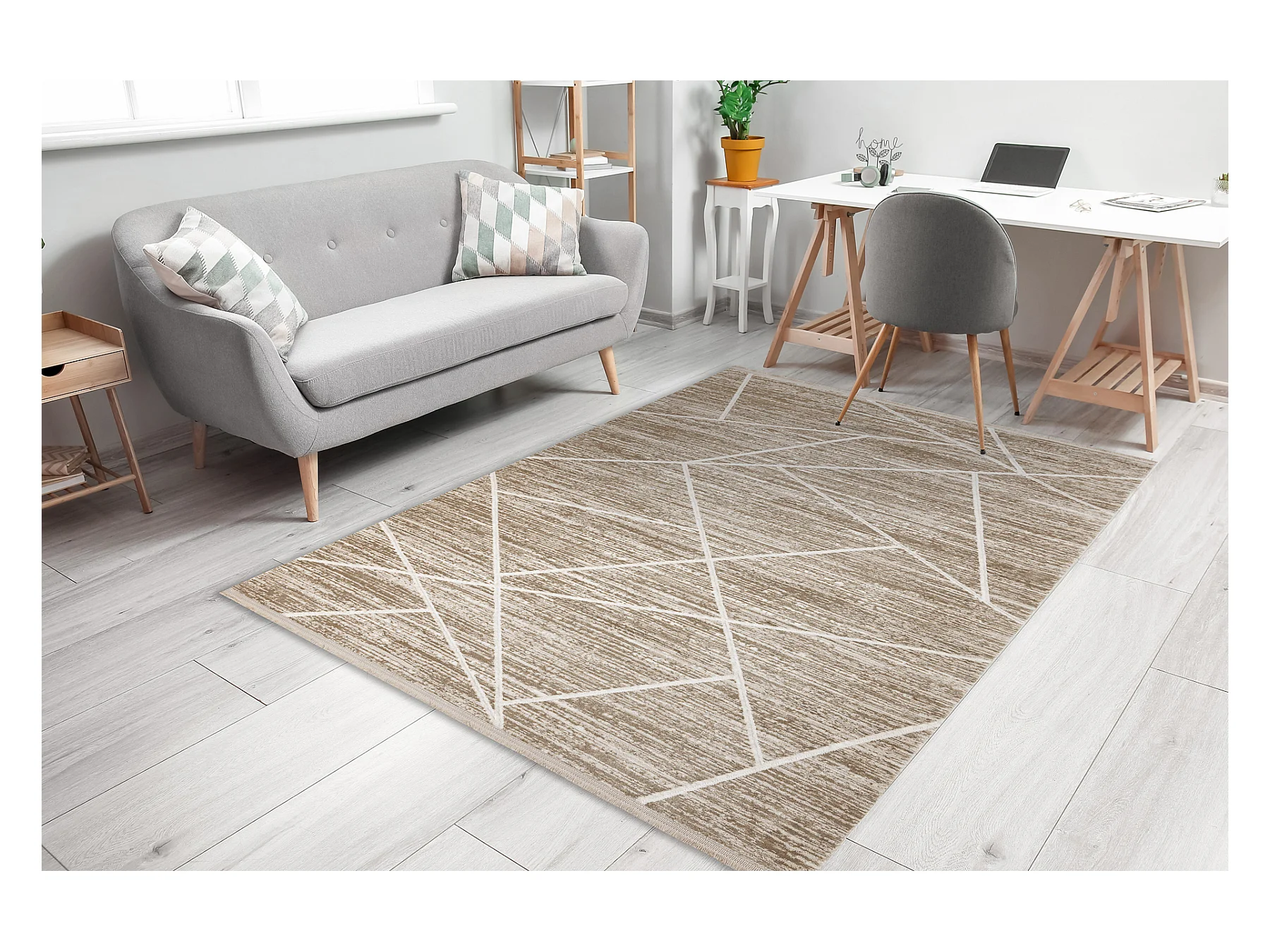 Tapijt JERSEY 19234 crème - Ruiten, structureel, lus BOHO 80x150 cm