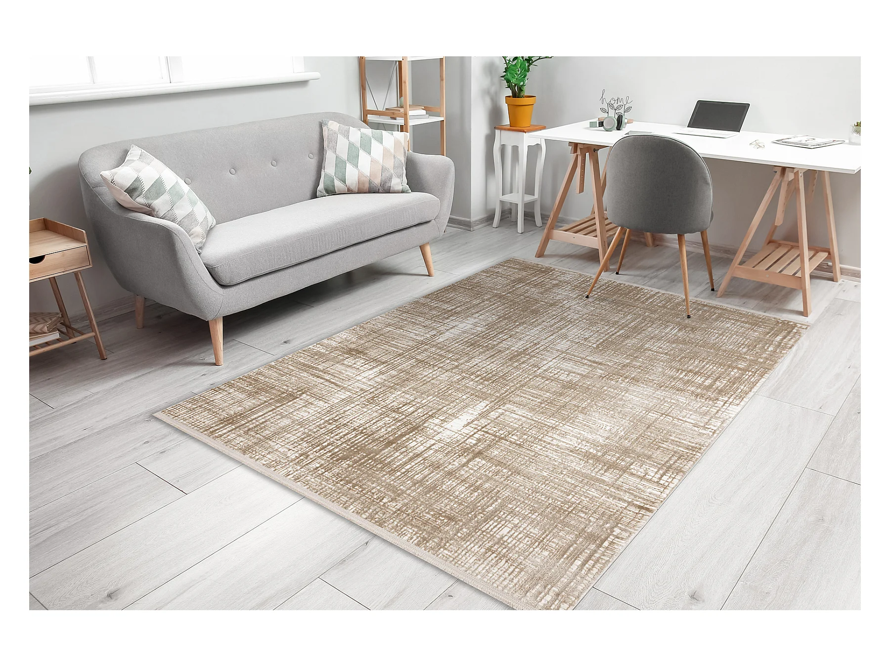 Tapijt JERSEY 19234 beige - Ruiten, structureel, lus BOHO 60x100 cm