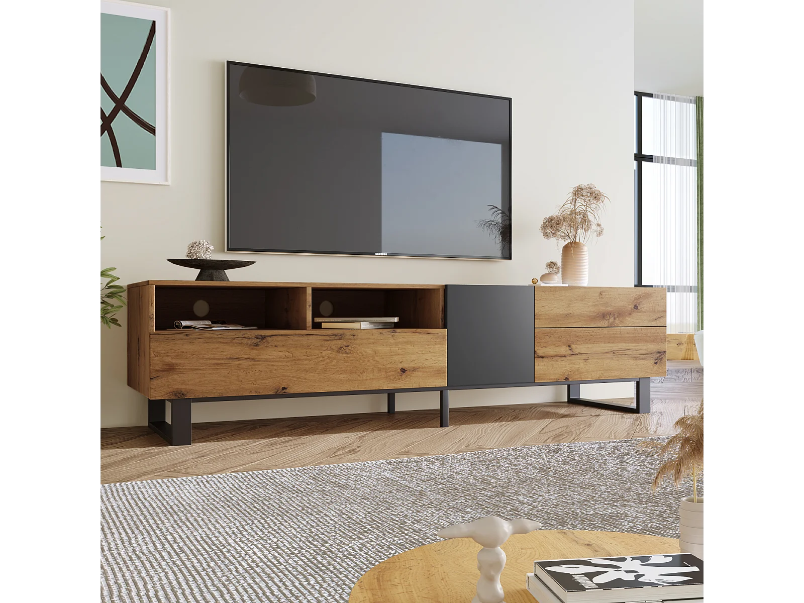 Modern tv-meubel met bijpassende kleuren, tv-meubel met houtnerfstructuur 180 × 38 × 50 cm, eikenkleur