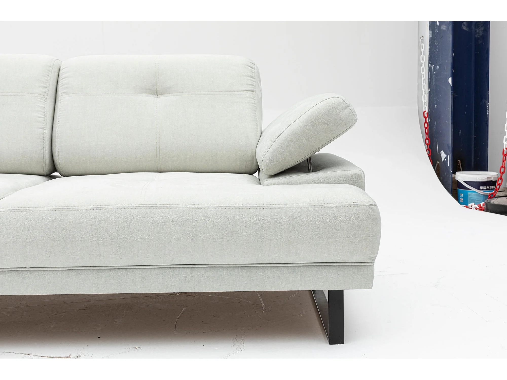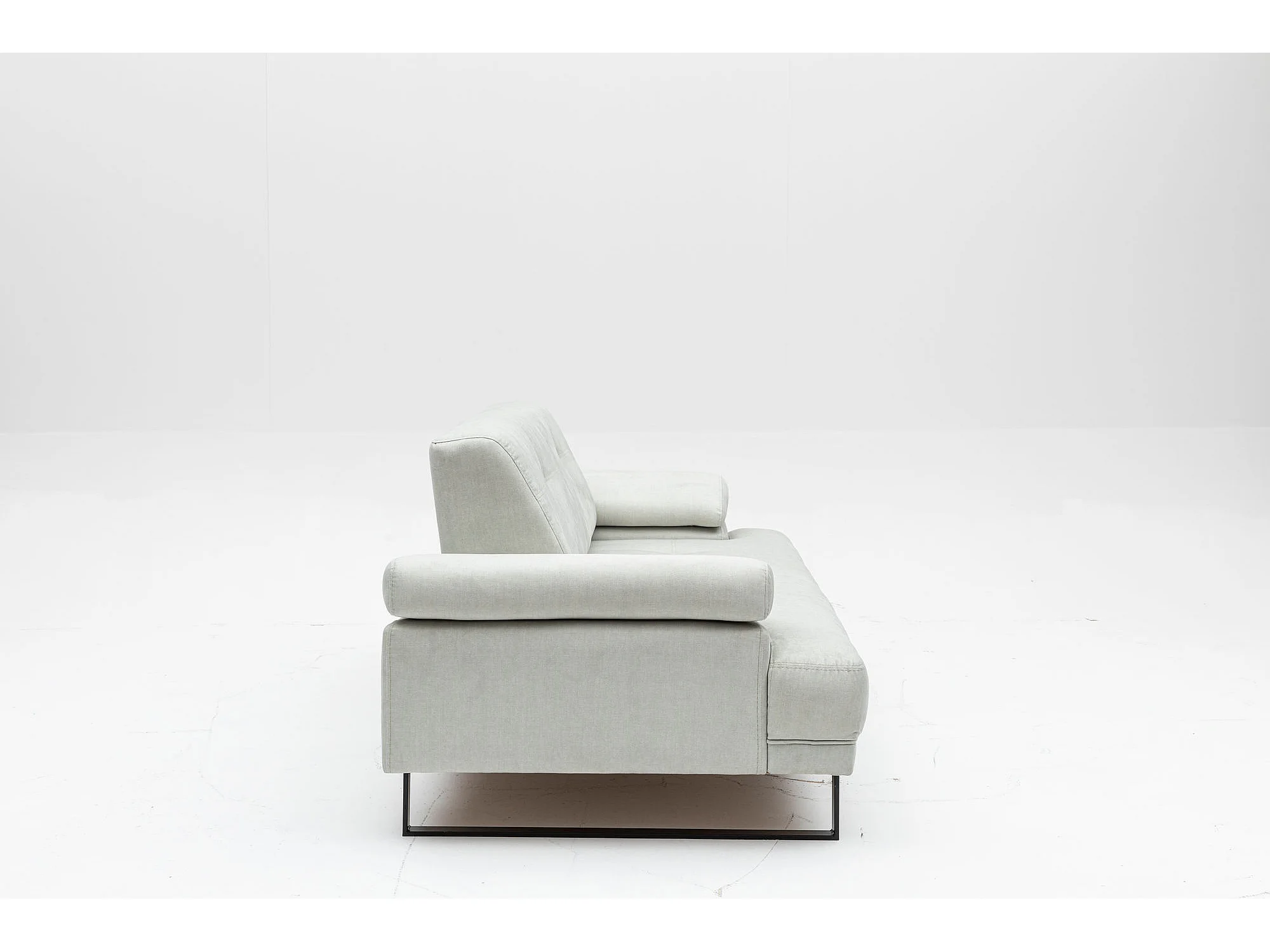 Dpanad vaste bank, 2-zitsbank, 100% Made in Italy, Woonkamerbank, in gewatteerde stof, met verstelbare hoofdsteunen en slanke armleuningen, 160x95h85 cm, Beige