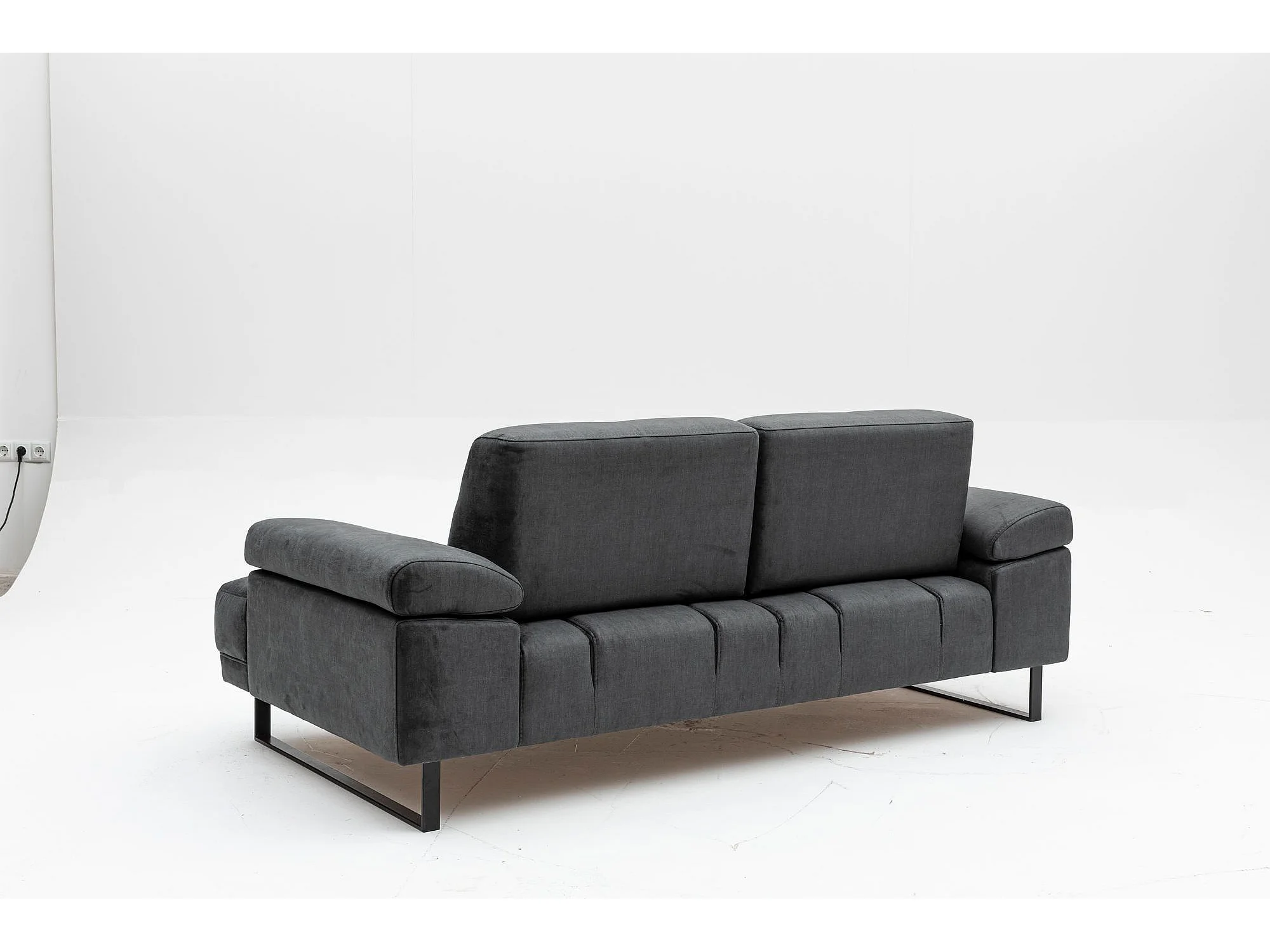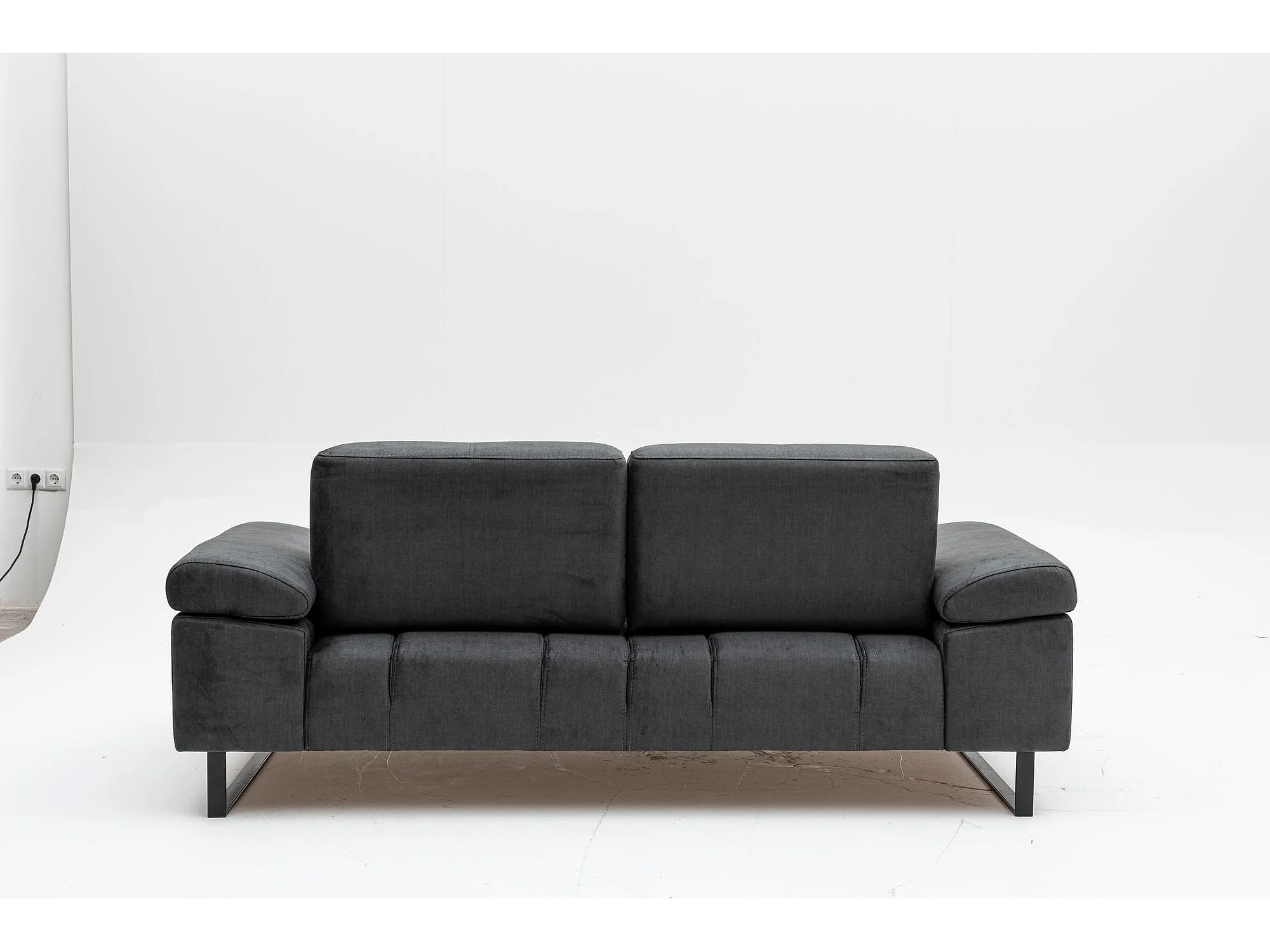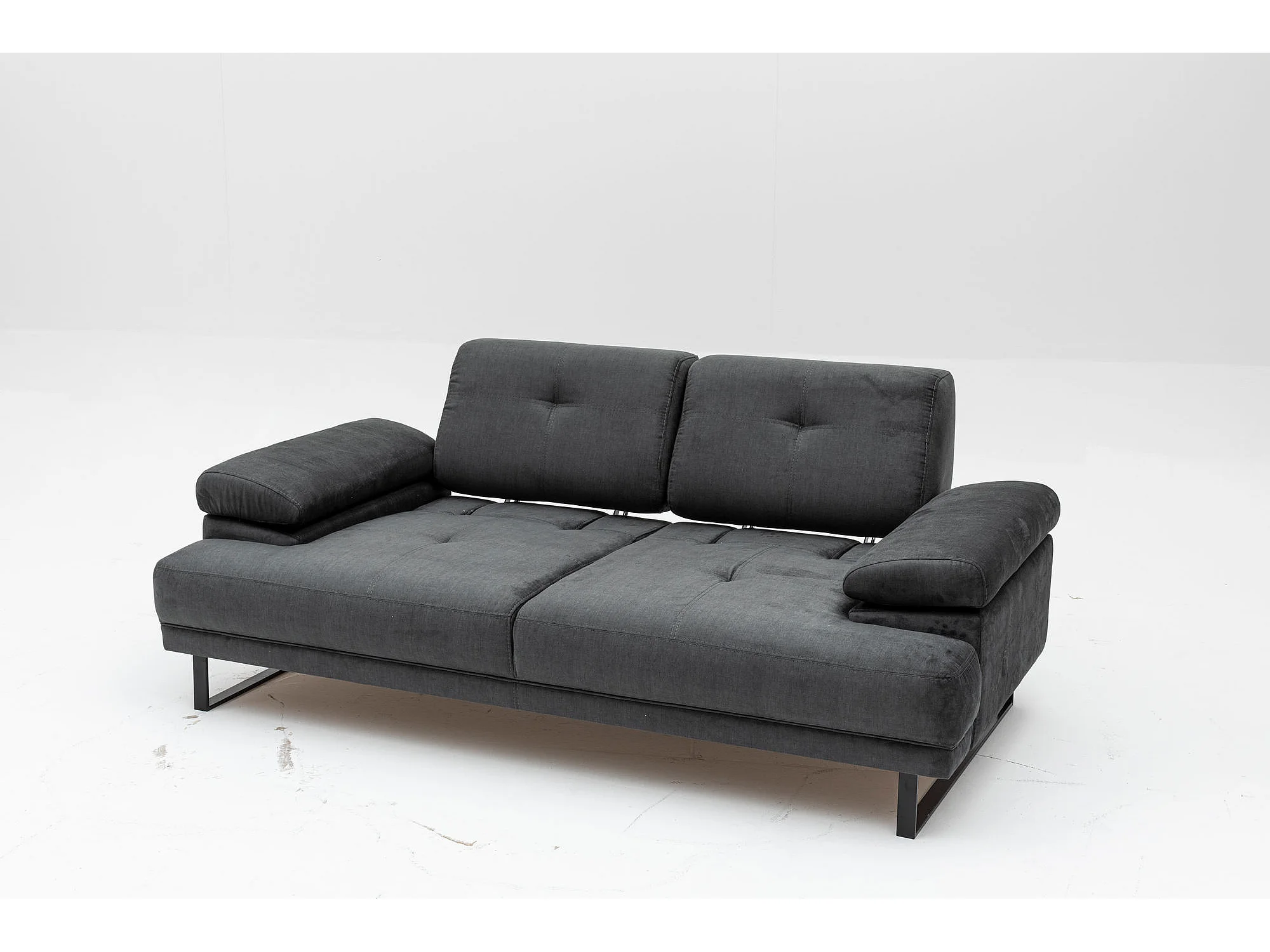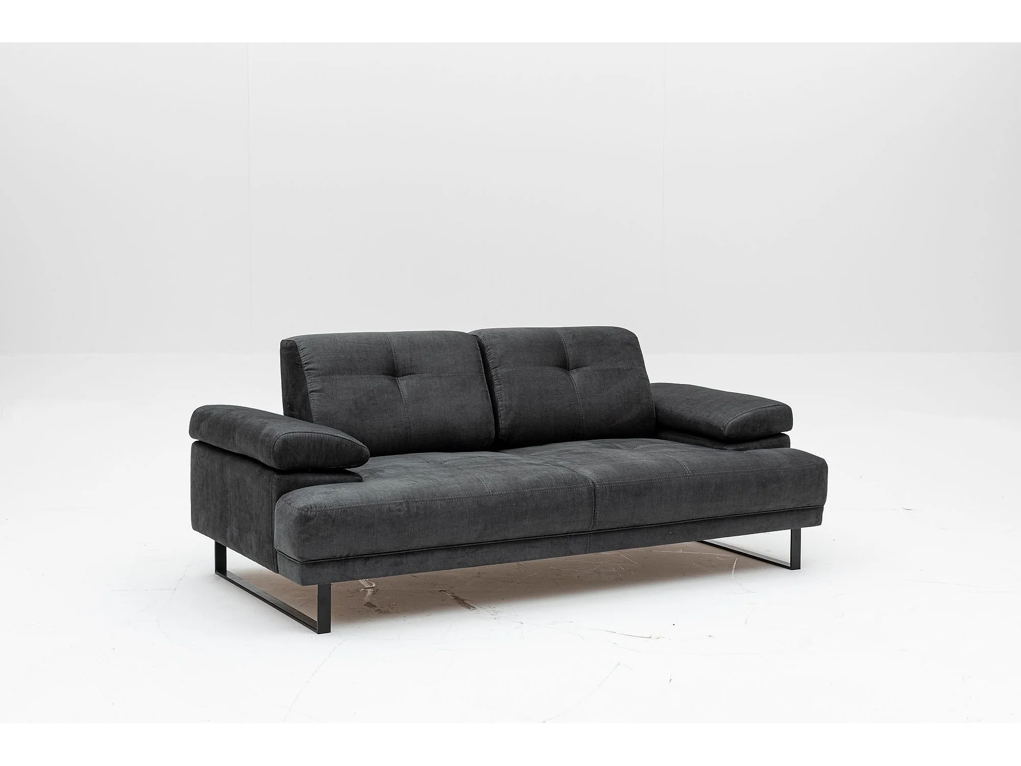 Moderne 2-zits rechte bank zachte antraciet stof zwart metalen poten Kustone 199 cm